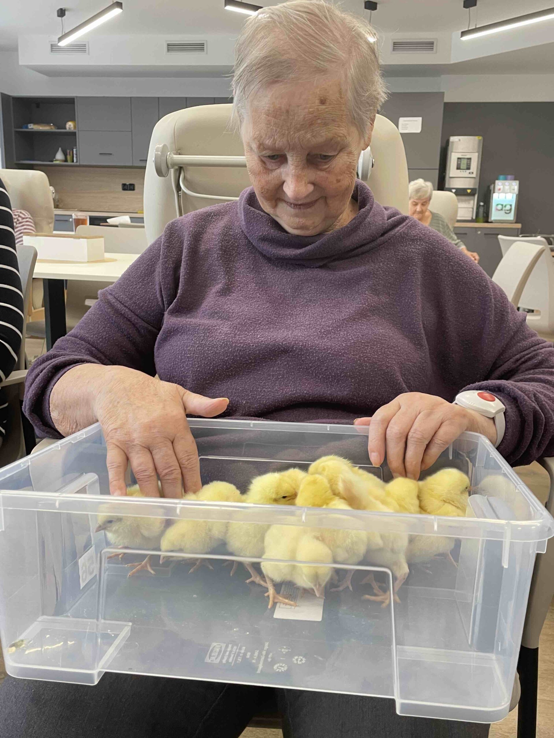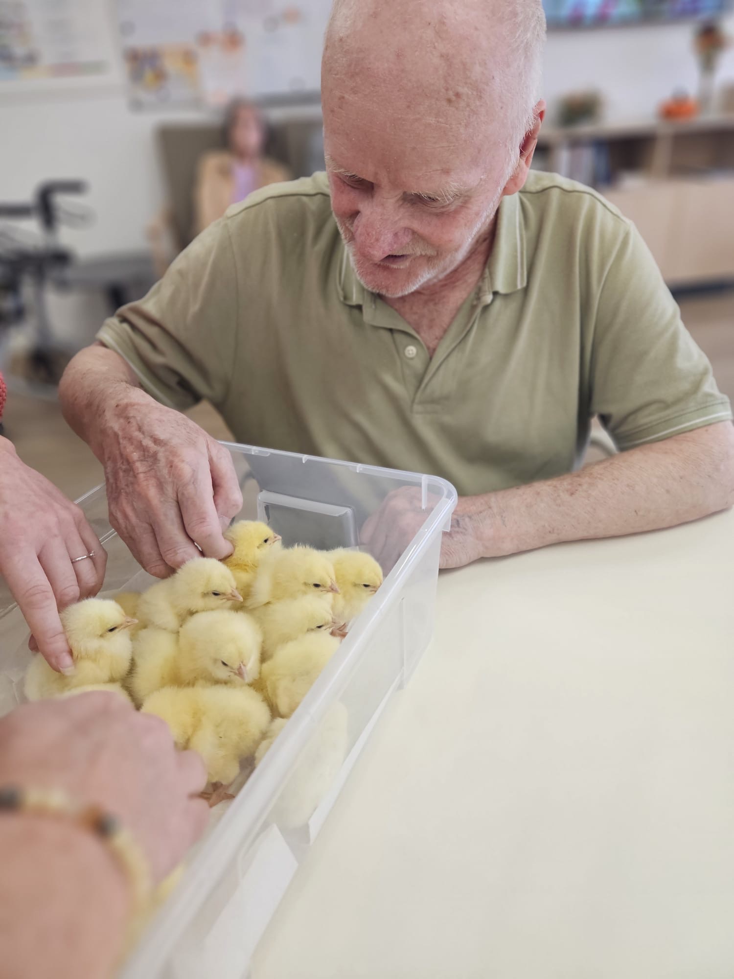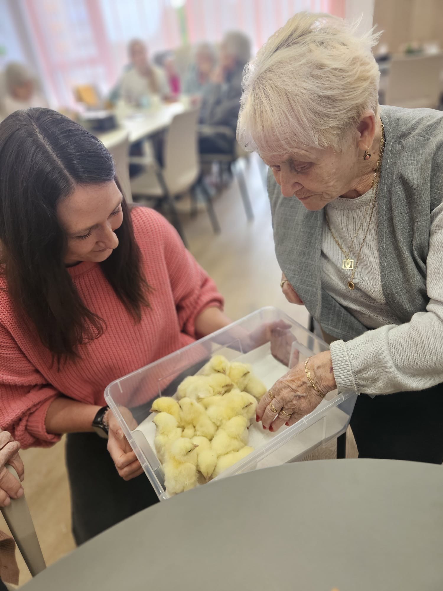Do našeho domova v Senevida Ostrava - Poruba tentokrát zavítala roztomilá návštěva - malá kuřátka 🐣, která si okamžitě získala srdce všech klientů. Každý si je mohl pohladit, pochovat a užít si ten krásný, hřejivý okamžik. ☀️