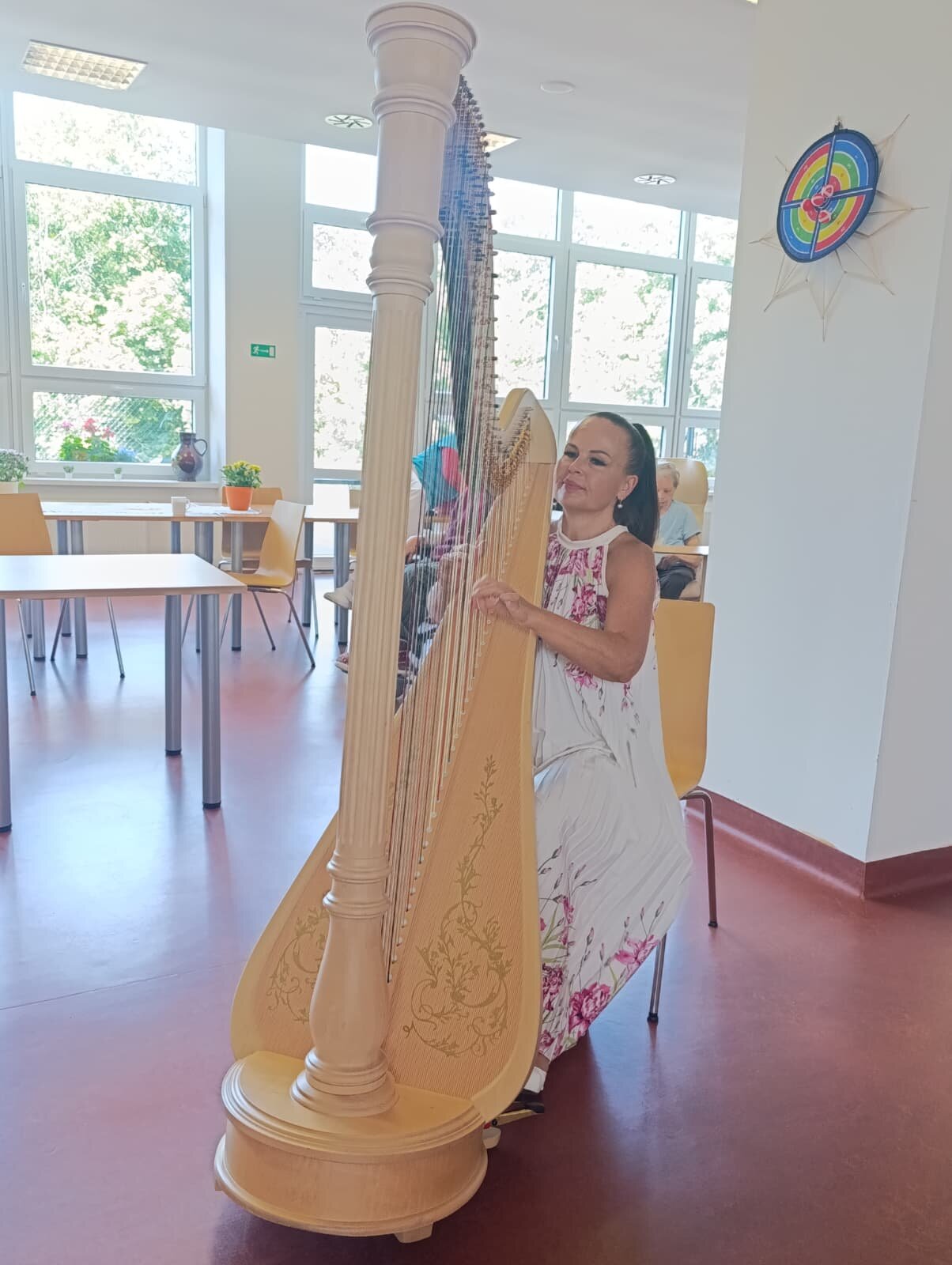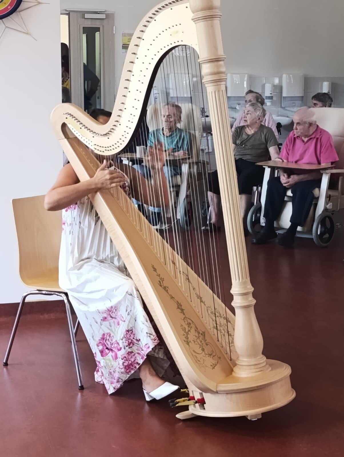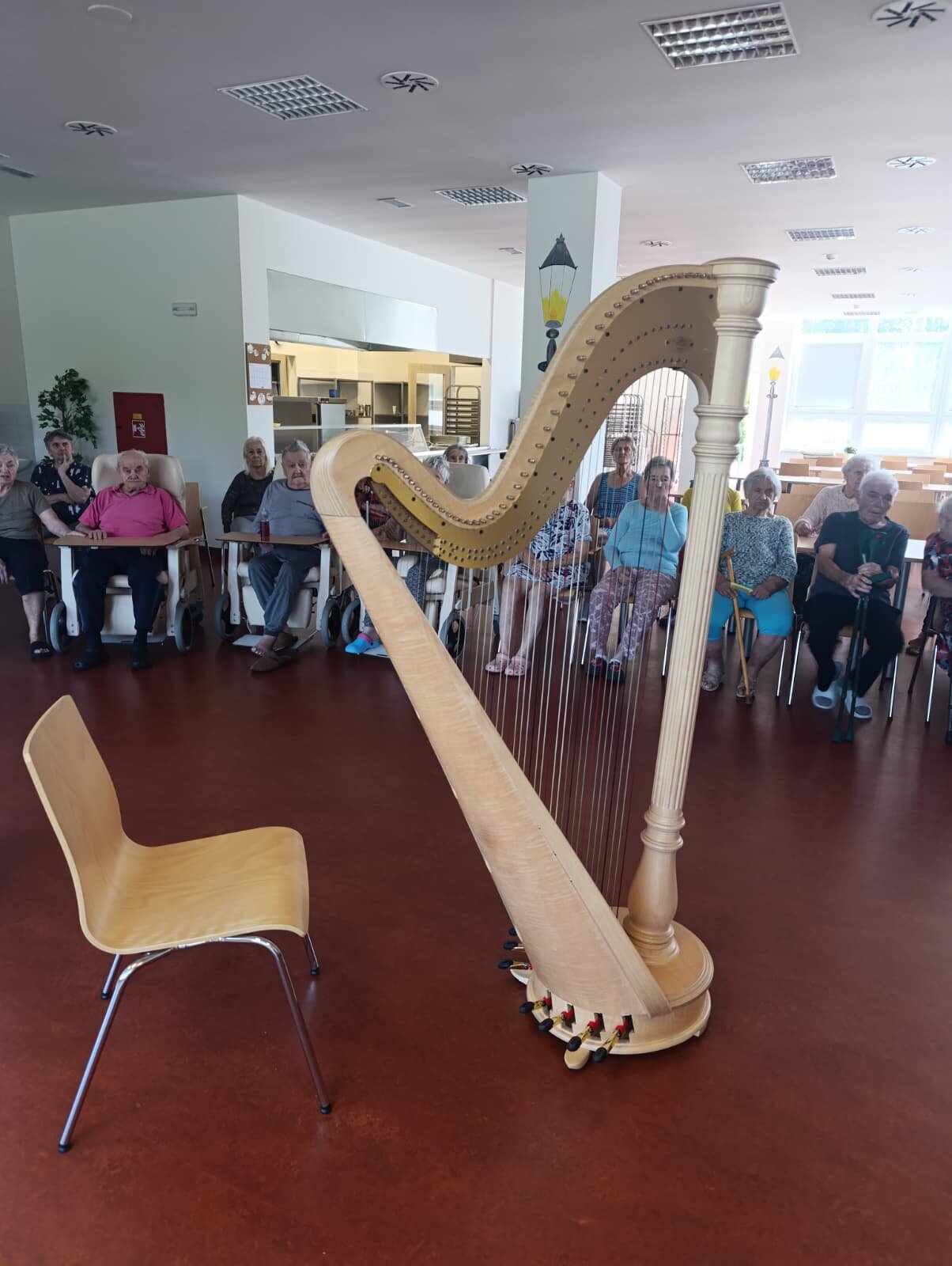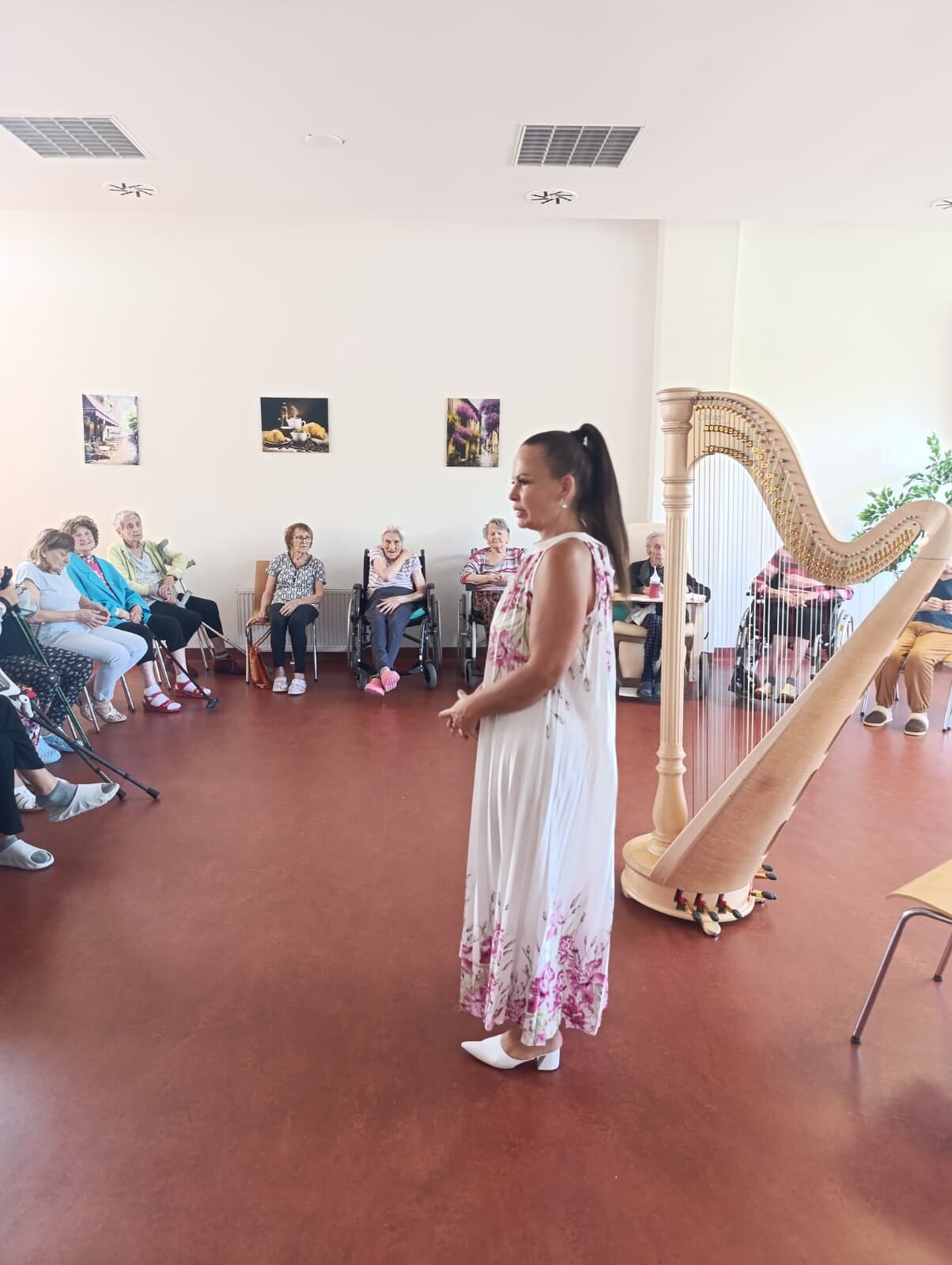 Do Senevida zavítala vznešená hudba. 🎶 Naši klienti si užili nádherný harfový koncert, který naplnil celý prostor klidem a krásou. Zvuk harfy, jemný a uklidňující, navodil jedinečnou atmosféru. Bylo krásné sledovat, jak se klienti s úsměvy ponořili do melodií a zapomněli na starosti. Hudba je pro nás skvělá terapie, která přináší pohodu a radost.😊