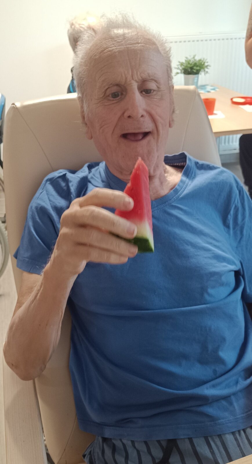 Dnešní den byl zamračený a plný deště, a tak jsme u nás v Senevida Modřany strávili uvnitř. Dopoledne jsme věnovali protažení celého těla, za doprovodu rytmické hudby jsme se dali i do tance. Odpoledne jsme si zpříjemnily melounovými hody. Byla to dobrota 😊