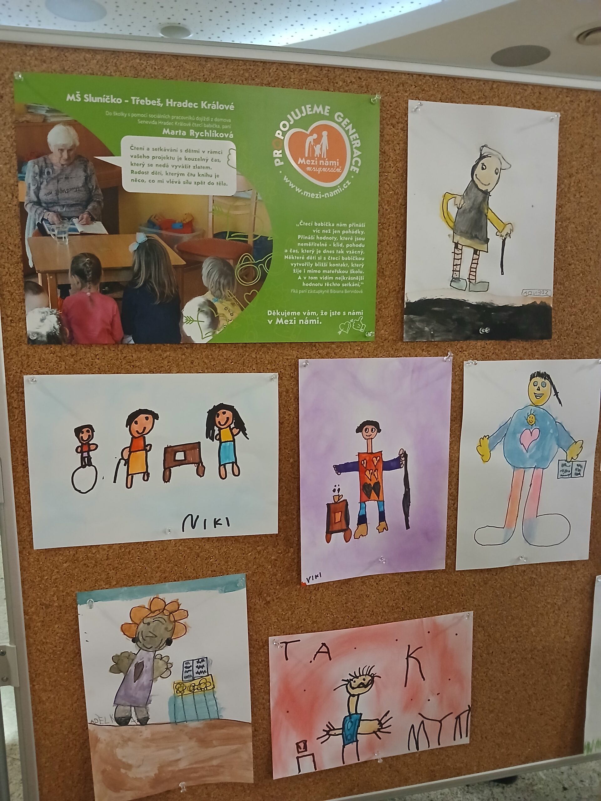 I náš domov má mezi sebou jednu čtecí babičku, která chodí pravidelně do MŠ Sluníčko. Děti z této školky se zapojily do tohoto krásného projektu a pokusily se ji namalovat. Čtecí babička byla pozvána na zahájení a nestačila se divit, jak krásně ji děti namalovaly.