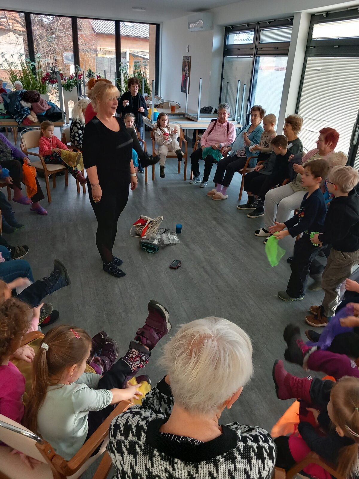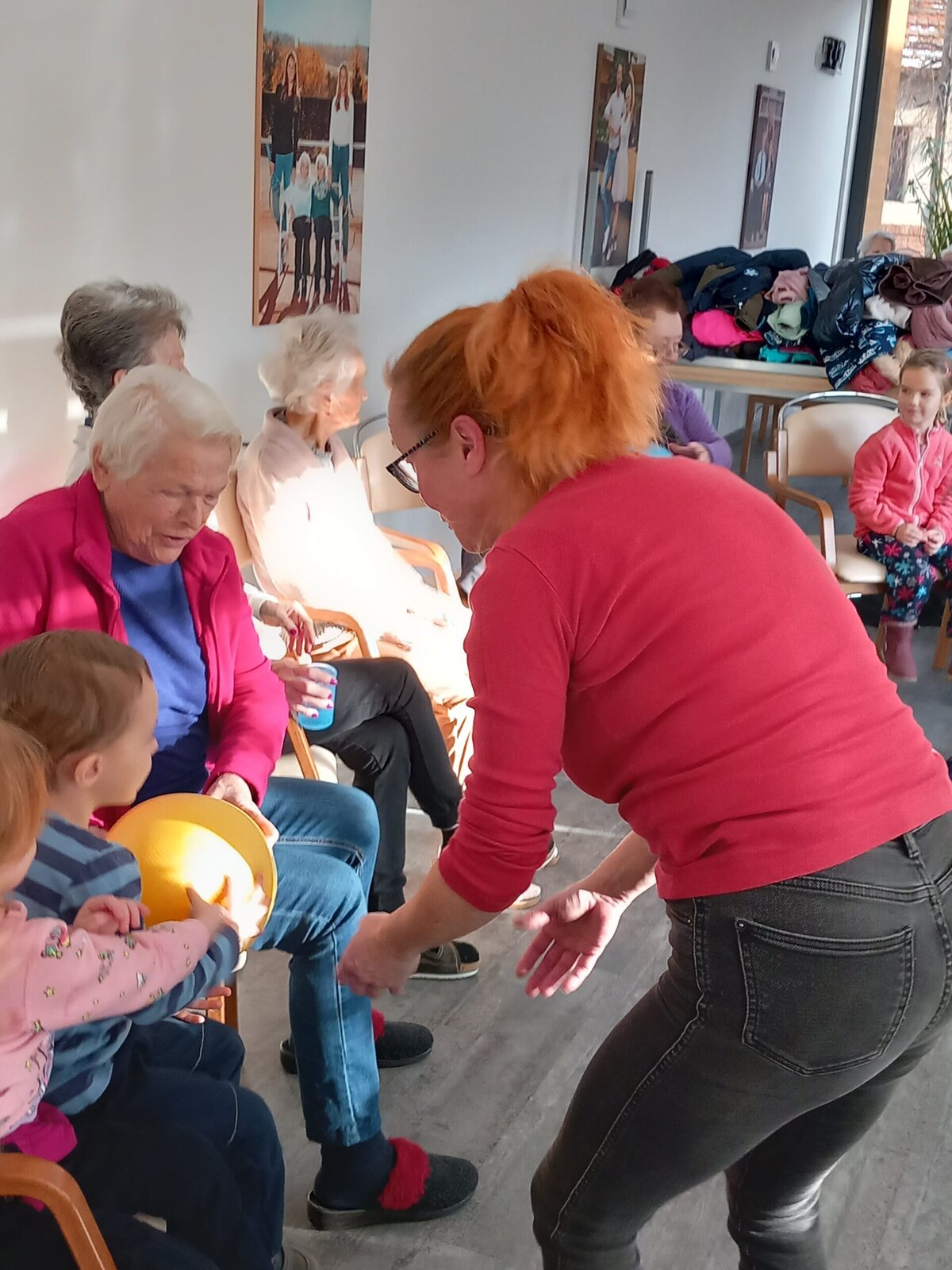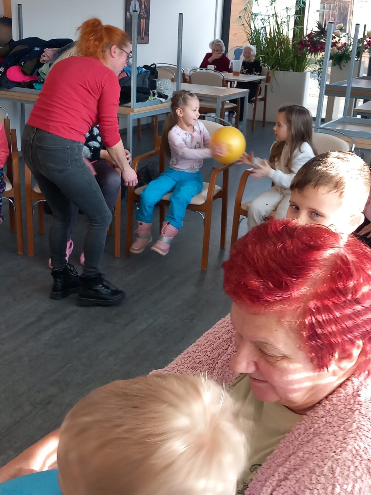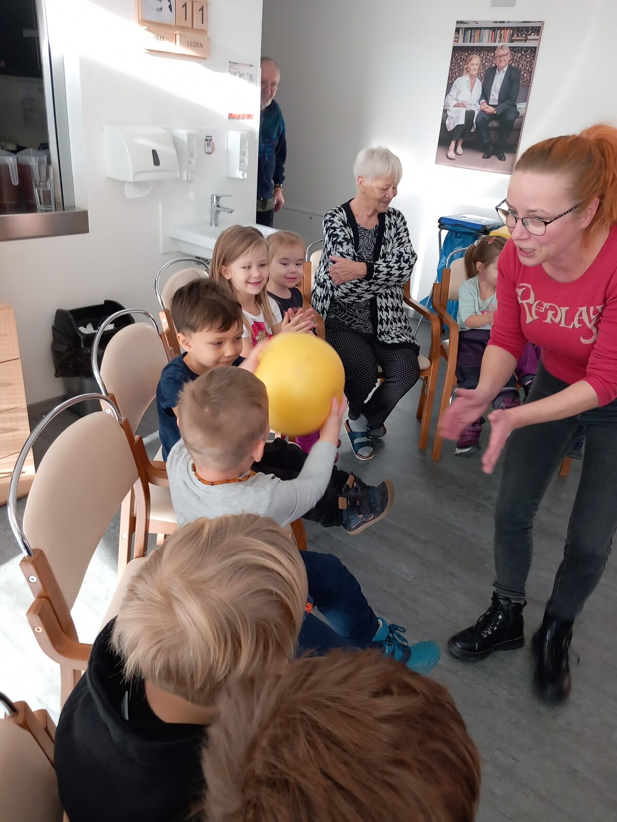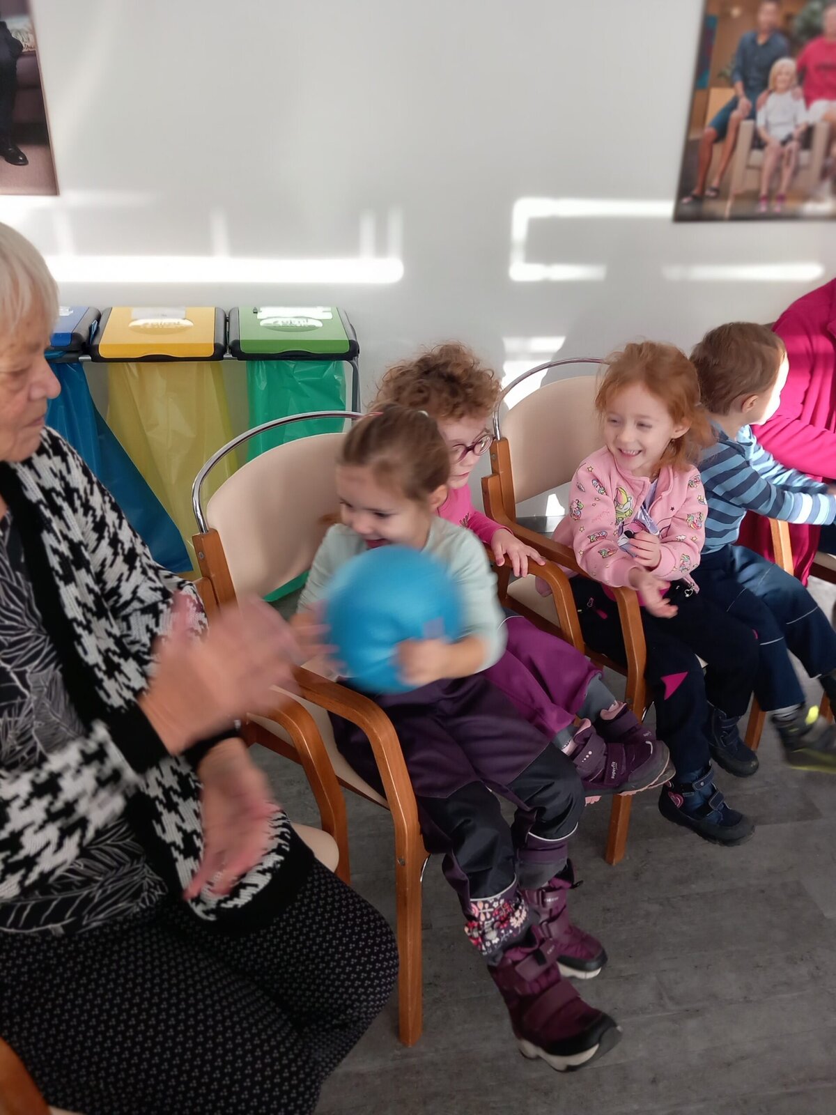 V Alzheimer Home Pitkovice nás přišly navštívit děti z MŠ Křeslice. Naše setkání bylo tentokrát ve znamení pohybu. Děti i klienti se aktivně zapojili do hry s míčem. Cvičilo se i se šátky a jejich spojením do kruhu, jsme vytvořili řetěz přátelství. Paní učitelky si společně s dětmi připravili doprovodné písničky a básničky.