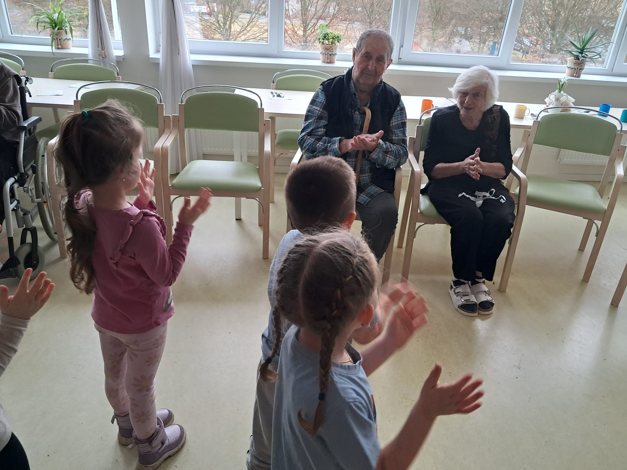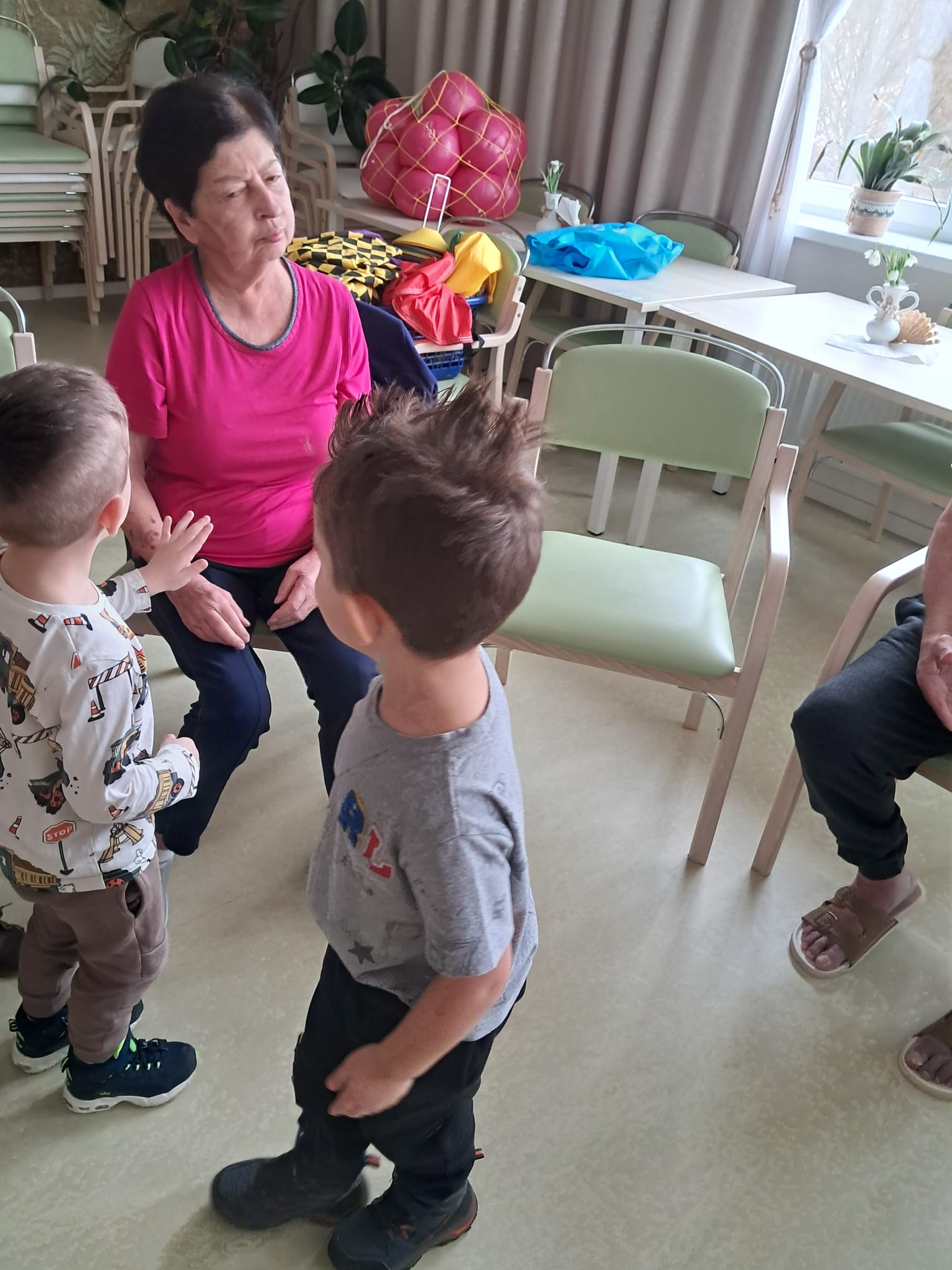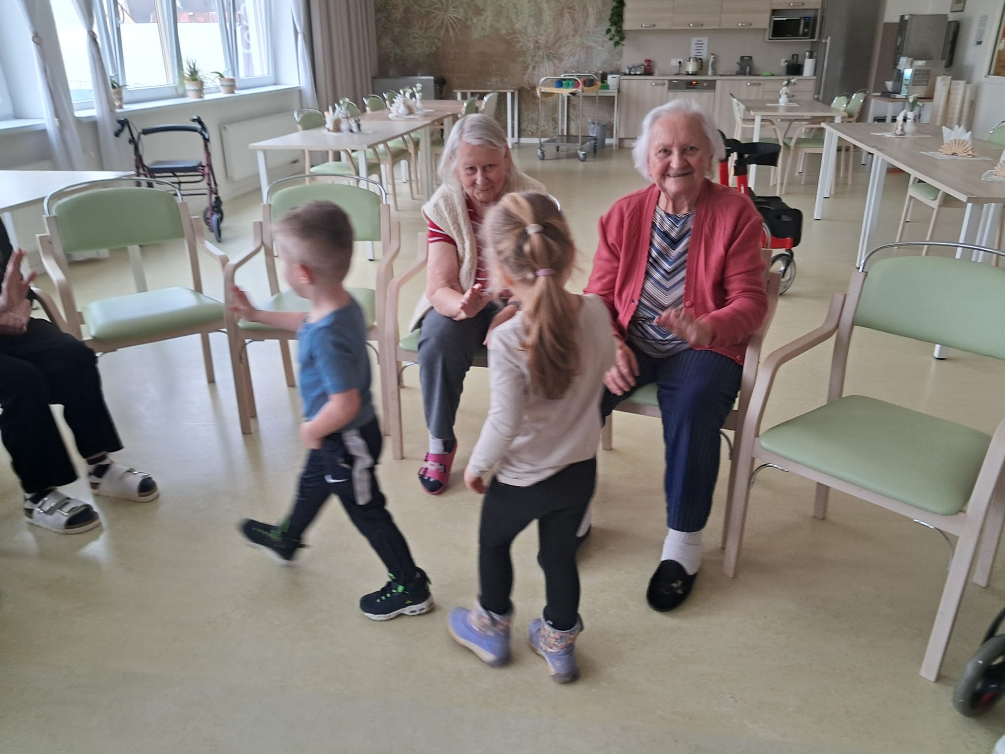 Děti z MŠ Javorová nás opět potěšily milou návštěvou a pro naše klienty uspořádaly sportovní dopoledne plné radosti a pohybu.