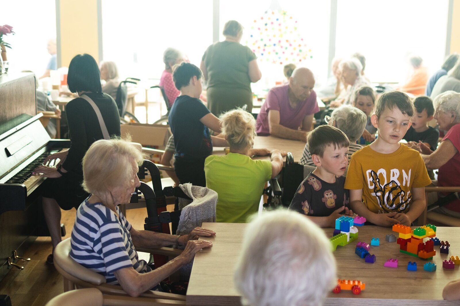 Dopolední mezigenerační setkání. Děti z MŠ Průhonice nás přišly navštívit. Ukázaly nám co vše umí postavit z kostek a my jsme neváhali a rádi jsme se k nim přidali. Nakonec nám za doprovodu klavíru krásně zazpívaly. Děkujeme a těšíme se na příště.