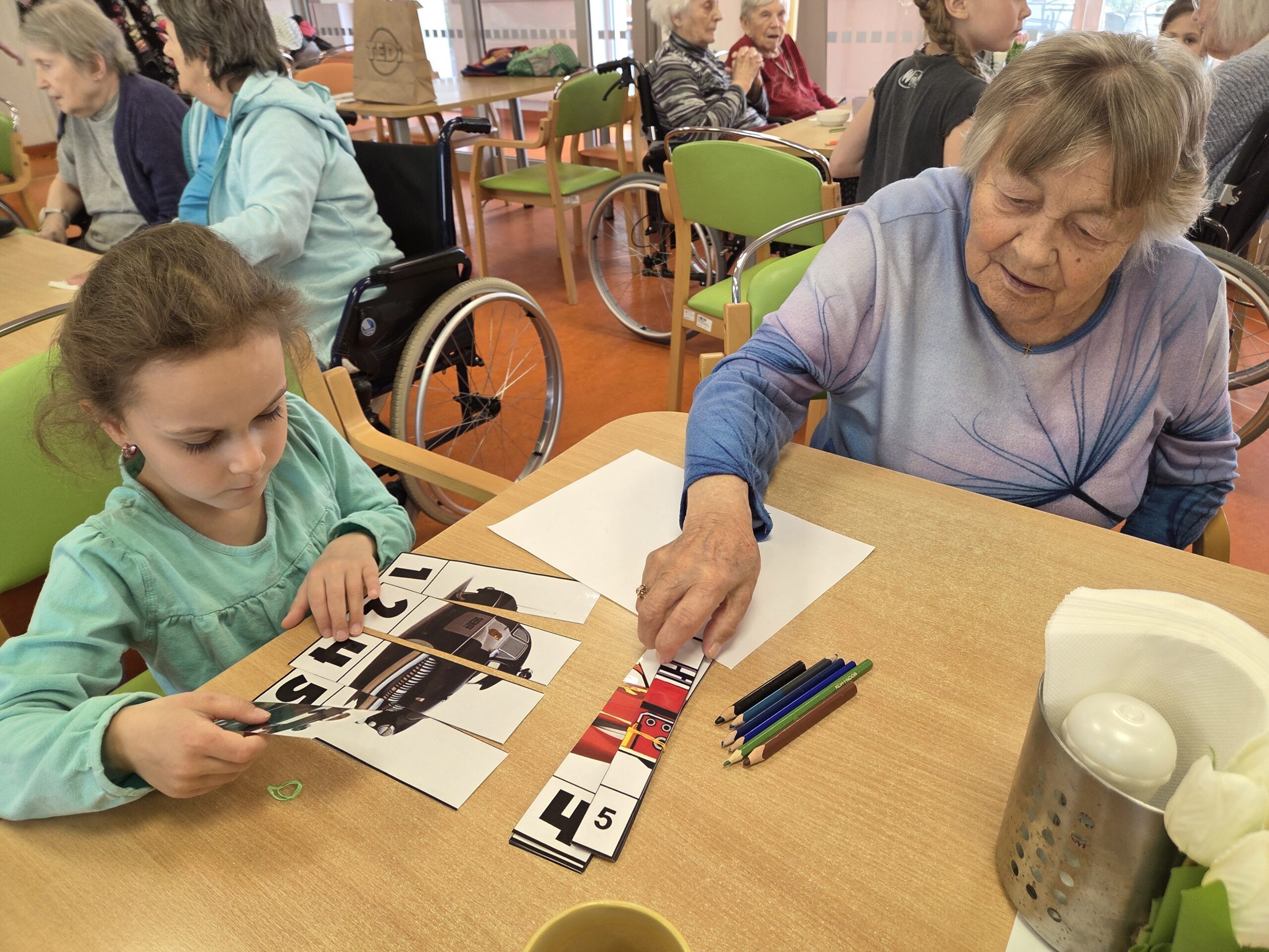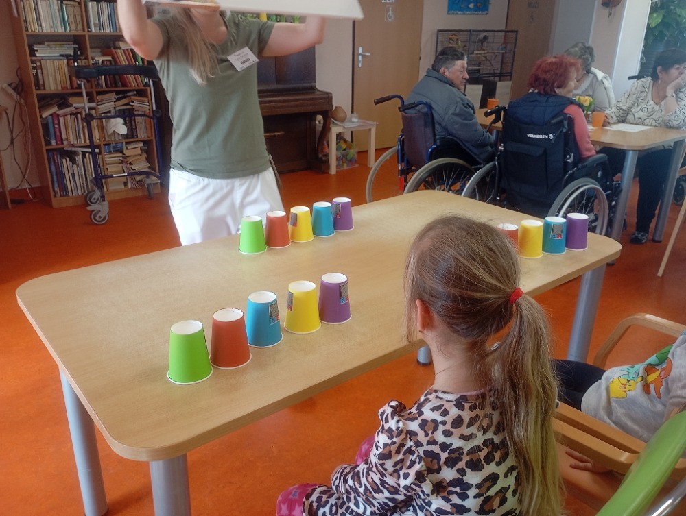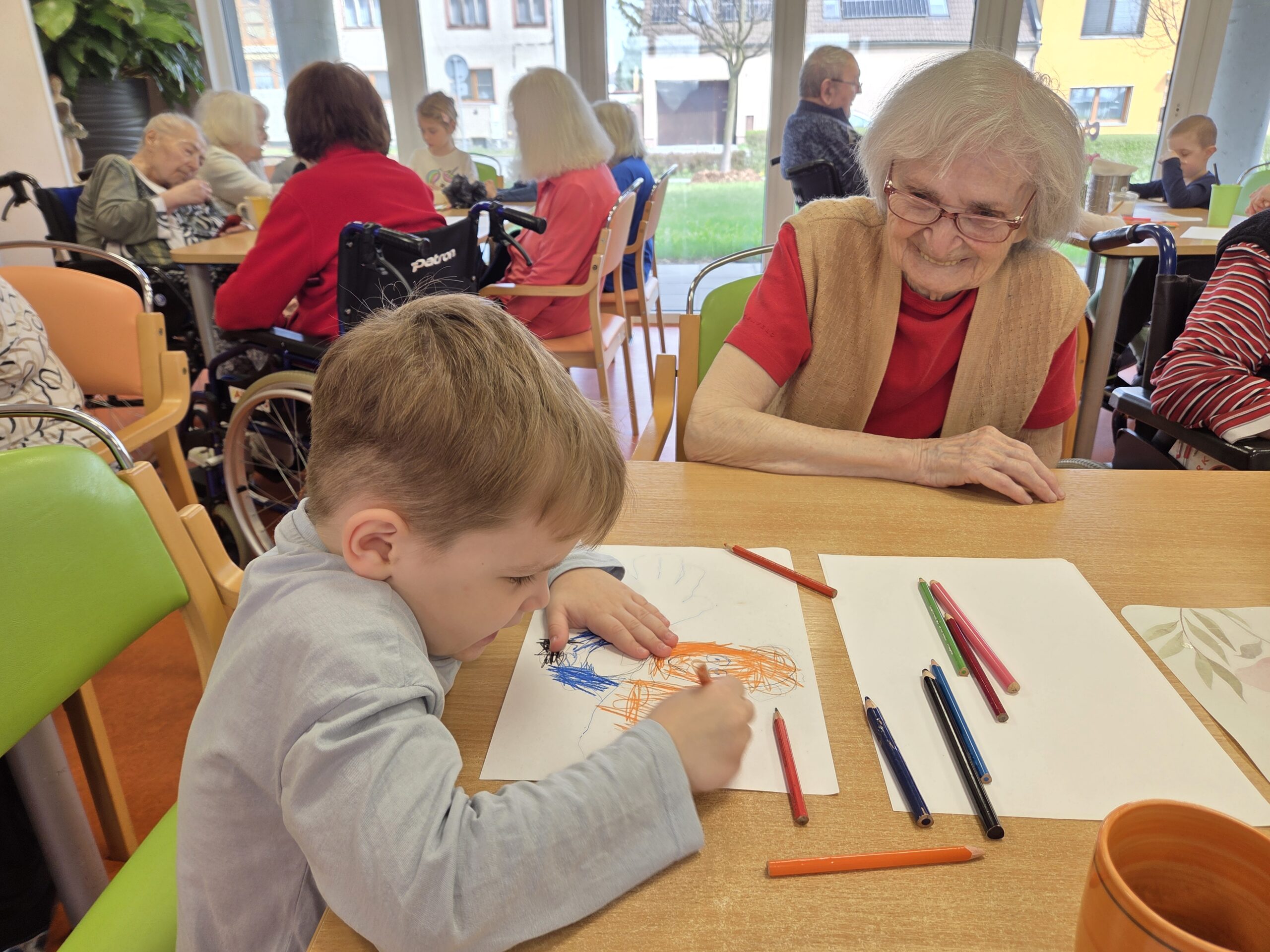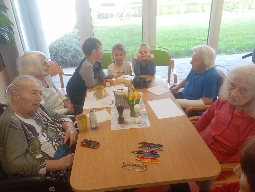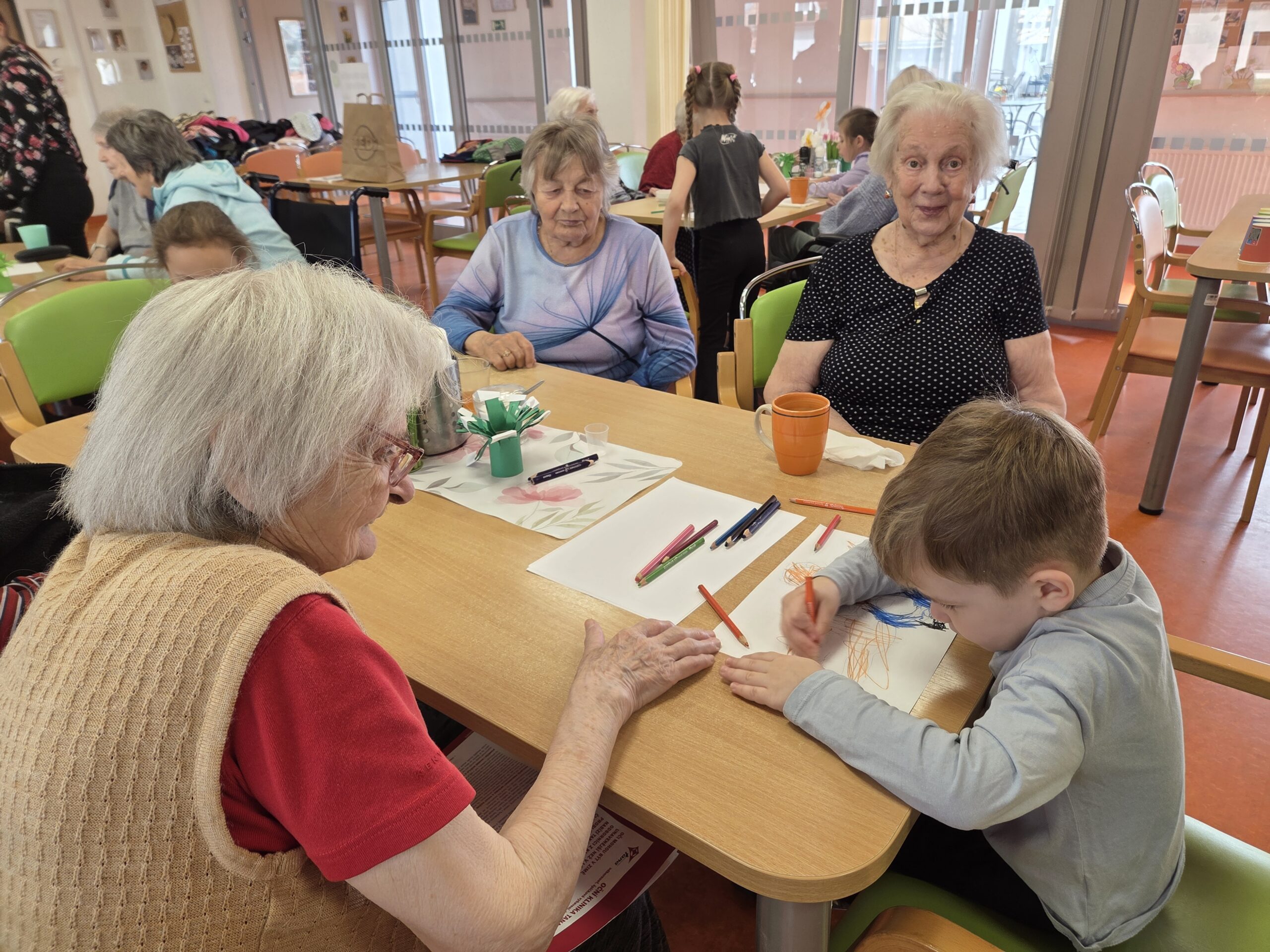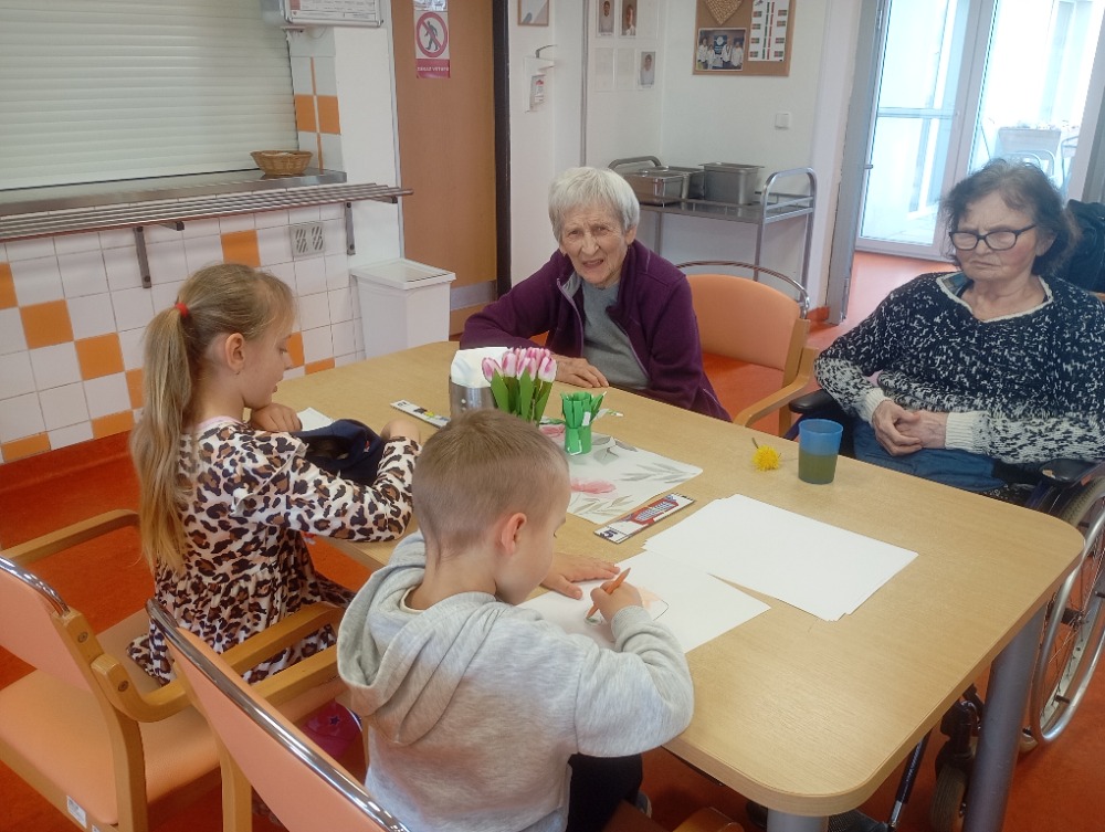 Program byl pestrý a propojil svět dětí i seniorů hned několika aktivitami. Jedním z nejhezčích momentů bylo malování portrétů, kdy děti s velkým zaujetím kreslily své starší „kamarády“.