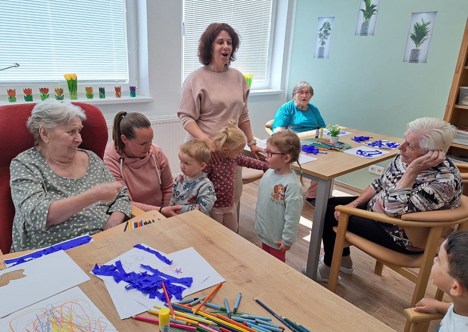 Děti ze školičky Sluníčko opět rozzářily den našim klientům z Senevida Ostrov a přinesly s sebou spoustu radosti a energie. Společně tvořili, zpívali oblíbené písničky a smáli se od srdce. Tato mezigenerační setkání jsou pro naše klienty velkým zážitkem – rozjasňují běžné dny, probouzejí vzpomínky a přinášejí pohodu a úsměvy.