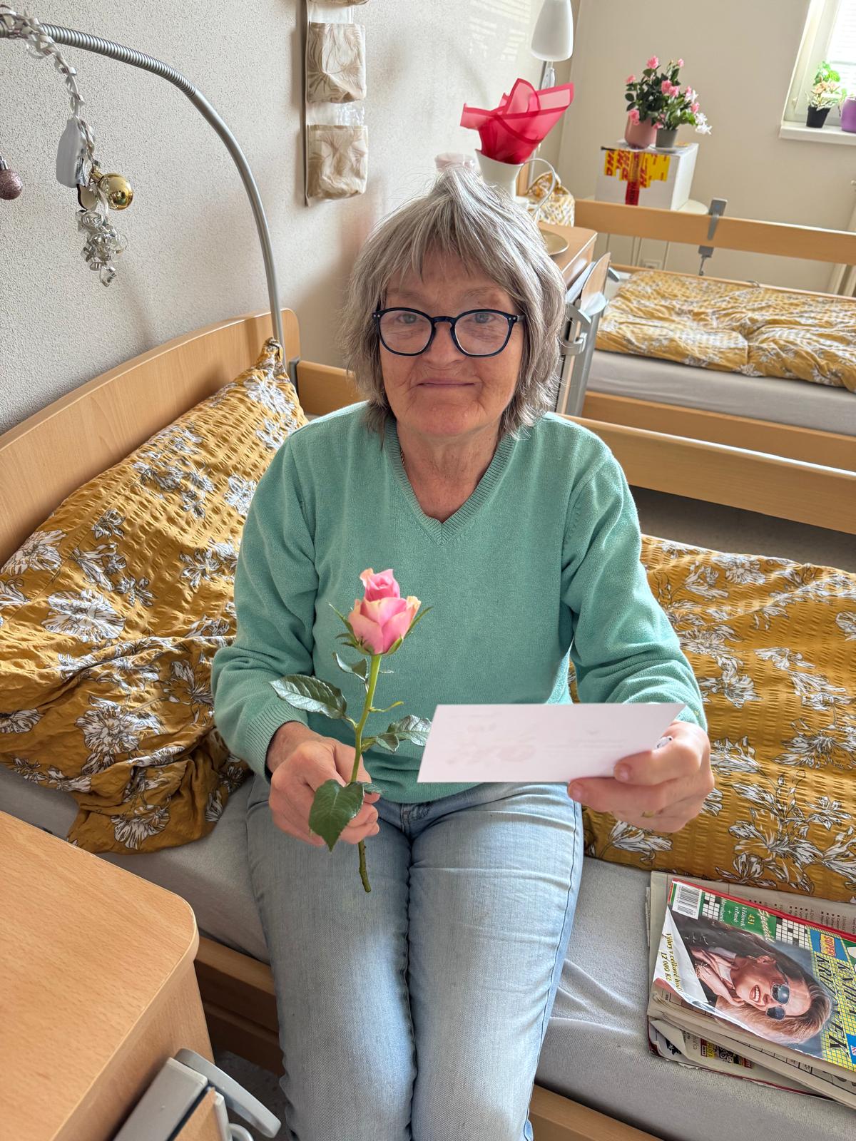 Dne 8. 3. 2026 jsme v našem domově oslavili Mezinárodní den žen. Všechny naše klientky dostaly krásnou růžičku a přání k jejich svátku.🌹