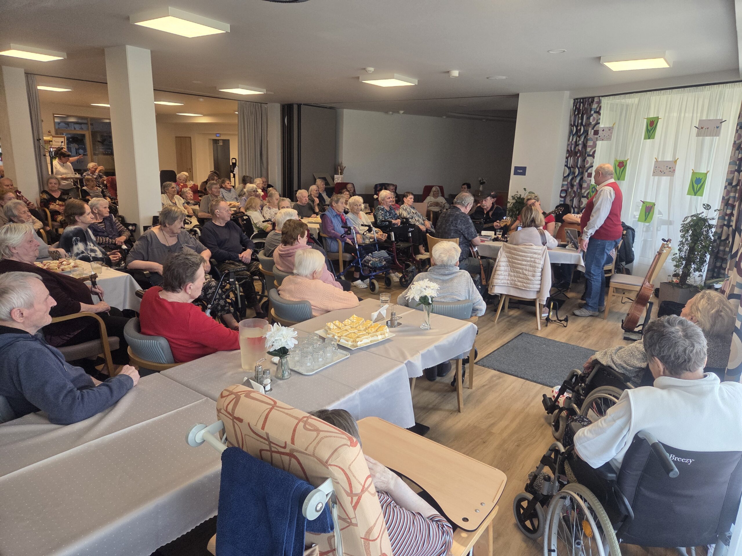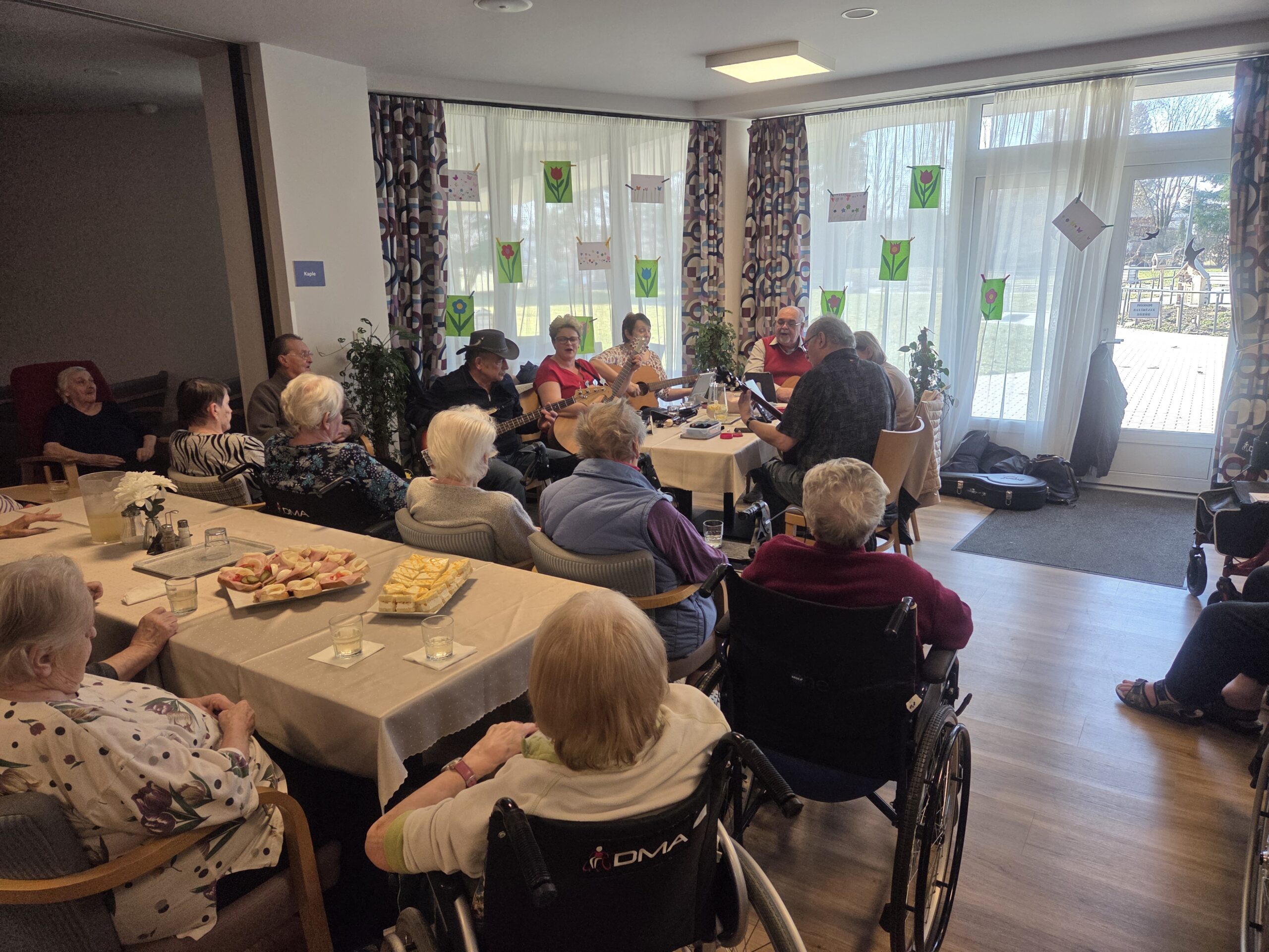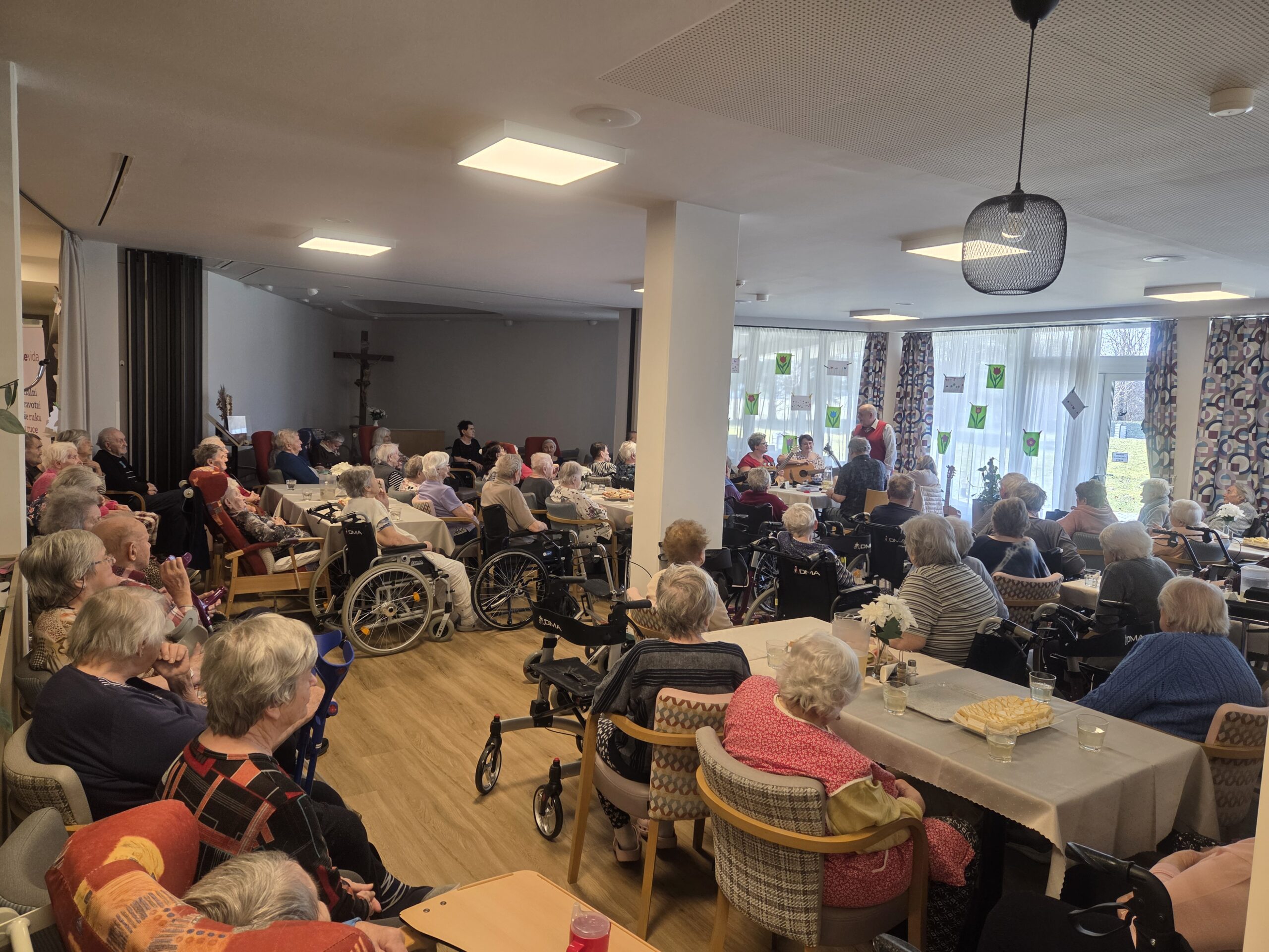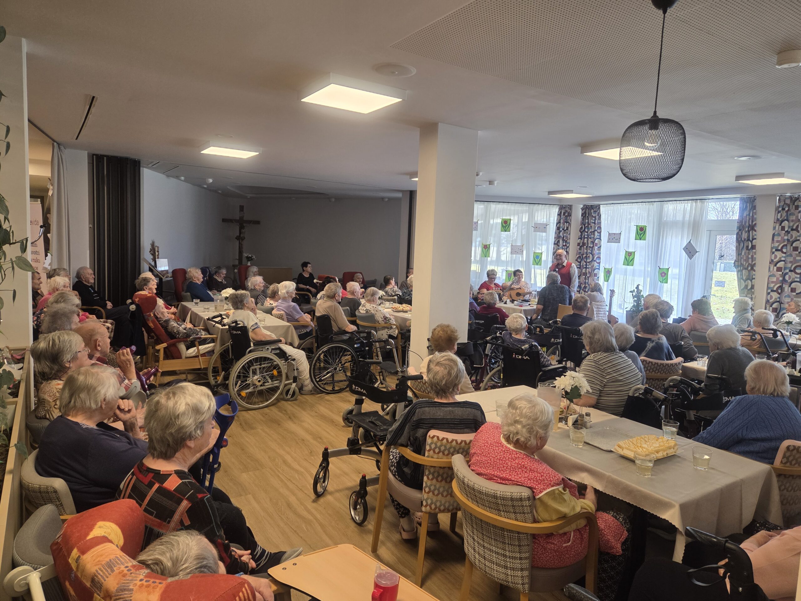 Slavnostní odpoledne se neslo v příjemné a přátelské atmosféře. Jídelna byla vyzdobena jarními květinami a nechyběly ani drobné dárky pro naše klientky.