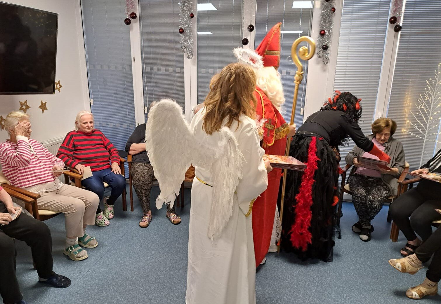 Mikulášská nadílka v Senevida Ostrov proběhla za velkého veselí, které rozzářilo nejen klienty, ale i celý personál. Nechyběli tradiční postavy – Mikuláš🎅, čertice 👹a anděl 😇. Ačkoliv se čertice snažila být alespoň trochu strašidelná, nikdo z přítomných se jí nebál, spíše naopak. Anděl rozdával nejen drobné dárečky, ale i laskavé úsměvy, které rozzářily tváře všech přítomných.
