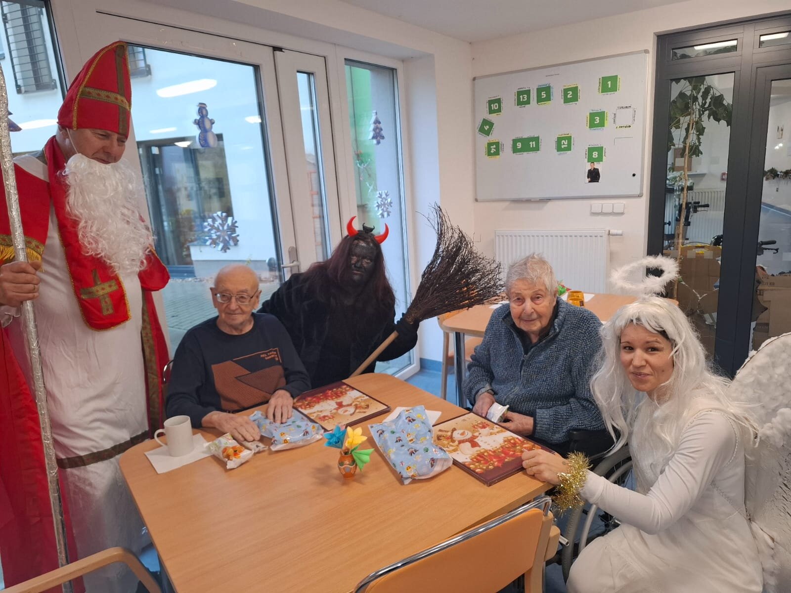 Do Senevida Minkovice zavítala vzácná návštěva! Mikuláš s čertem a andělem navštívili náš domov a potěšili tak všechny naše klienty. Někteří klienti jim tradičně povídali básničky, někteří zazpívali známé lidové písně a jiní například vyprávěli vtipy. Trojice rozdávala nejen sladké dárky, ale hlavně hodně radosti. Přejeme všem krásný předvánoční čas.