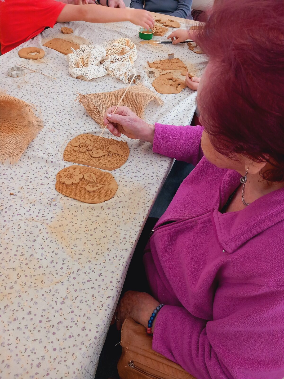 Tentokrát si děti s našimi klienty vyzkoušeli práci s keramikou 🎨👐 – společně vytvořili nádherné jarní dekorace, které později vypálíme v peci a děti nám je pak věnují jako krásný
