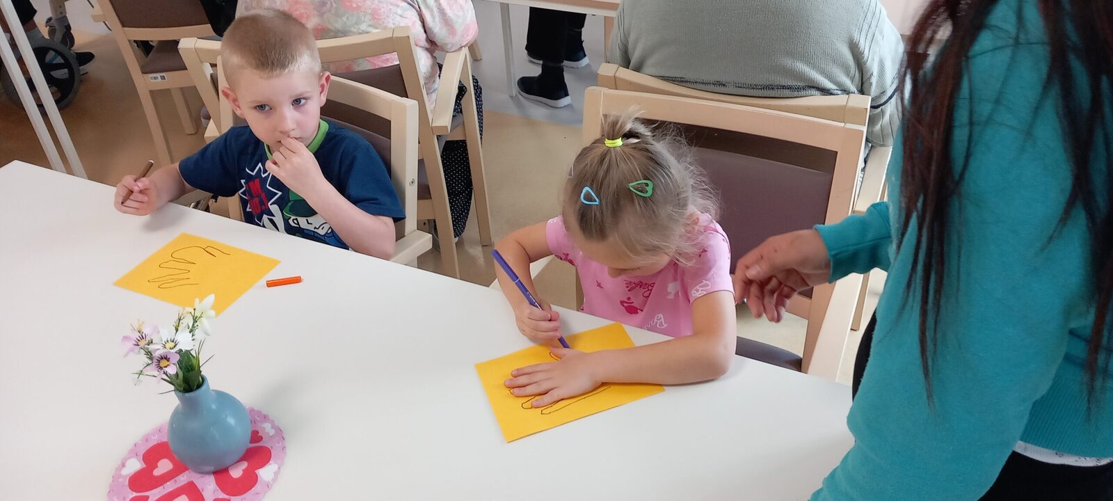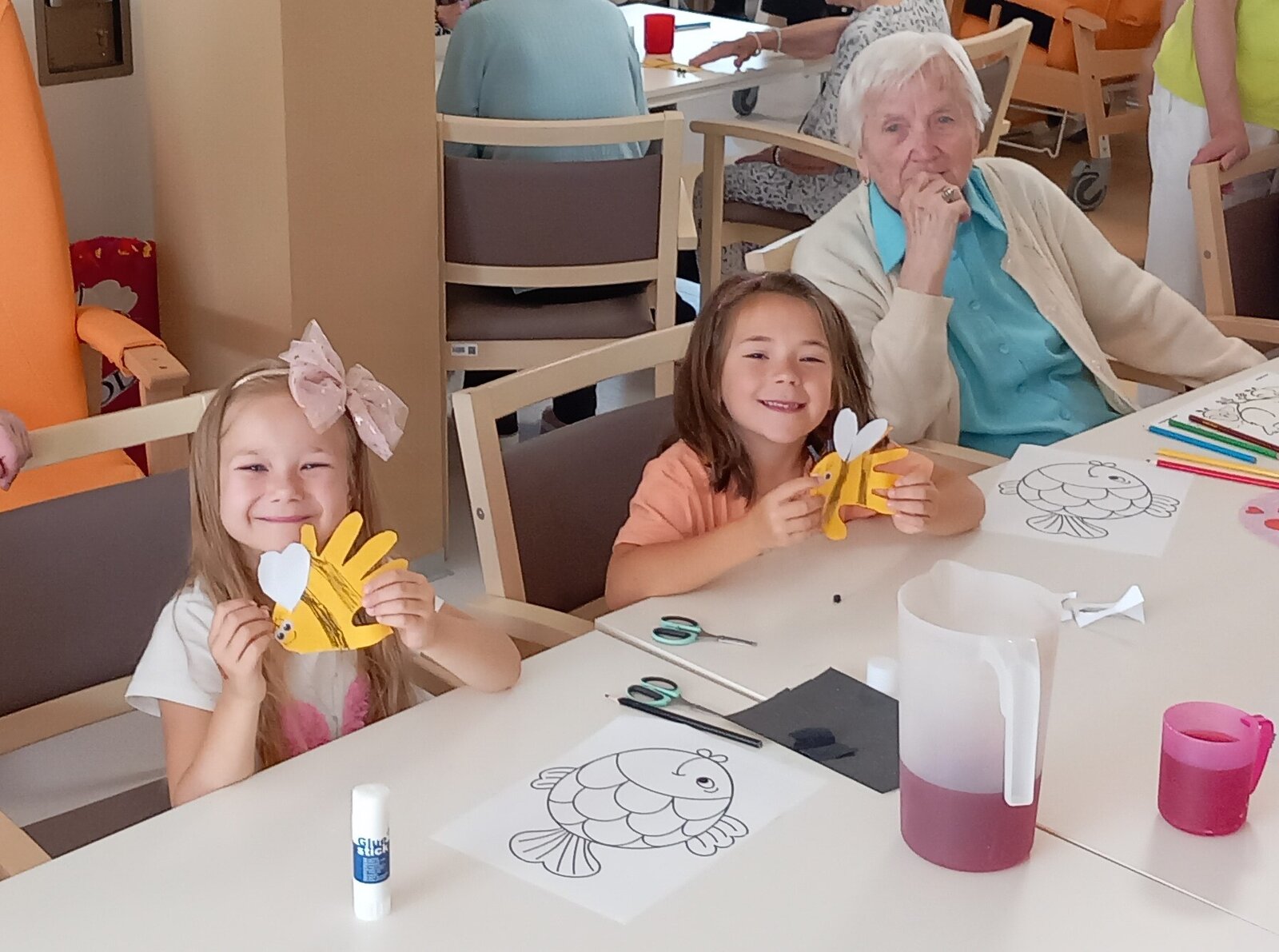 Děti z mateřské školy přišly potěšit naše klienty.😉 Zatančily, zazpívaly a nakonec se dostalo i na kreslení a výrobu papírových včeliček. Bylo to fajn dopoledne a zase se budeme brzy těšit. Děkujeme všem.😍💙