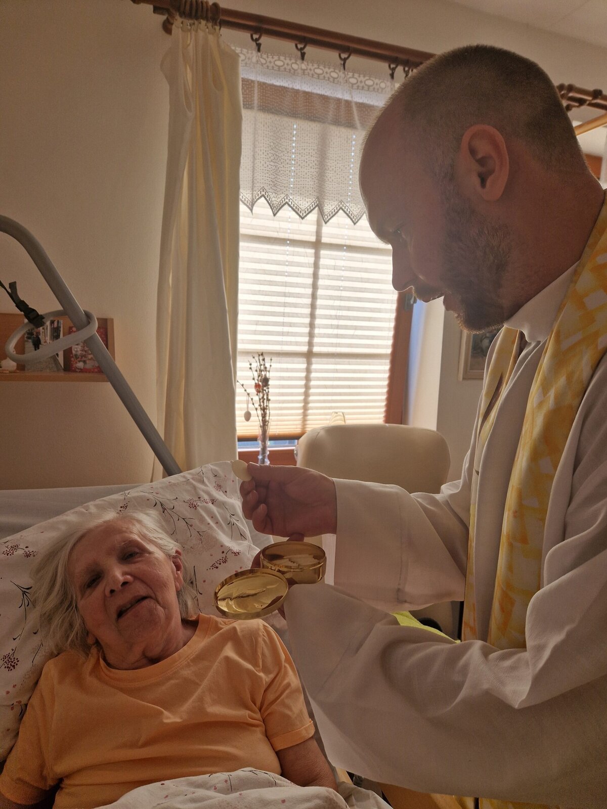 Každou první středu v měsíci se v Senevida Frýdek-Místek koná Mše svatá. Po společné bohoslužbě navštěvuje otec Václav klienty také na pokojích, aby si mohli v soukromí popovídat či se pomodlit. 🙏