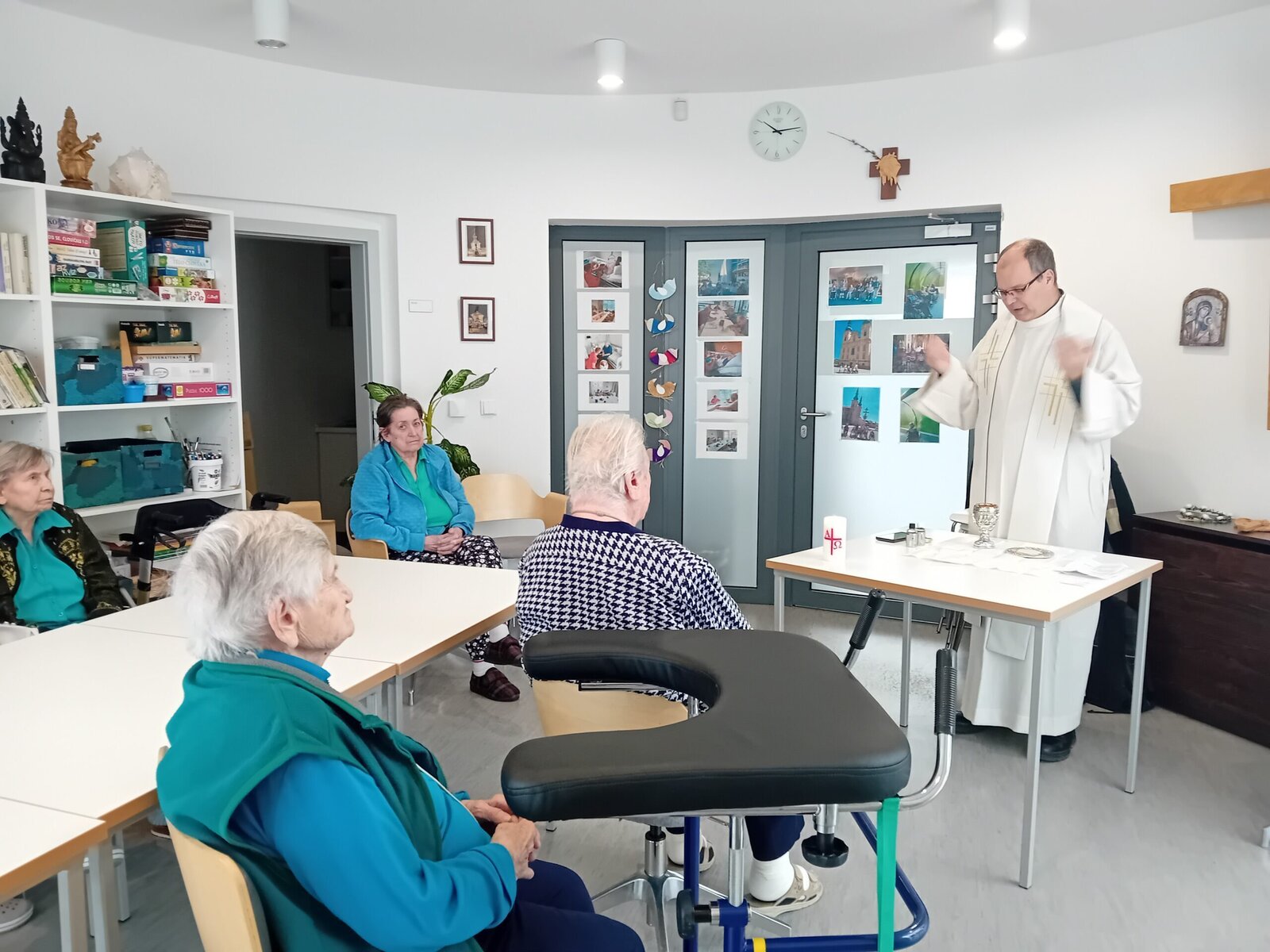 O duchovní potřeby klientů v Senevida Slavkov se pravidelně stará místní pan farář Jiří Janoušek. Rádi se s ním setkáváme. Po mši se věnuje klientům i individuálně na pokojích. Je u nich velmi vítaným hostem.