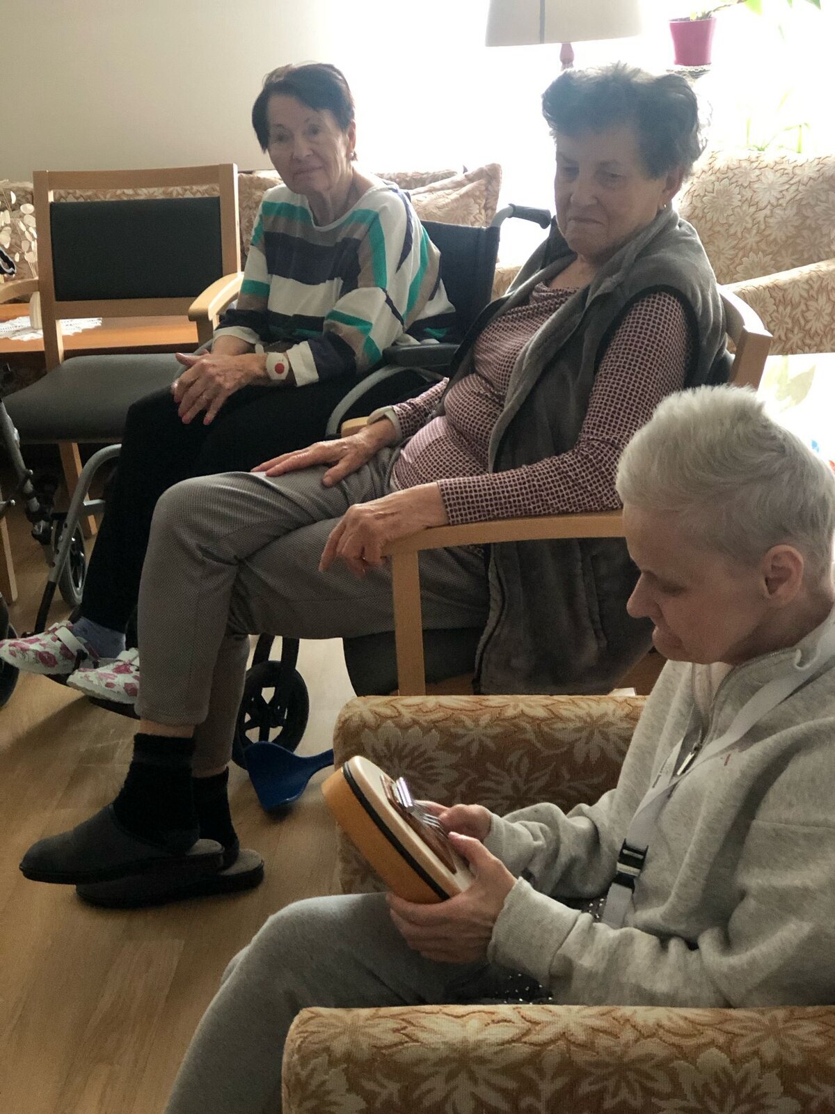 V Senevida Pardubice nás opět navštívila paní Pavlína Votkeová se svou muzikoterapií, jejímž cílem je usnadnit a rozvinout komunikaci, vztahy, učení, pohyblivost nebo sebevyjádření za účelem uspokojení tělesných, emocionálních, mentálních, sociálních a kognitivních potřeb.![]()