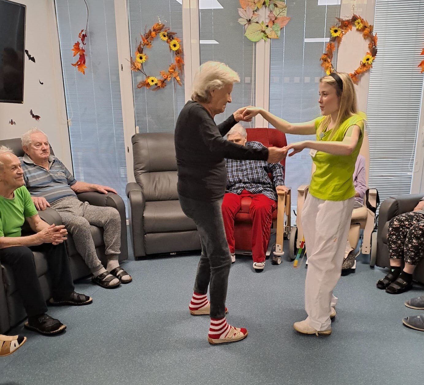 ALZEIMER HOME Ostrov navštívila paní harmonikářka, která svým vystoupením přinesla klientům radost a pohodu. Oblékla se do stylového dobového kostýmu, který krásně podtrhl atmosféru jejího hudebního vystoupení. S velkým nasazením zahrála známé staré písničky, které okamžitě rozezpívaly naše klienty. Nezůstalo však jen u hudby – paní harmonikářka si pro všechny připravila i zajímavé povídání, plné veselých historek a zajímavostí z minulosti.