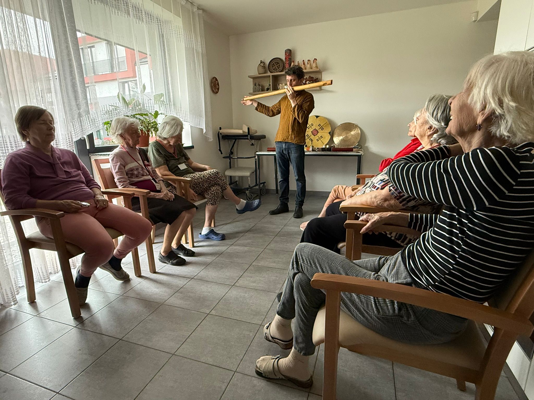 Další návštěva muzikoterapeuta Jakuba Vlčka nám dala možnost se opět zrelaxovat, zlepšit náladu a trochu se odreagovat. 🤗