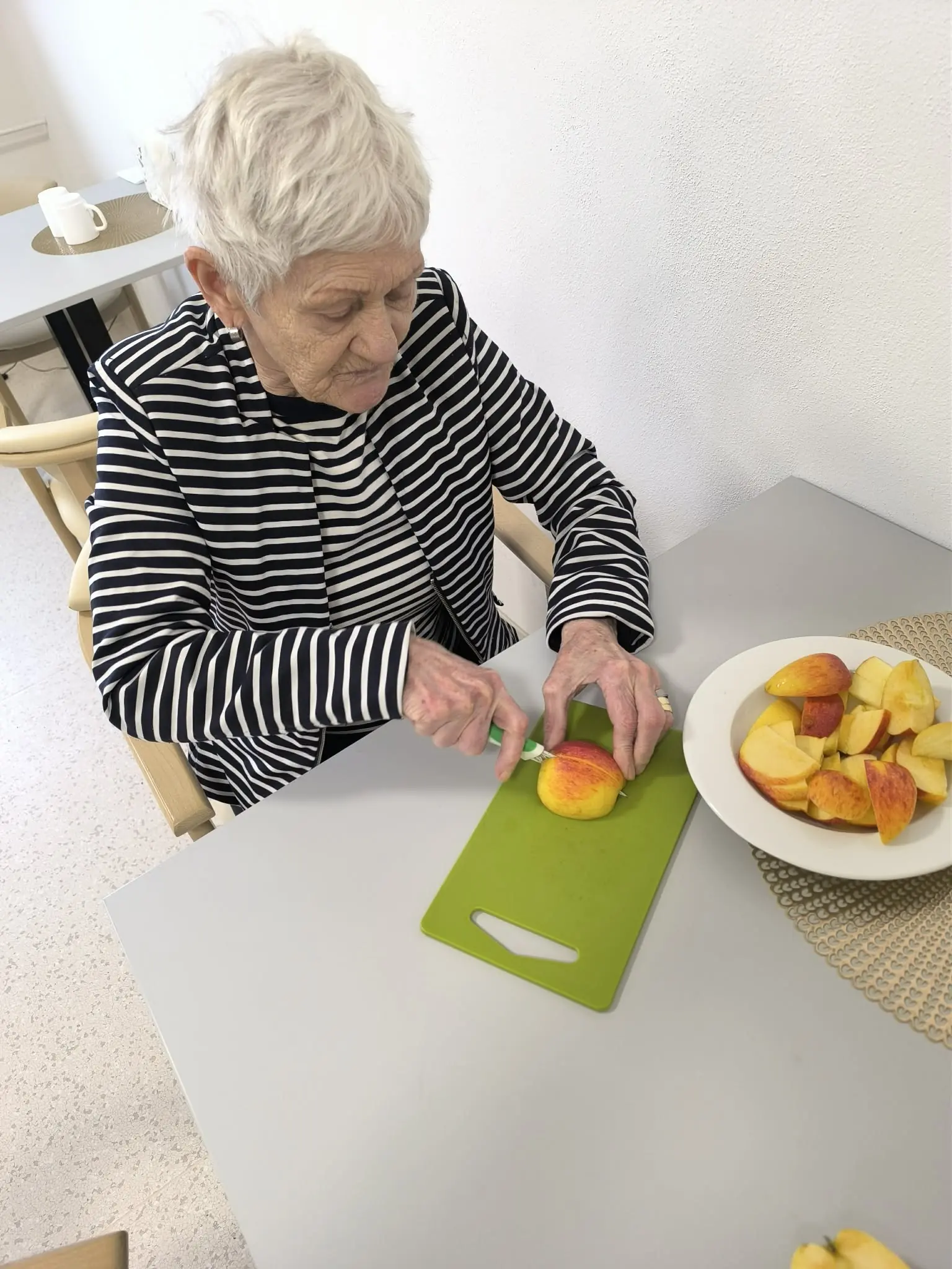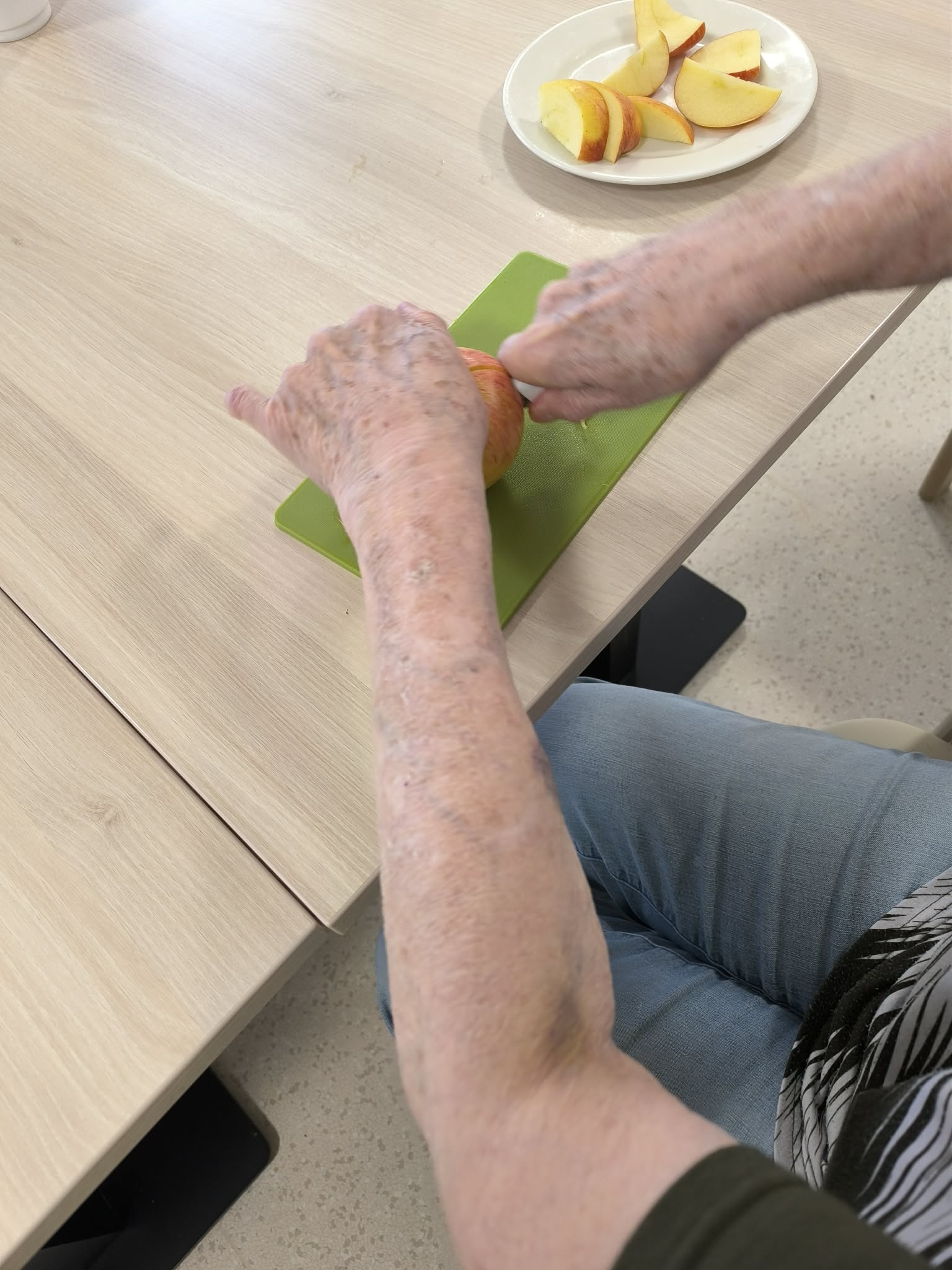 S klientkami Senevida Chelčice jsme společně posílili nácvik jemné motoriky formou krájení jablíček.