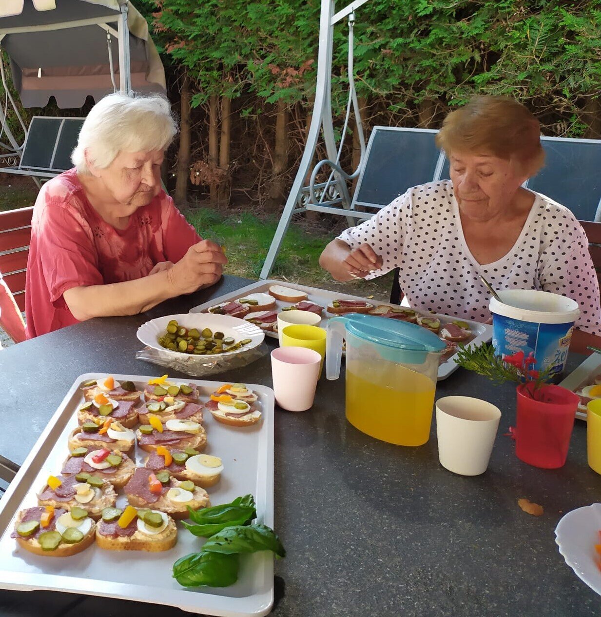Narozeninová oslava v Senevida Loucký Mlýn 🎂❤️ . Nejdřív práce 💪 -výroba chlebíčků, potom zábava 👍🥳.