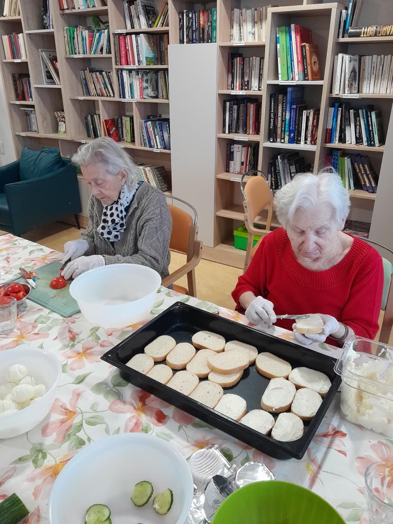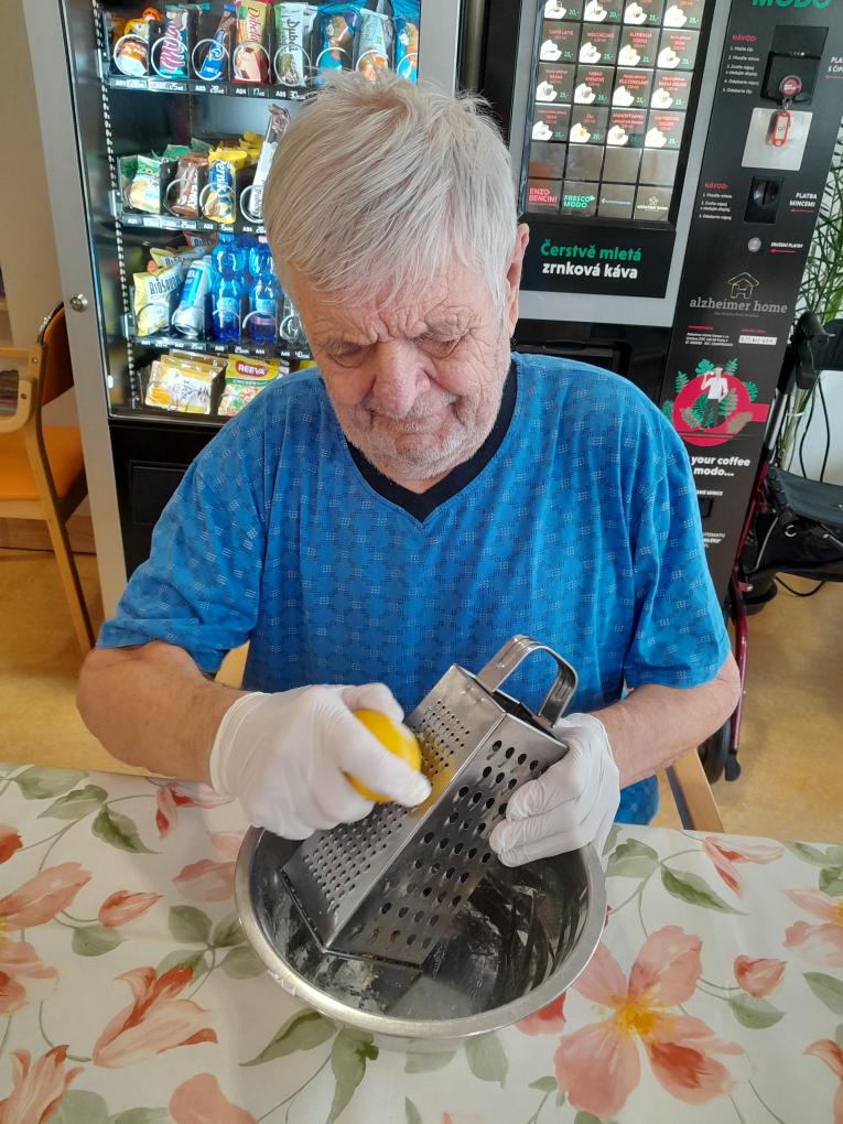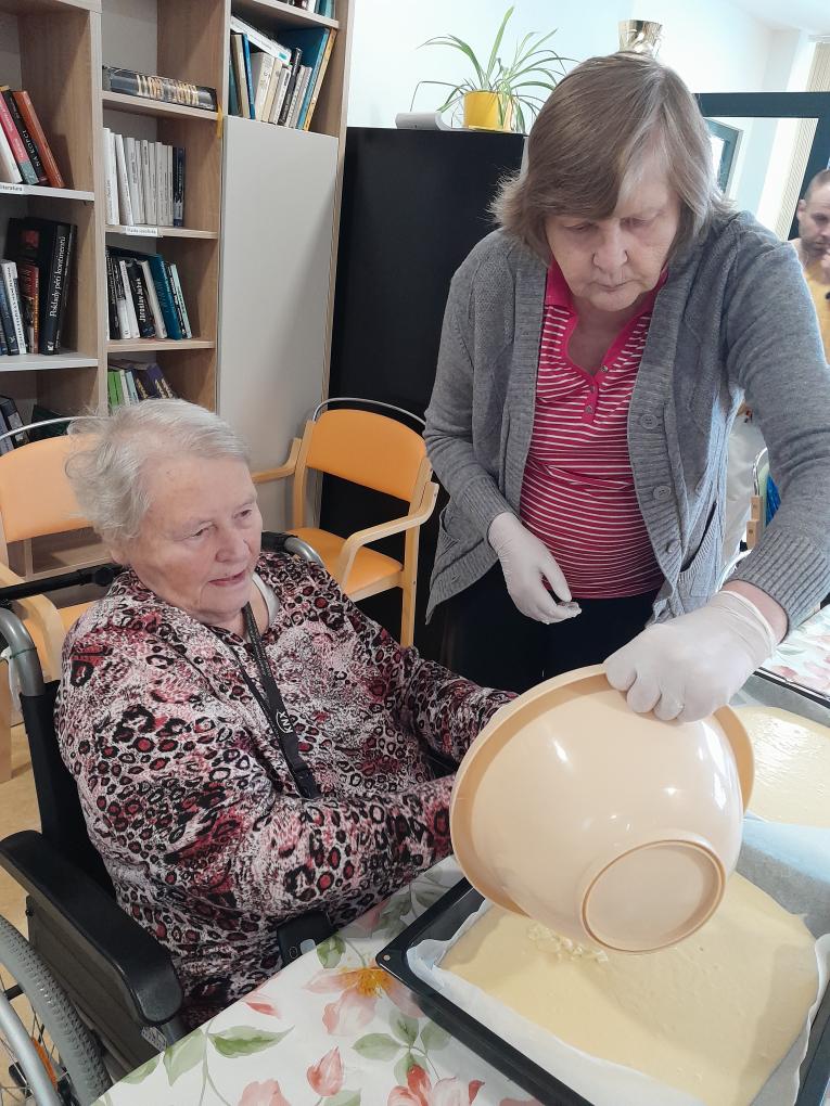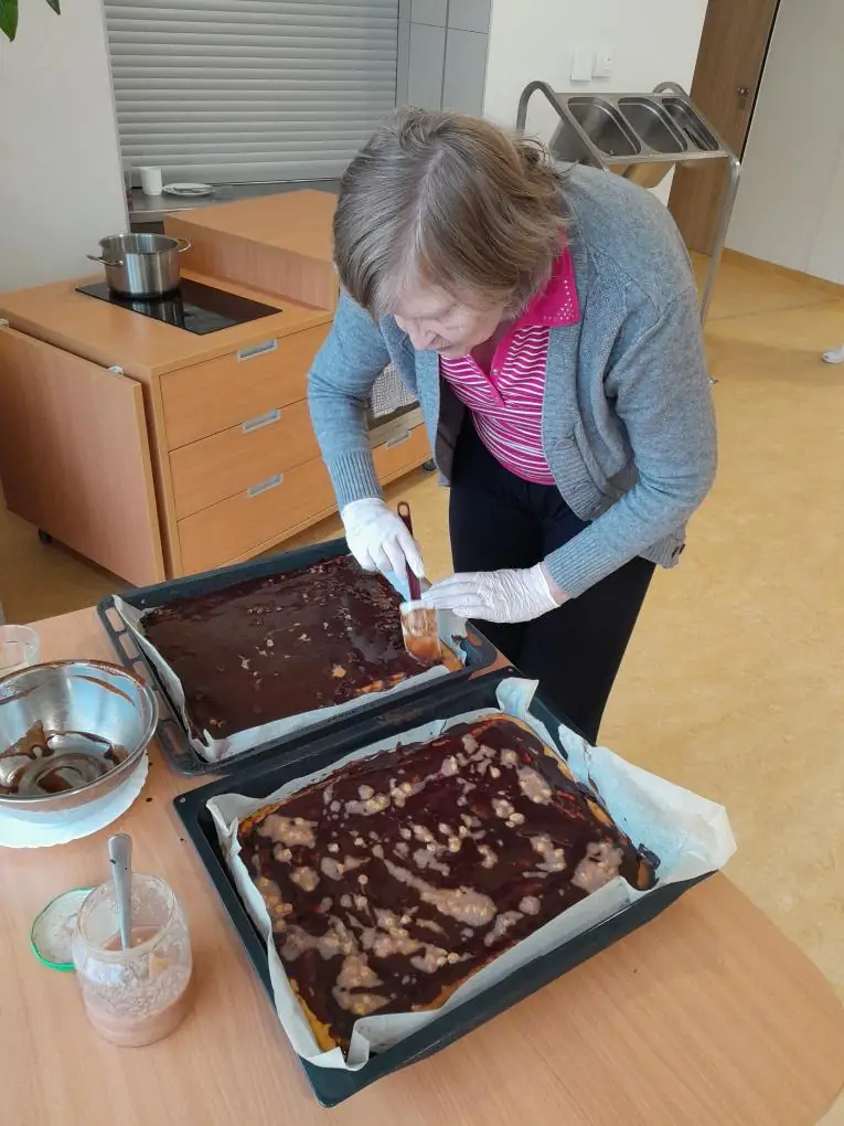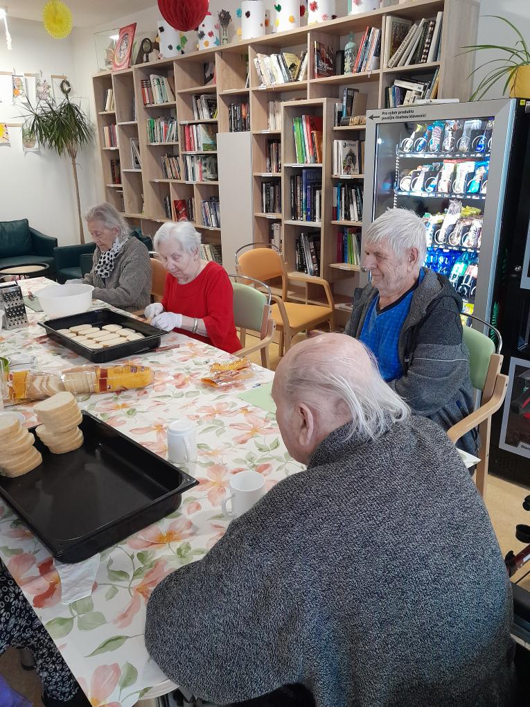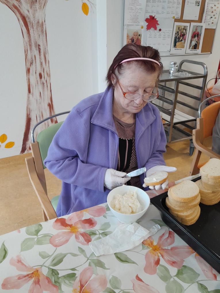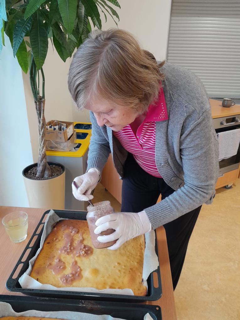 S našimi klienty z Alzheimer Home Boskovice, jsme se pustili do příprav narozeninového občerstvení – pekli jsme voňavou buchtu s čokoládovou polevou,kterou jsme ještě dochutili domácí marmeládou a na závěr jsme ji posypali kokosem, hotová buchta provoněla celý domov. K narozeninám samozřejmě patří i chlebíčky, které jsme společně připravili. Při přípravě těchto dobrot vládla příjemná atmosféra a klienti si celou akci mile užili.