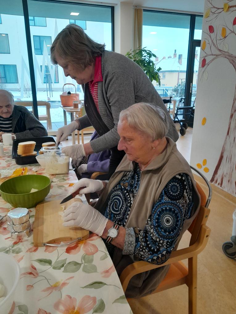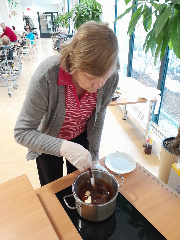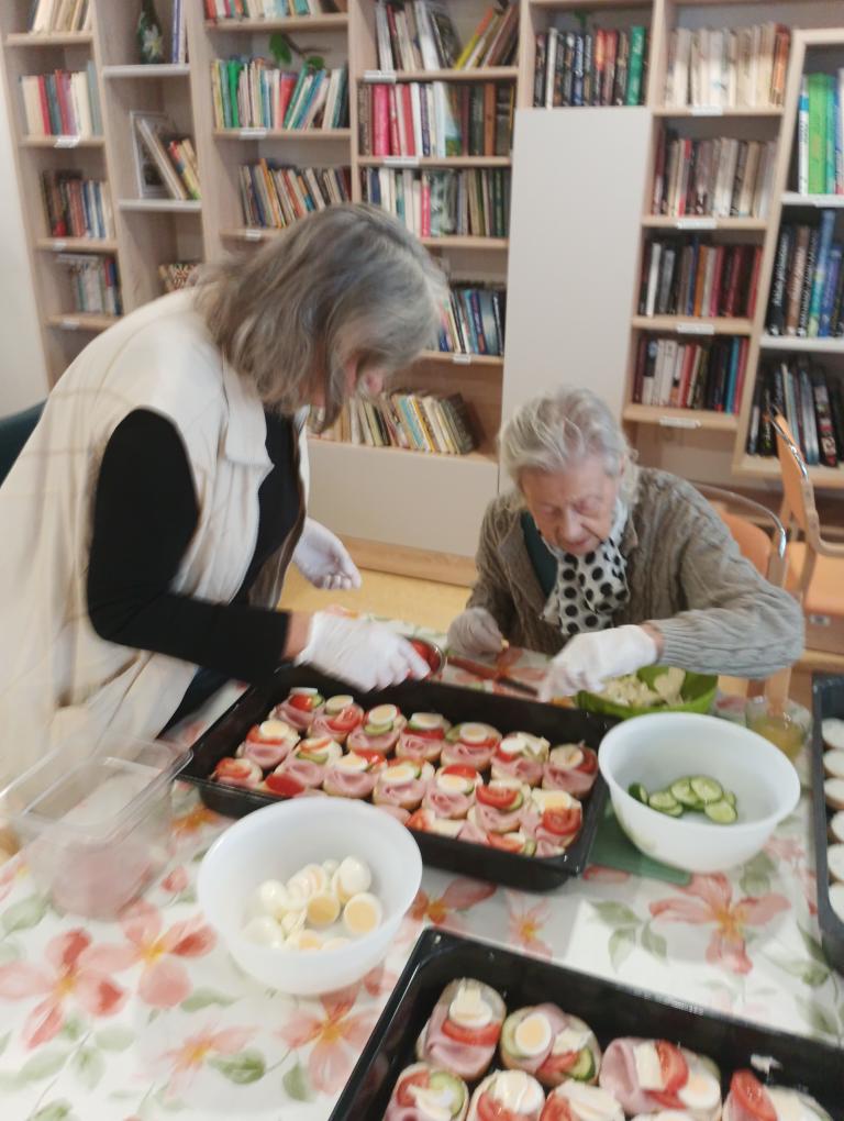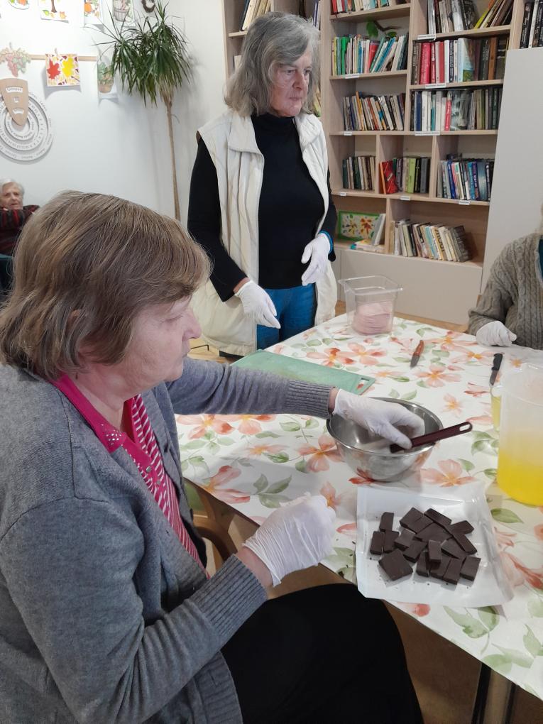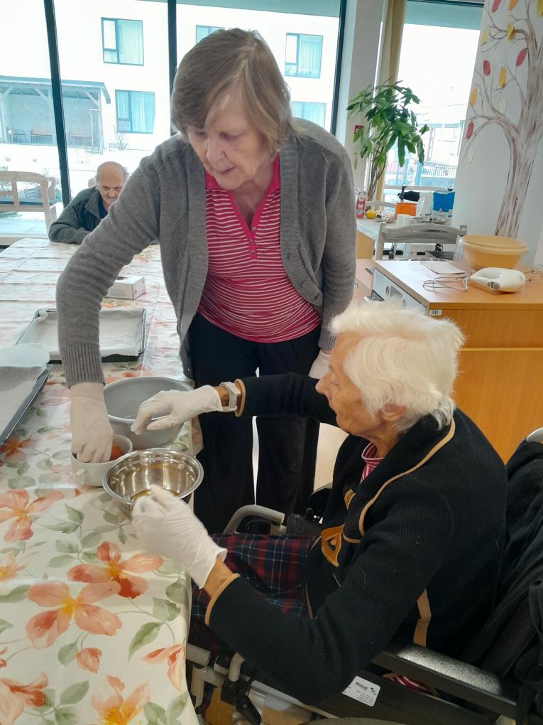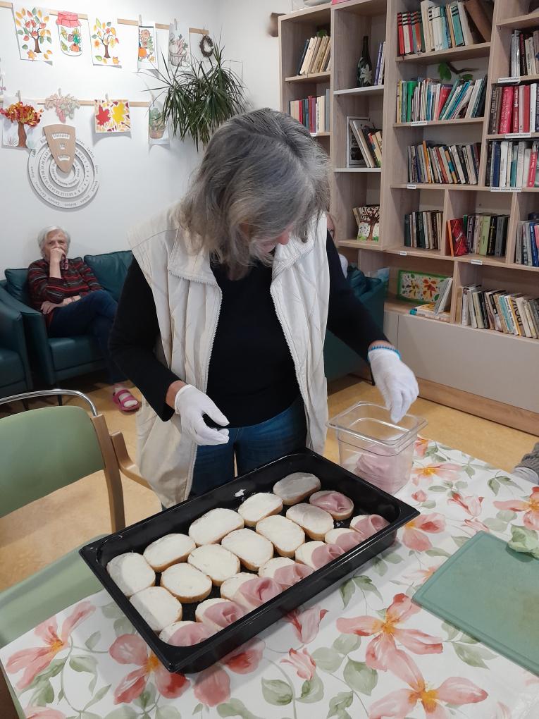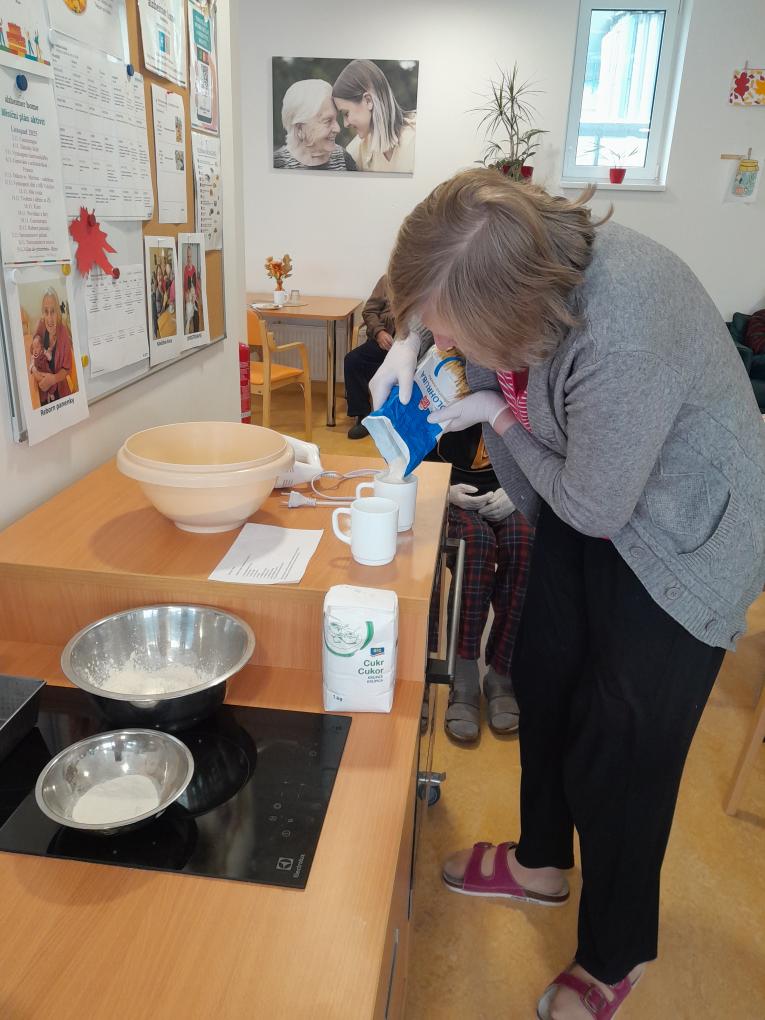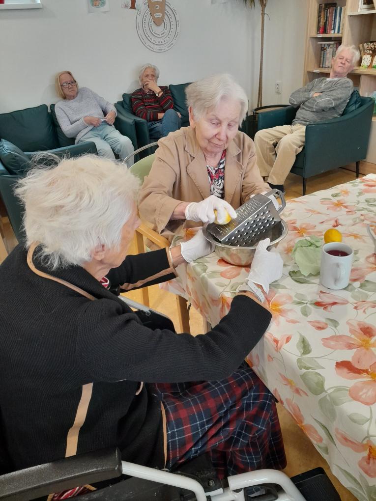 S našimi klienty z Alzheimer Home Boskovice, jsme se pustili do příprav narozeninového občerstvení – pekli jsme voňavou buchtu s čokoládovou polevou,kterou jsme ještě dochutili domácí marmeládou a na závěr jsme ji posypali kokosem, hotová buchta provoněla celý domov. K narozeninám samozřejmě patří i chlebíčky, které jsme společně připravili. Při přípravě těchto dobrot vládla příjemná atmosféra a klienti si celou akci mile užili.
