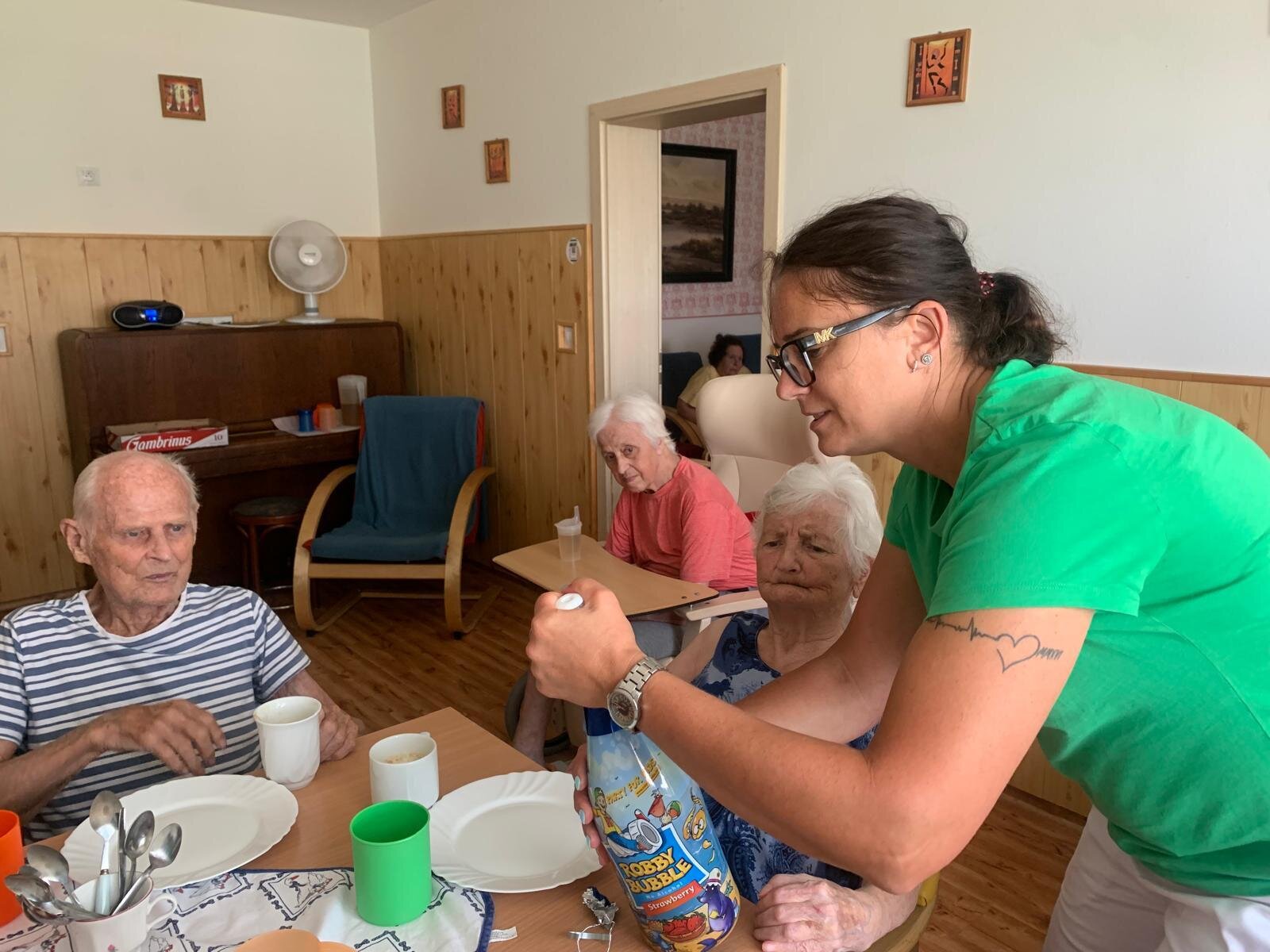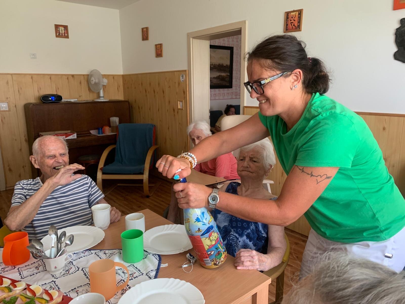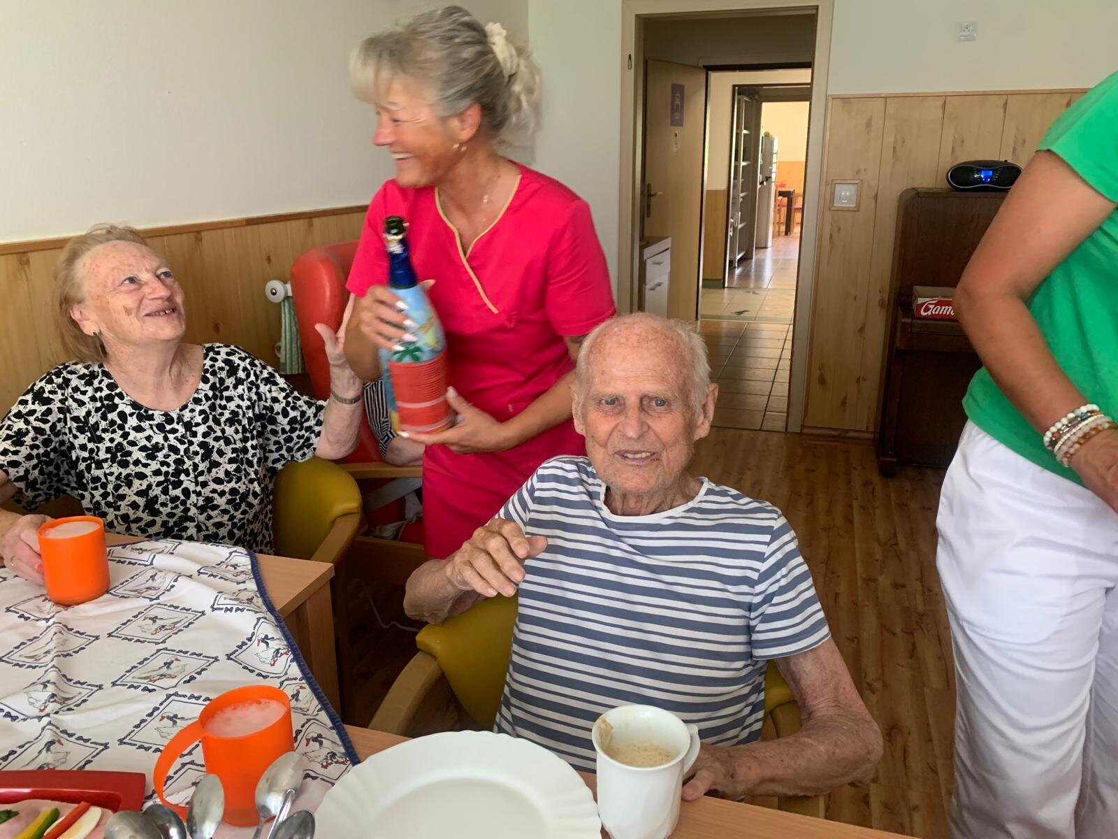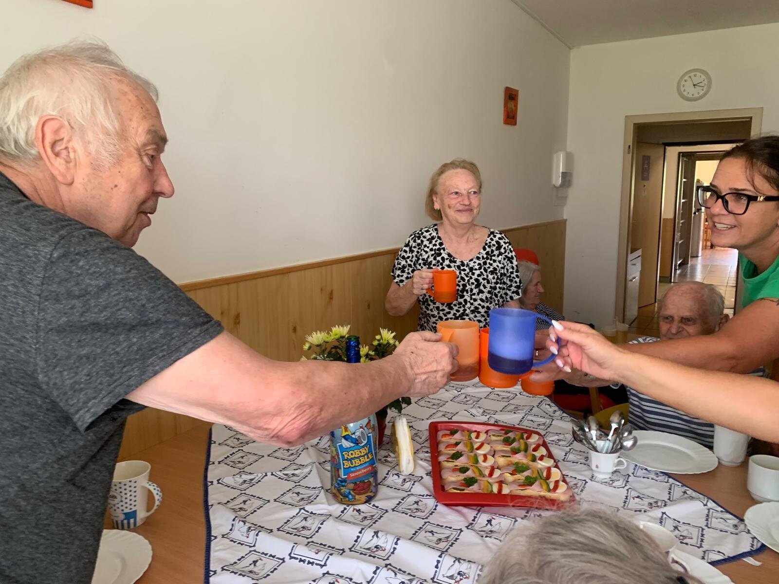 Červencové oslavy jsme si zorganizovali kvůli velkému horku zase zvlášť. Ale na úsměvu nám to stejně neubíralo. Společně jsme si přiťukli na zdraví oslavenců a abychom se tu opět za rok ve zdraví sešli.