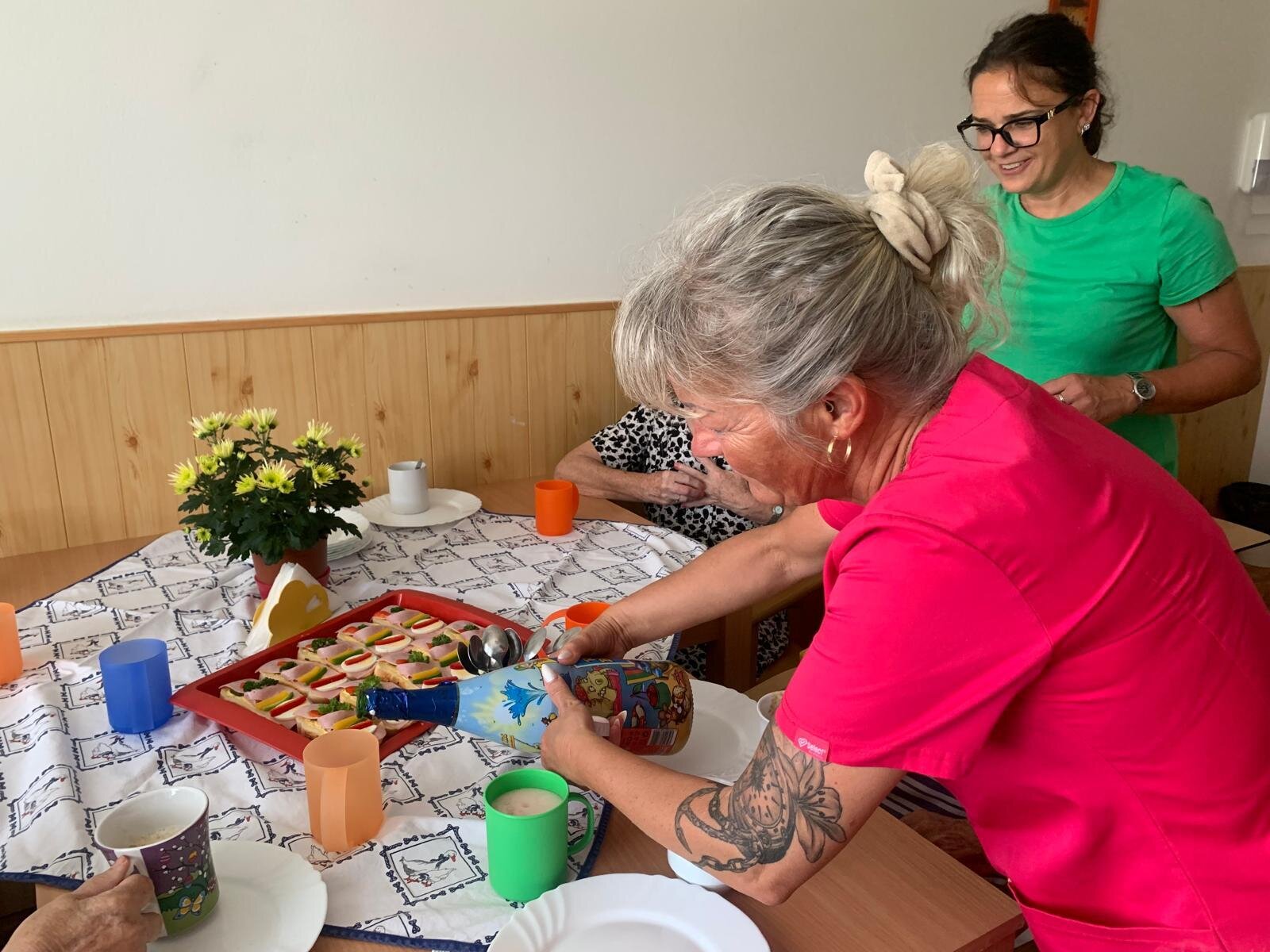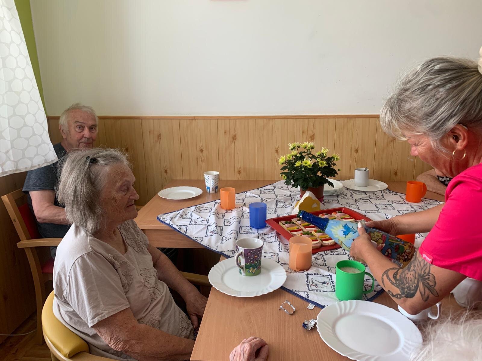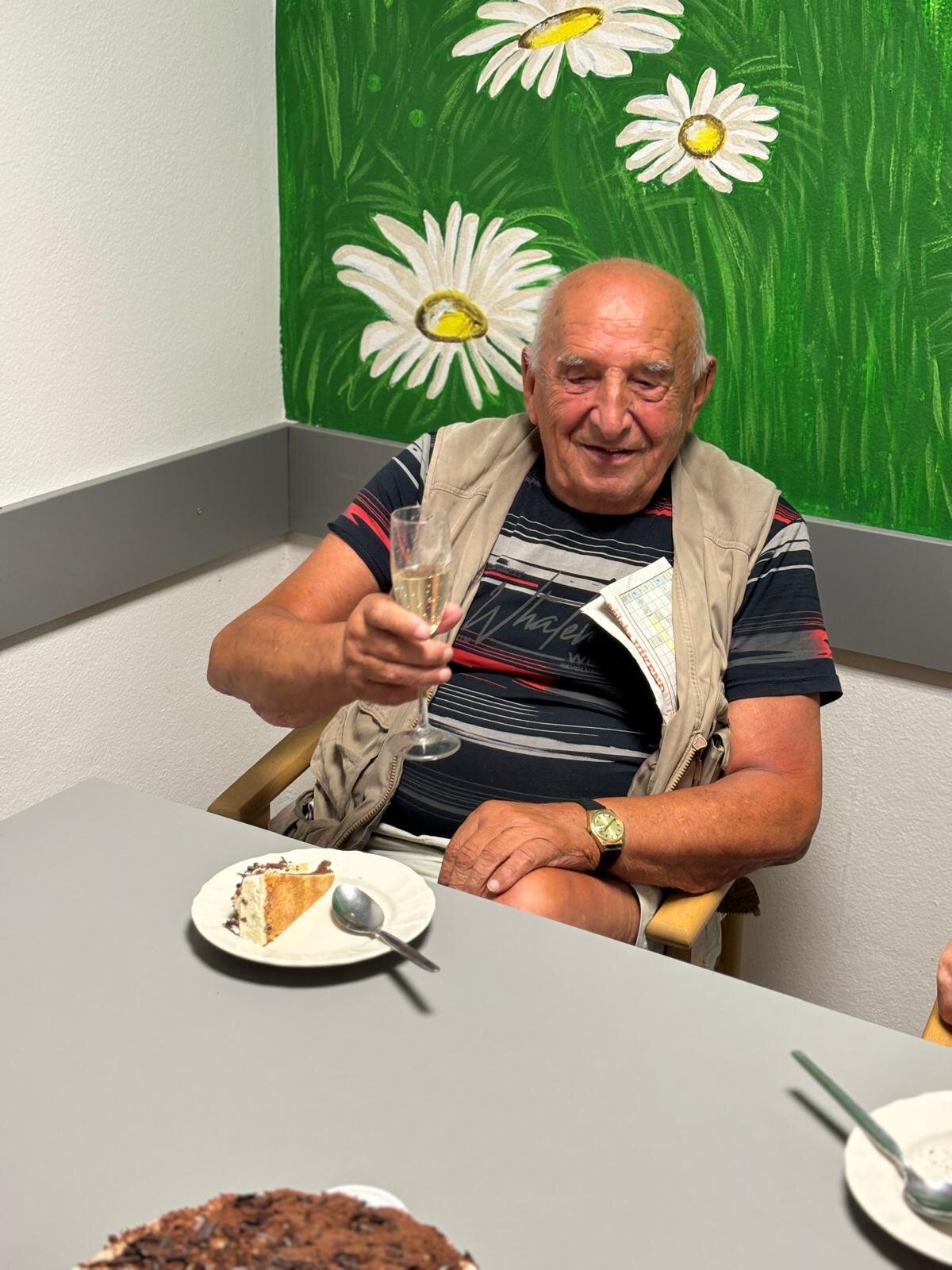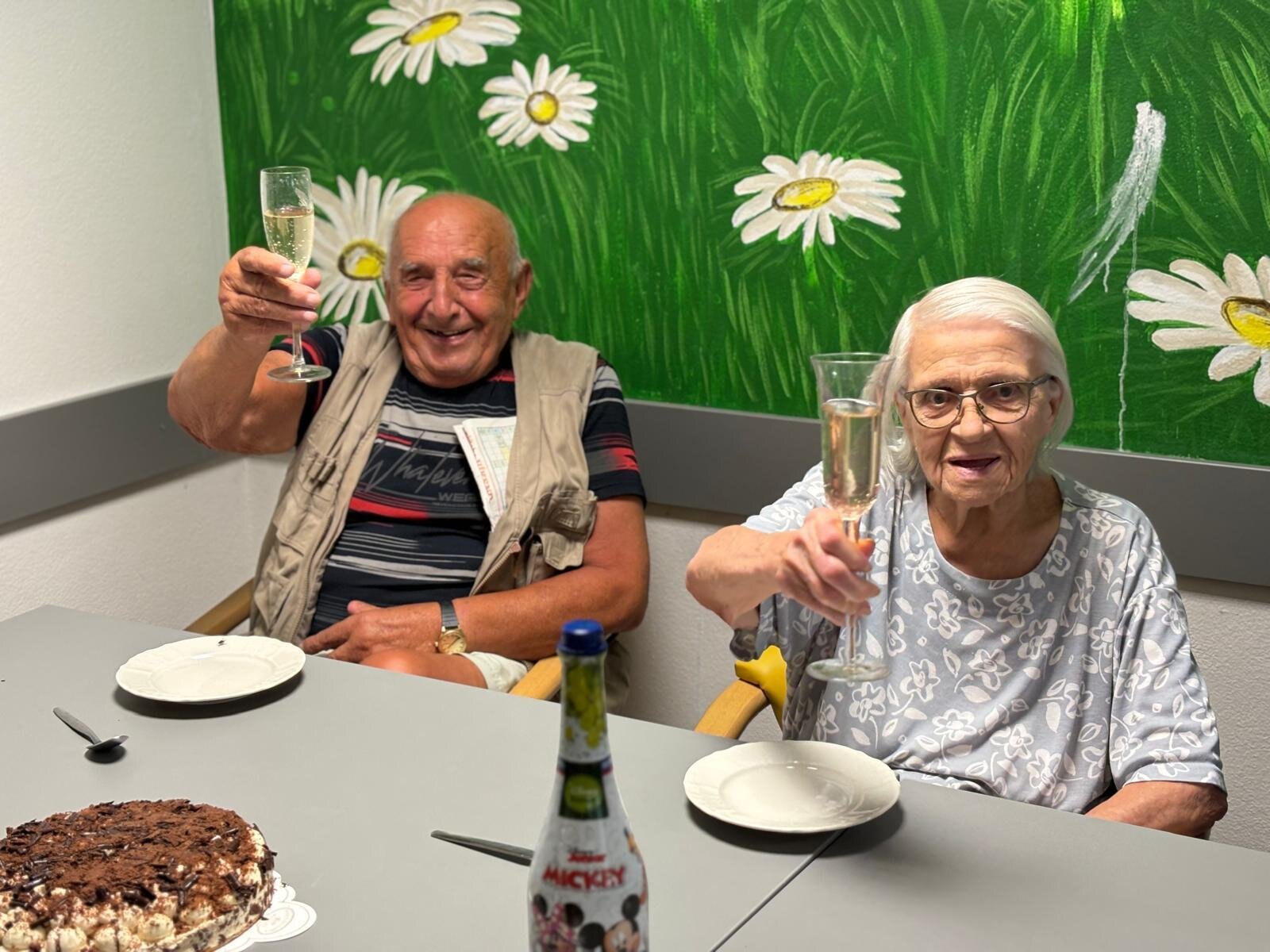 Červencové oslavy jsme si zorganizovali kvůli velkému horku zase zvlášť. Ale na úsměvu nám to stejně neubíralo. Společně jsme si přiťukli na zdraví oslavenců a abychom se tu opět za rok ve zdraví sešli.