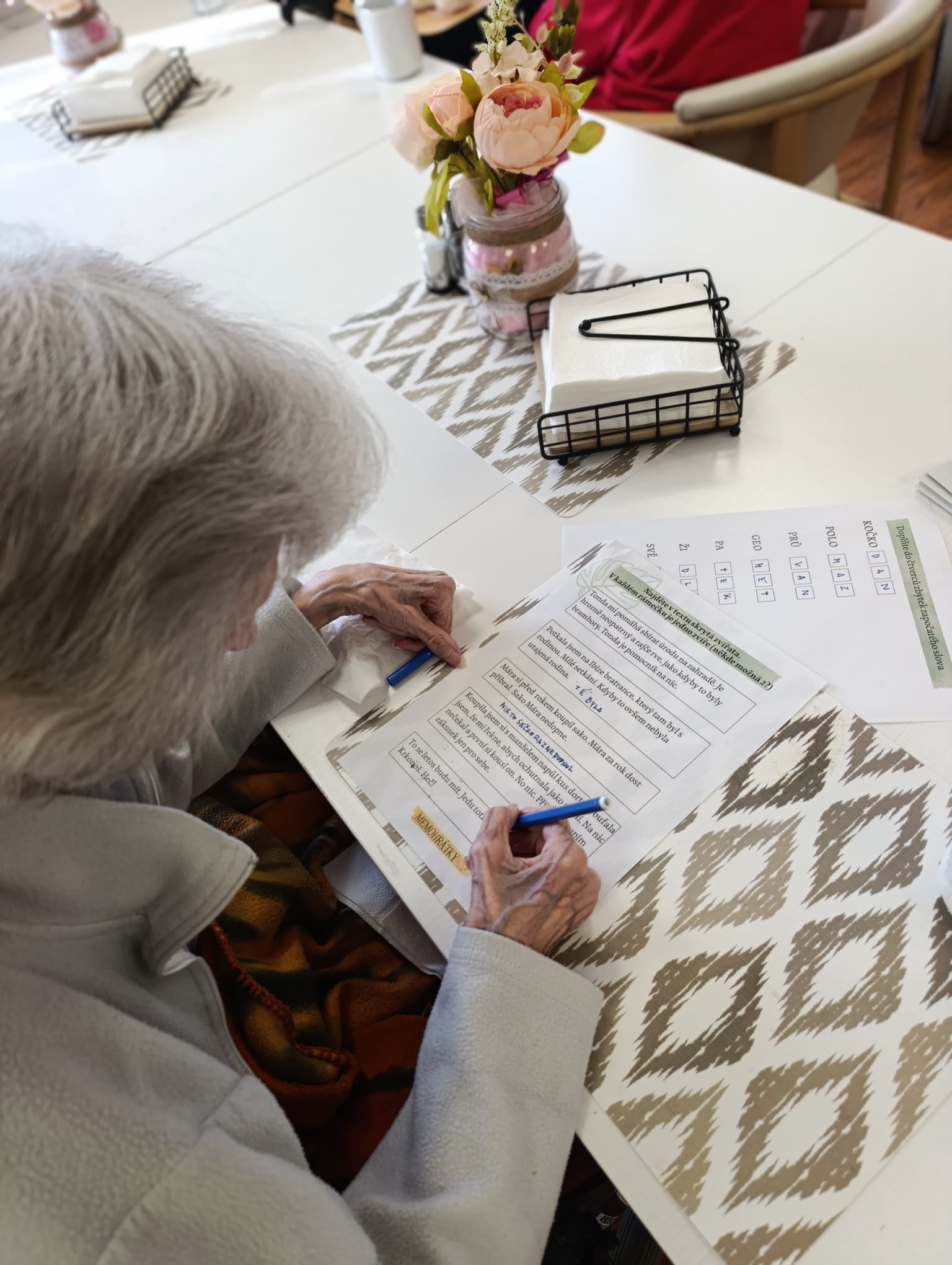 Když máme volný čas, věnujeme se našim oblíbeným činnostem 😊 - aktivizaci se zvířaty, pletení, kvízům a procházkám. 🌞🌼