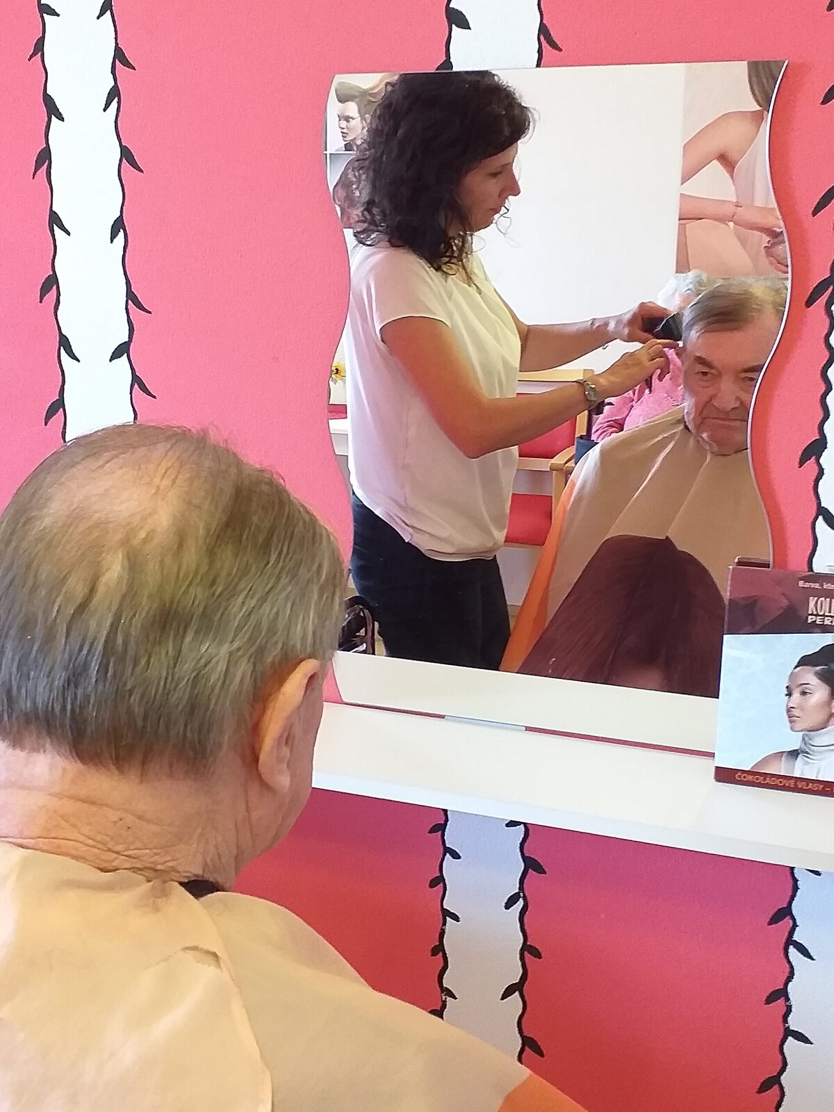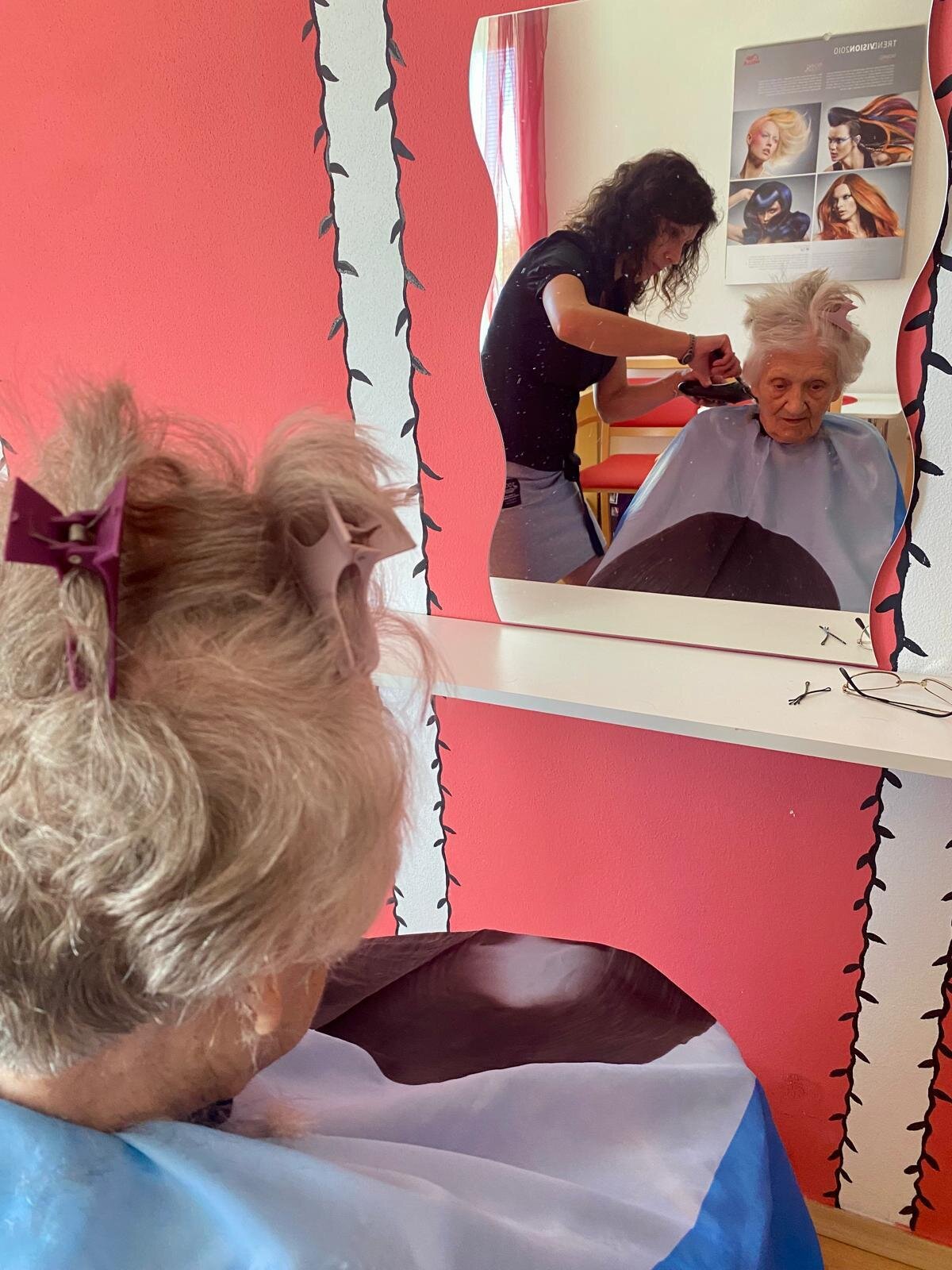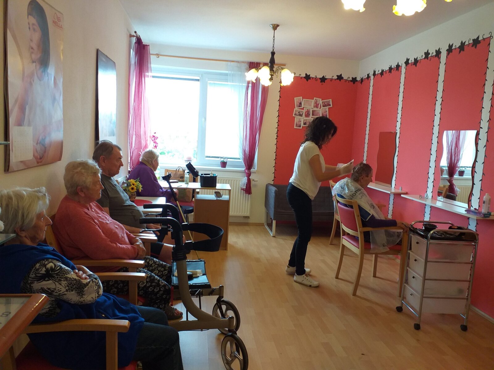 Je nás tady 170, takže se má naše kadeřnice vždy o koho postarat. Většinou se jedná o stříhání a příjemné popovídání, ale občas dojde i na barvení vlasů. Je to podle toho, co si přejeme. Hlavní je, že jde o příjemně strávený čas.