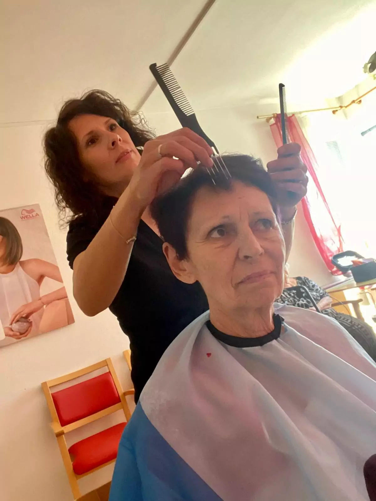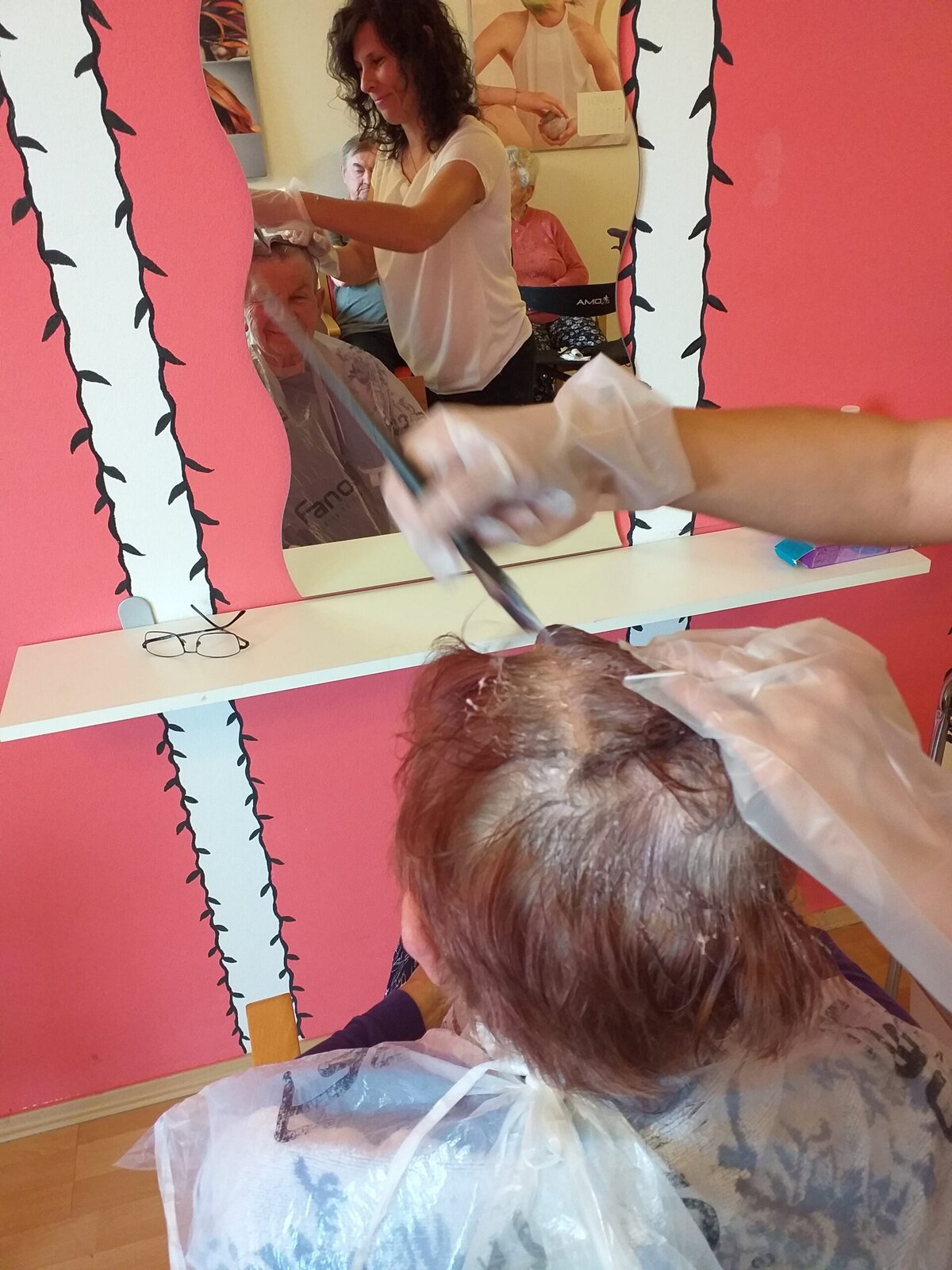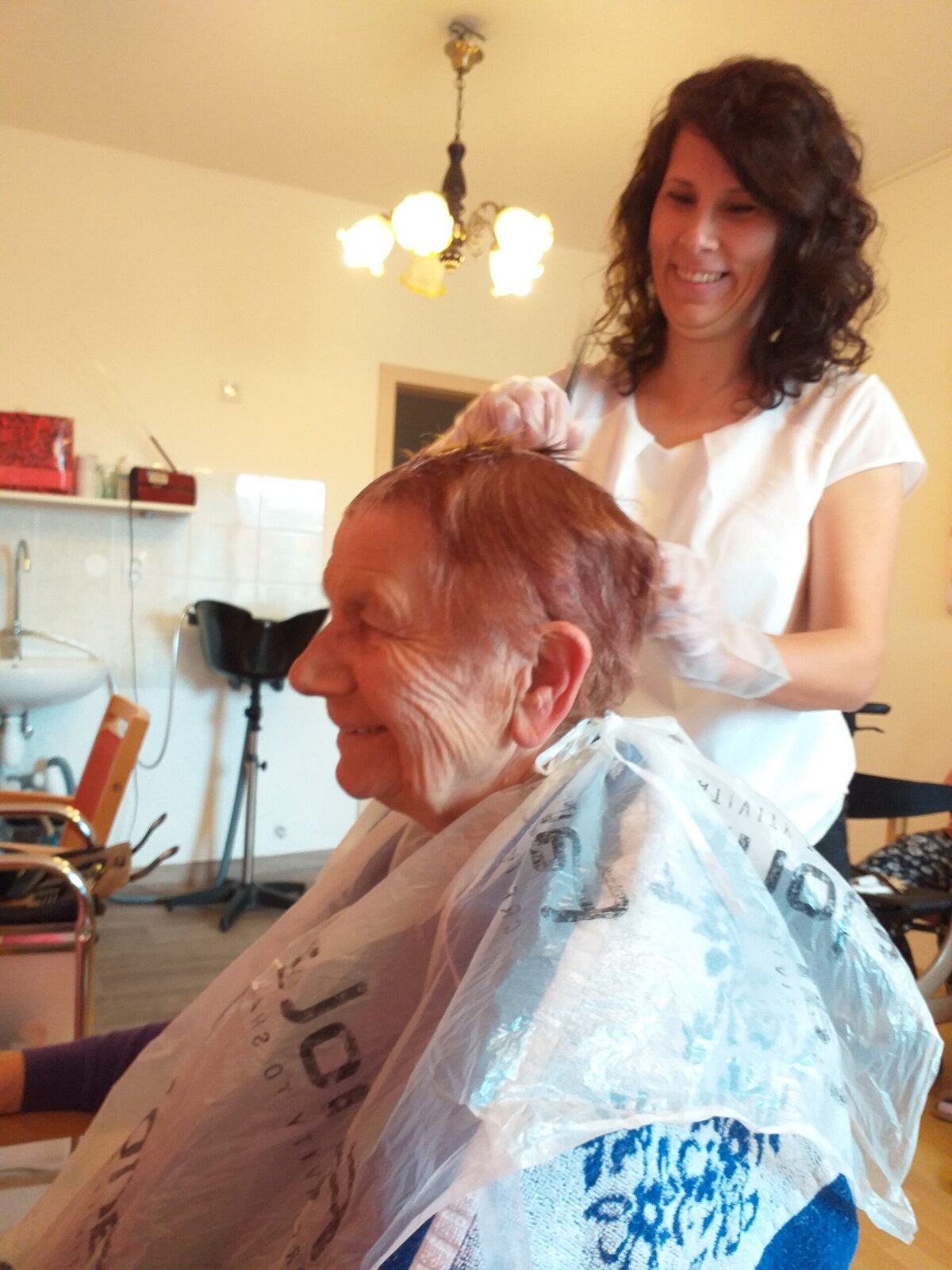 Je nás tady 170, takže se má naše kadeřnice vždy o koho postarat. Většinou se jedná o stříhání a příjemné popovídání, ale občas dojde i na barvení vlasů. Je to podle toho, co si přejeme. Hlavní je, že jde o příjemně strávený čas.