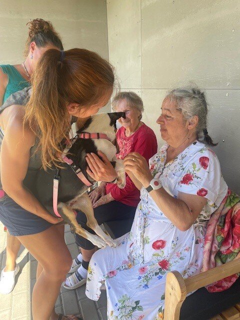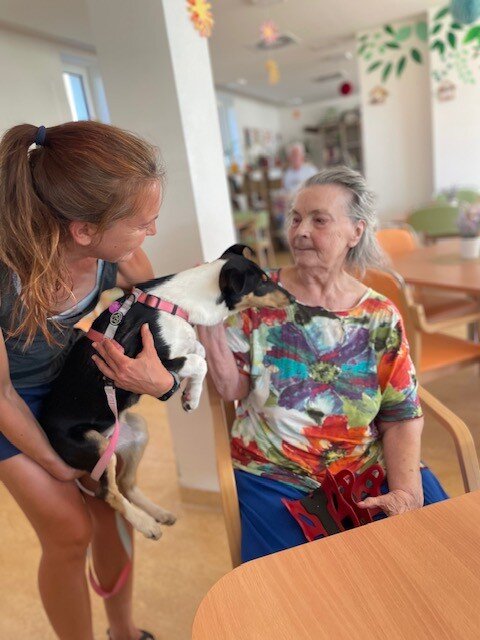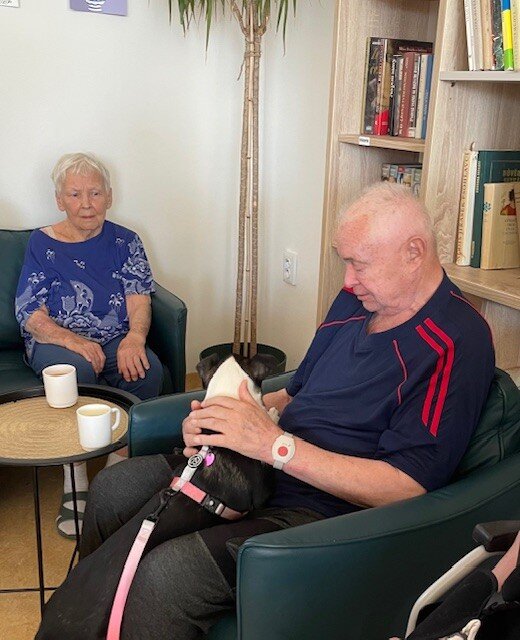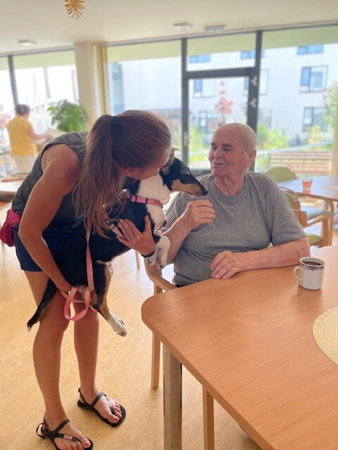 Za našimi klienty do Senevida Boskovice opět zavítaly canisterapeutky se svými čtyřnohými kamarády pejsky Tazy, Ryjou a Cami. Klienti si mohli pejsky pohladit, pomazlit se s nimi a dát jim pamlsek. Ti, kteří nemohli přijít za pejsky do společenské místnosti, se z návštěvy potěšili přímo na svých pokojích, pejsci za nimi ochotně zašli a svým přátelským chováním jim zpříjemnili den. 🤗