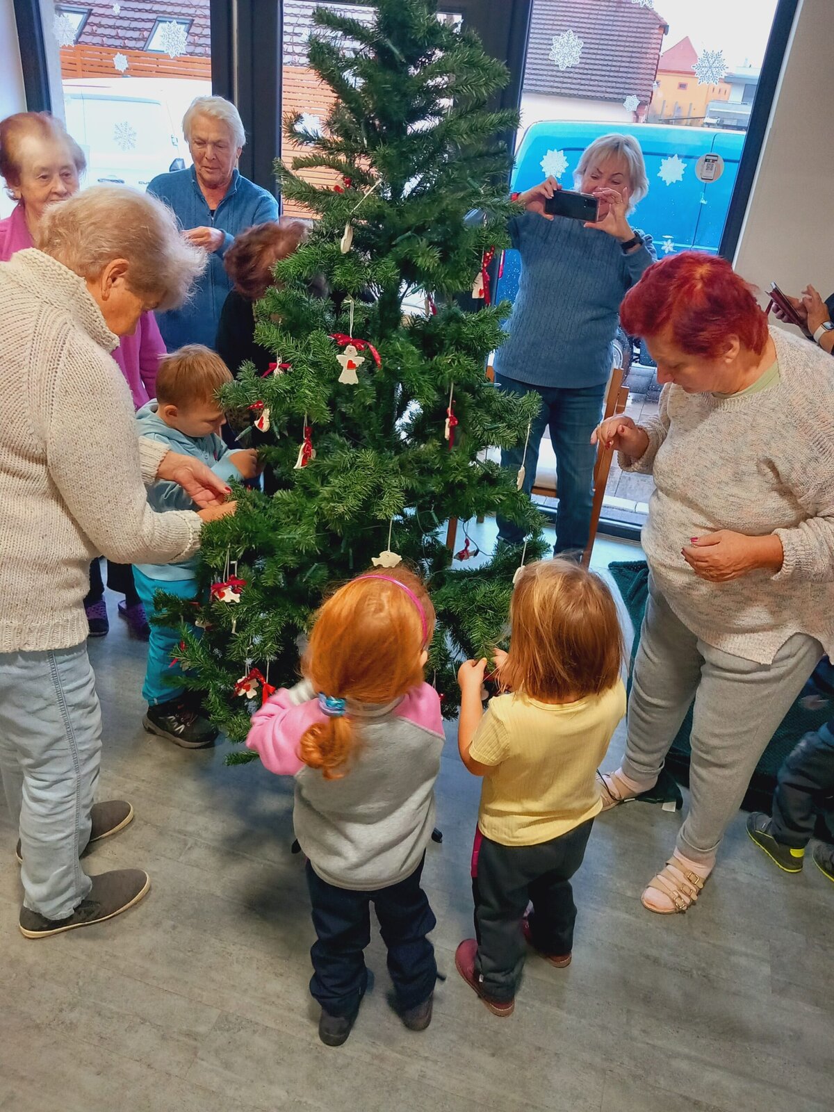 V Senevida Pitkovice nás navštívily děti z MŠ Křeslice. Byla to poslední návštěva tohoto roku. Zazpívali jsme si vánoční koledy, děti nám zarecitovaly básničky, společně jsme ozdobili vánoční stromek a vyměnili si drobné dárky. Na zdobení jsme použili bílé keramické ozdoby s červeným srdcem, vyráběné dětmi a klienty v minulých týdnech.