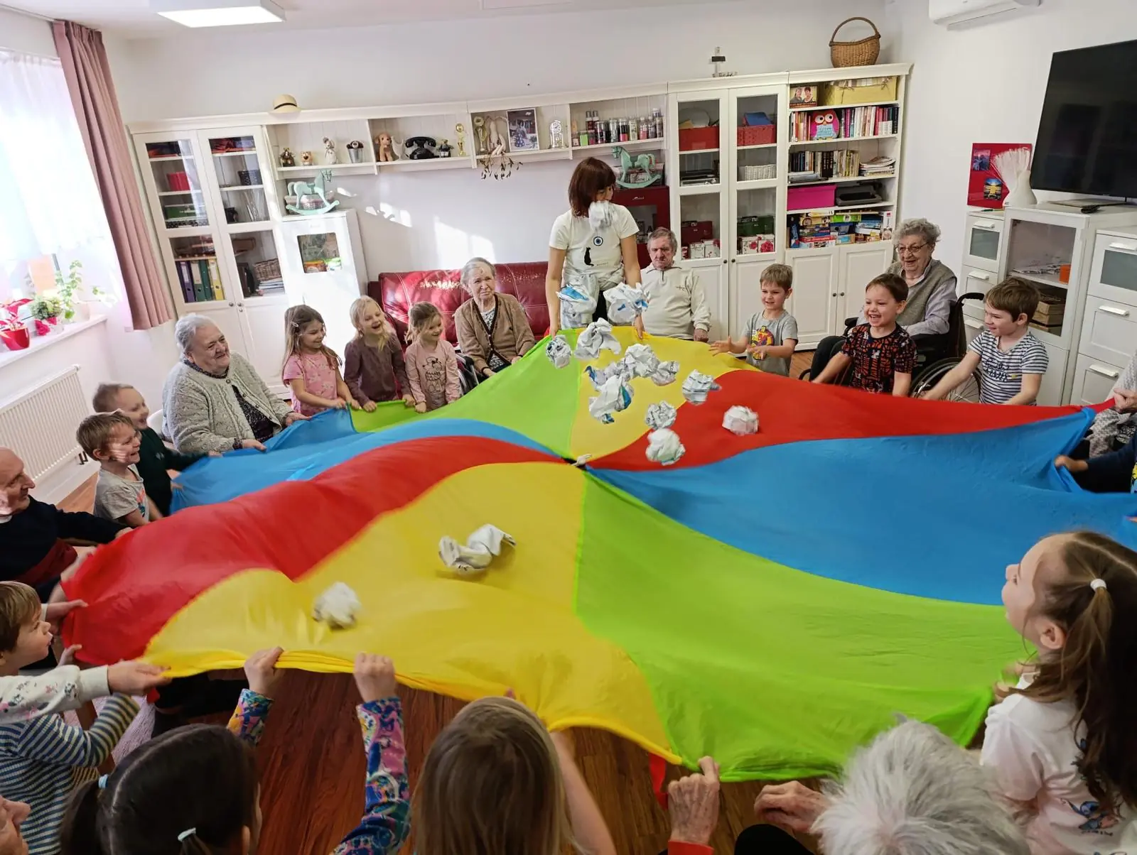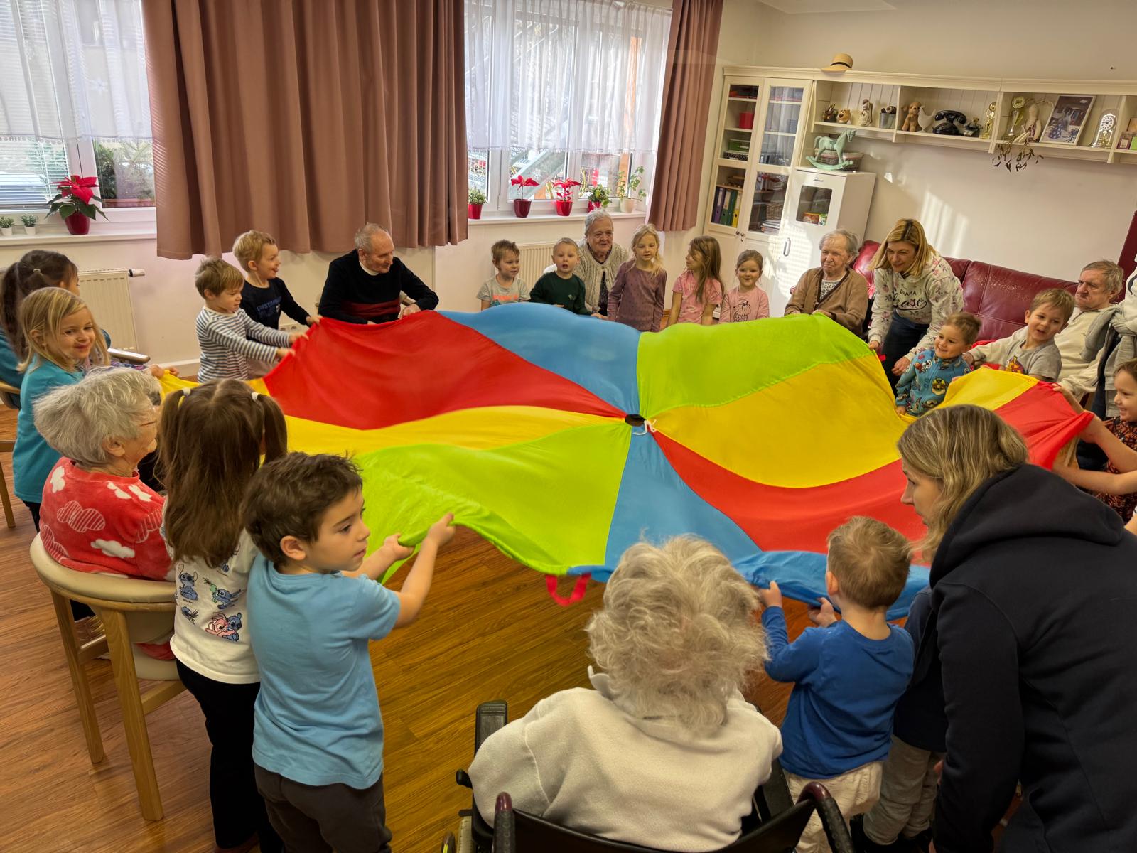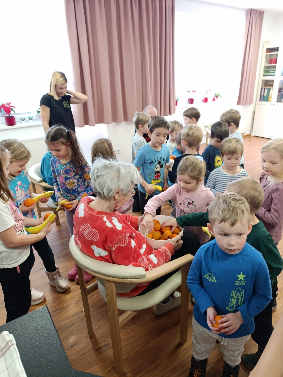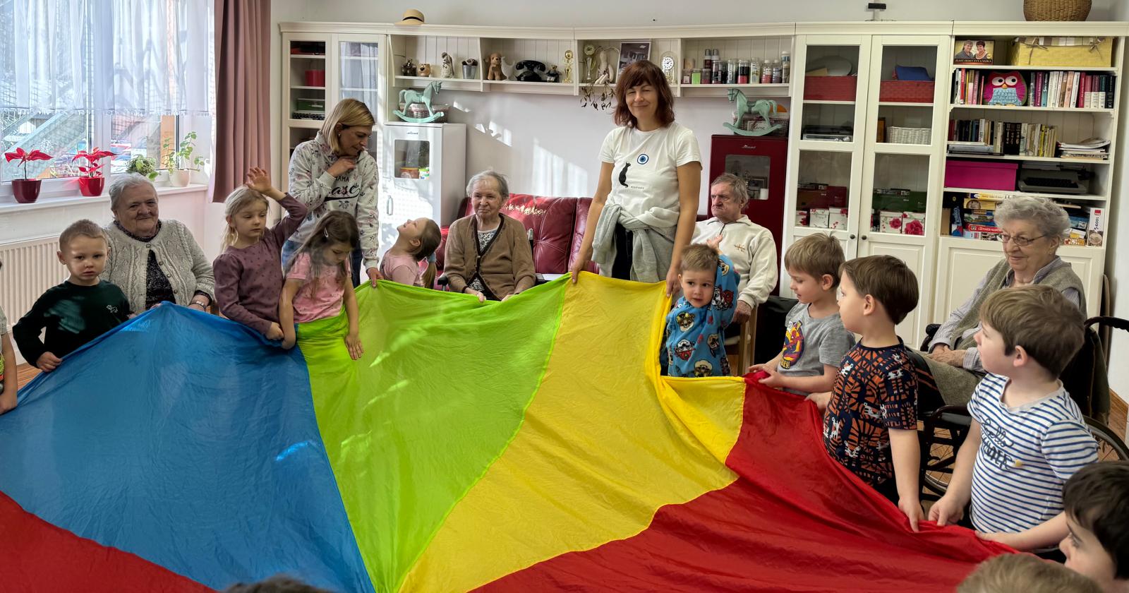V našem domově tento týden proběhlo mezigenerační setkání s dětmi z M.Š. Fazole - Montessori. Setkání se neslo v příjemné a přátelské atmosféře. Děti se s klienty zapojily do společného povídání, her a jednoduchých aktivit, které podporovaly vzájemnou komunikaci, radost a sdílení zkušeností. Klienti reagovali velmi pozitivně, setkání jim přineslo radost, oživení vzpomínek a pocit sounáležitosti. Akce splnila svůj účel - propojit generace a vytvořit prostor pro smysluplné setkání.
