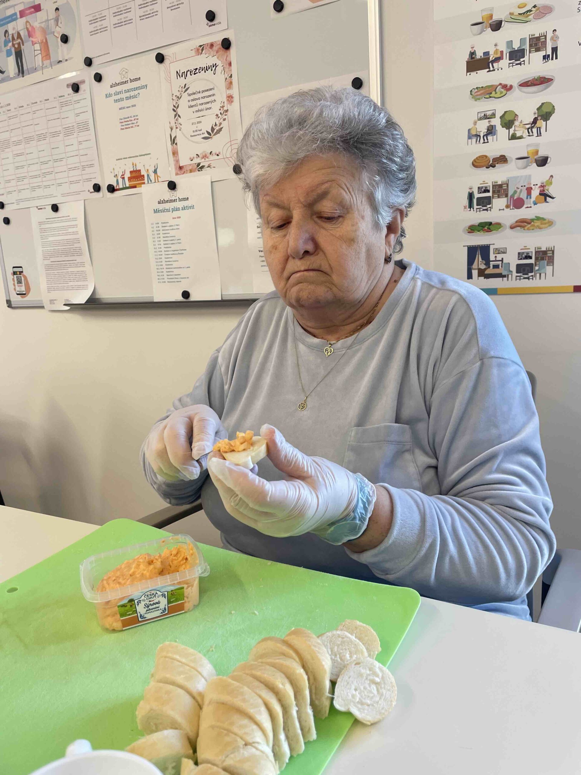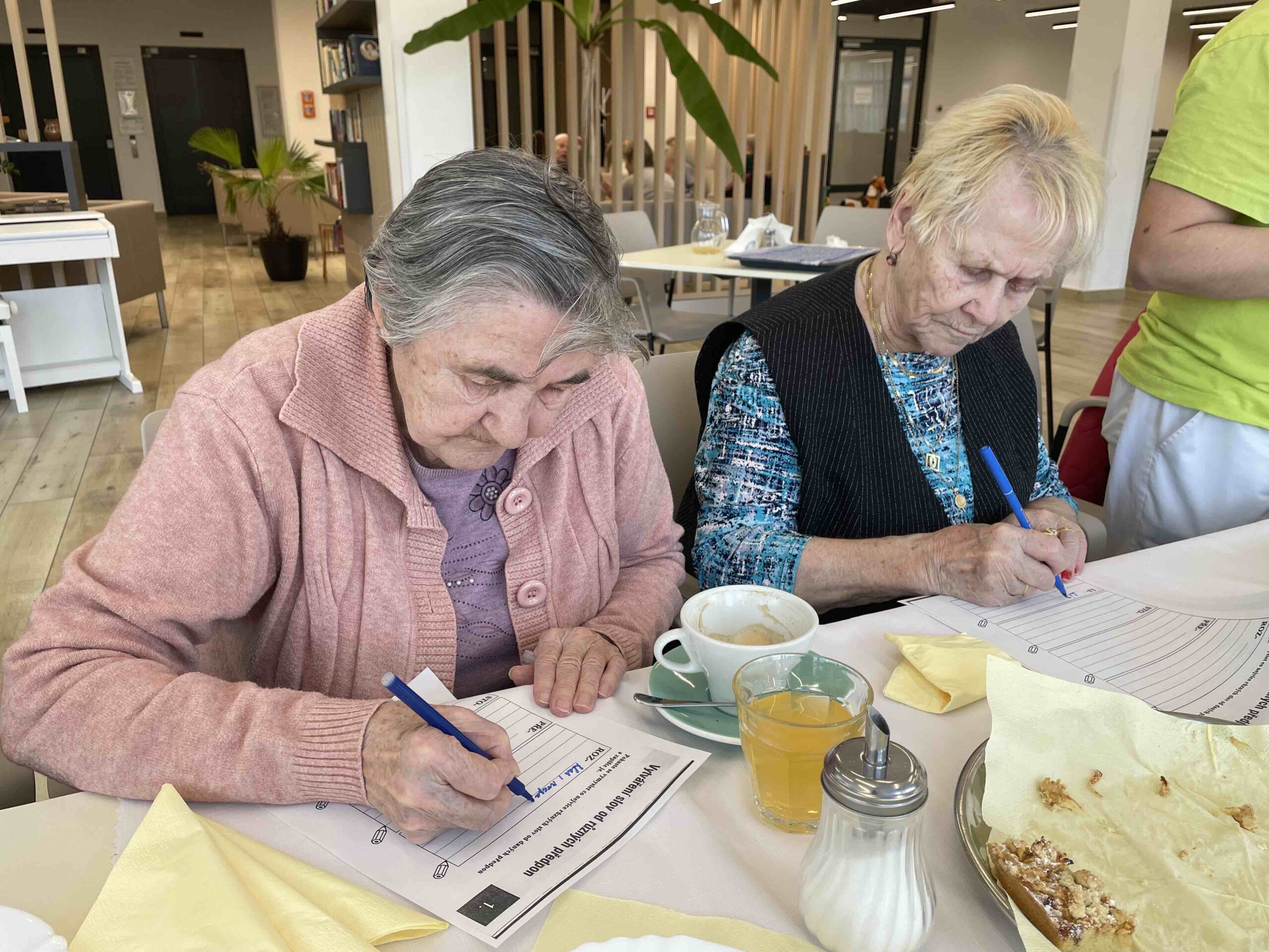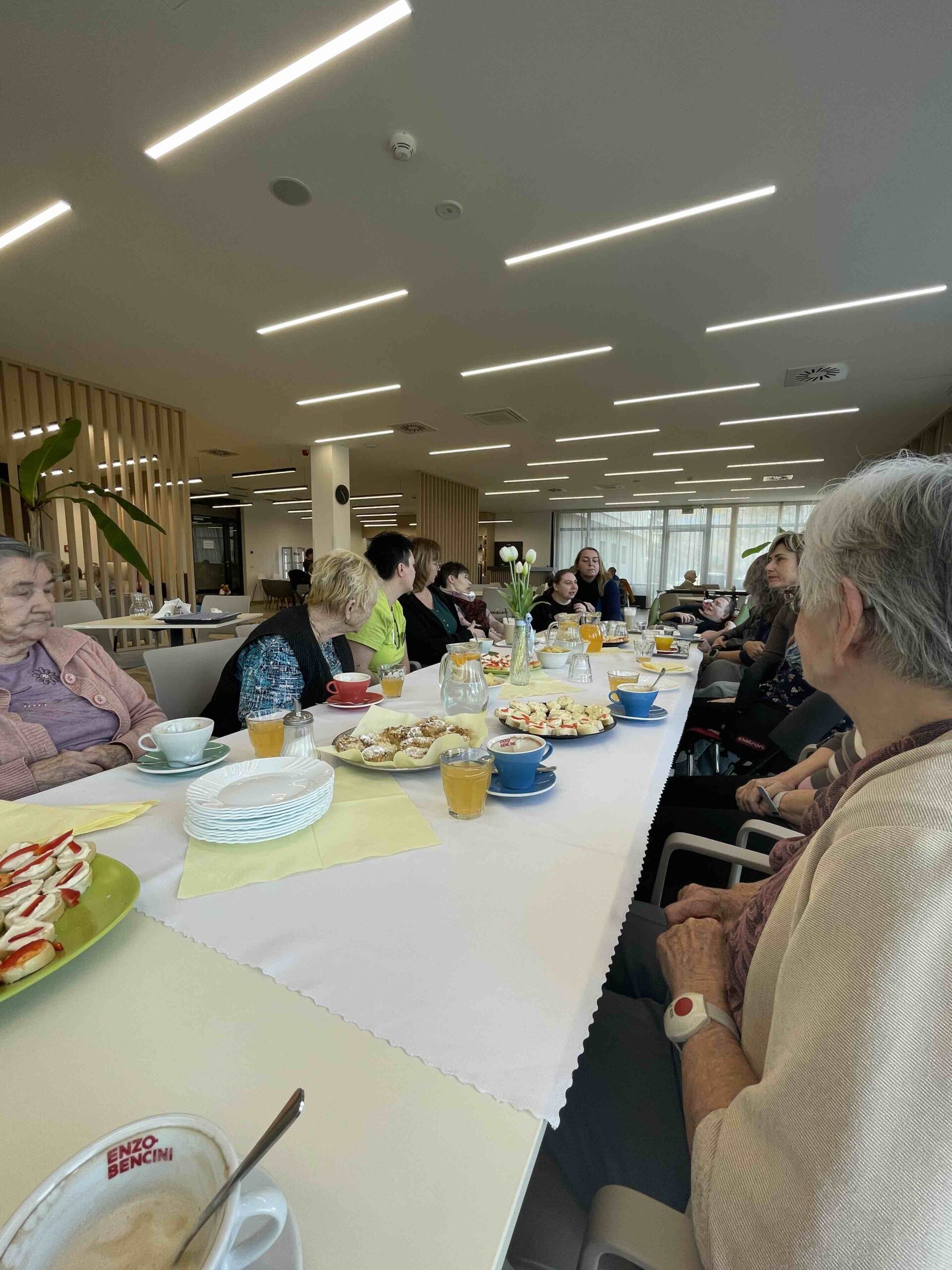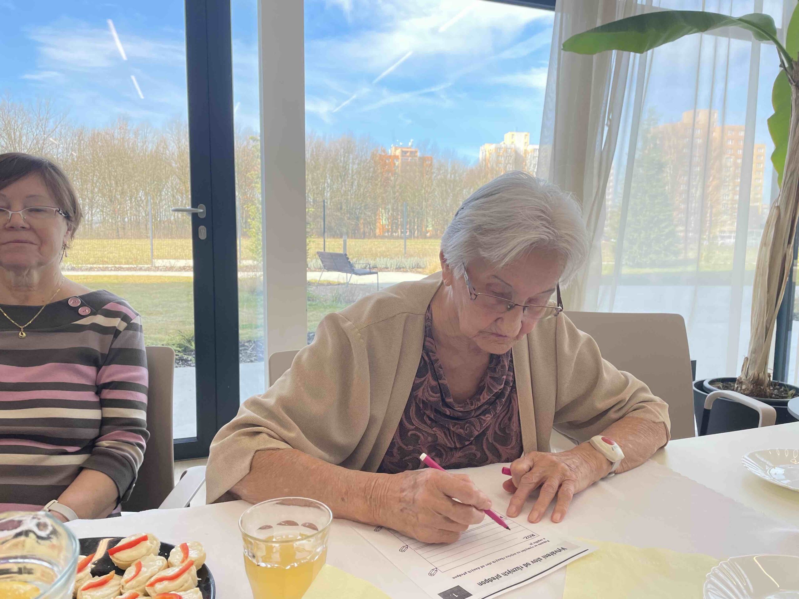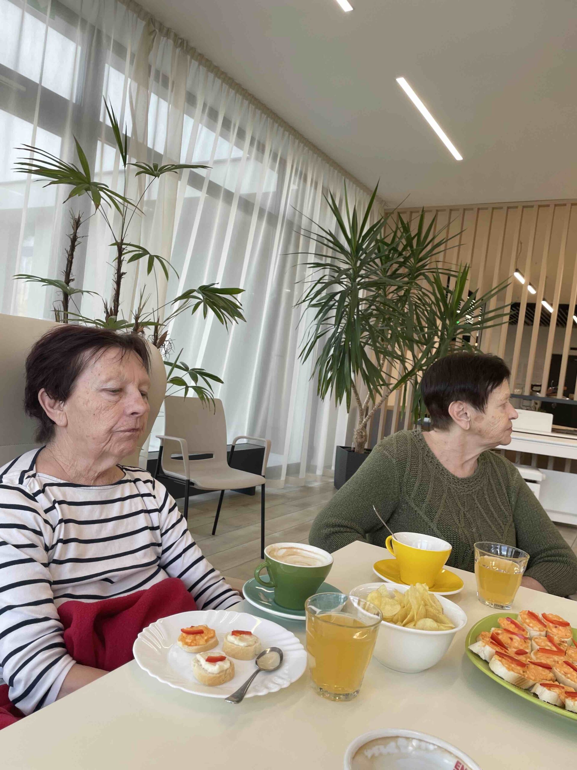 Naši senioři připravili pohoštění v podobě upečeného koláče a obložených jednohubek. Během povídání jsme si vypracovali připravené kvízy. Na závěr proběhla prohlídka našeho zařízení.