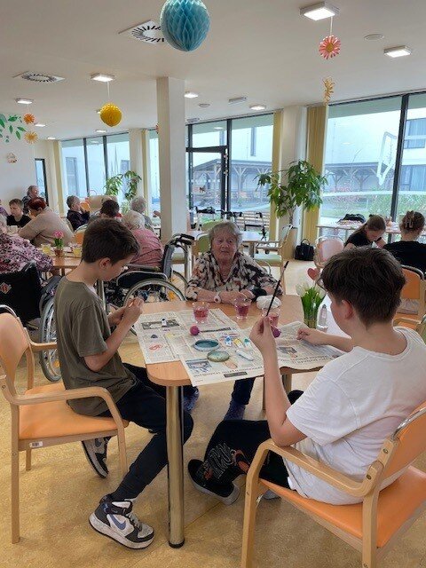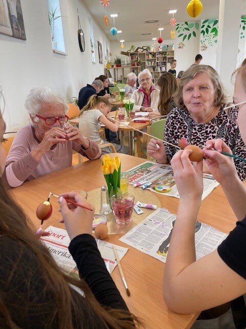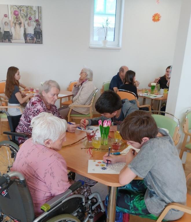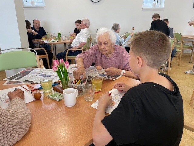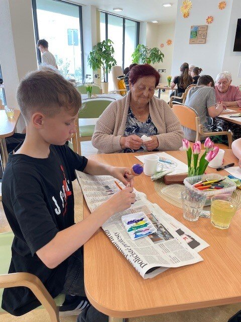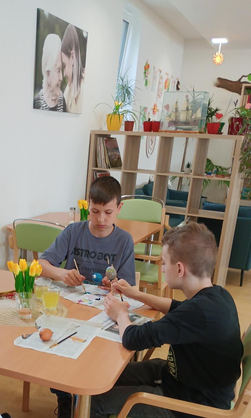 Velikonoční nálada v našem Senevida Boskovice dostala další rozměr díky návštěvě žáků ze Základní školy v Boskovicích. Společně s našimi klienty se pustili do velikonočního tvoření – malovala se vajíčka, pletly pomlázky, malovaly velikonoční obrázky a hlavně se hodně povídalo a smálo. Děti i senioři si během setkání předávali nejen tvořivé nápady, ale i vzpomínky na tyto velikonoční svátky.