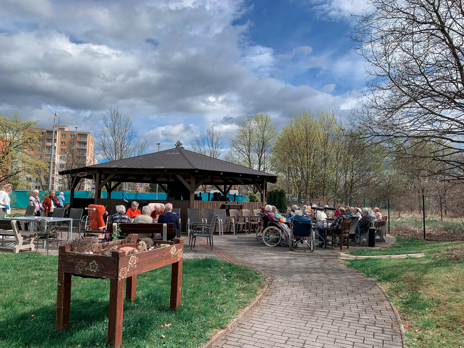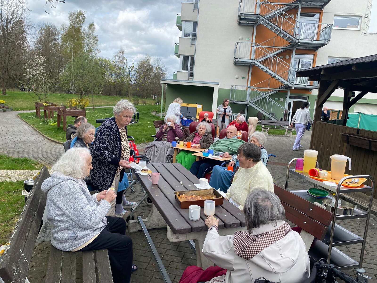 Když máte vlastní zahradu, byl by hřích ji nevyužít. Proto jsme upekli dobroty a vydali se na zahradu. A kdo by si snad myslel, že jsme jen nehnutě seděli, mýlil by se. Kromě popovídání s přáteli z různých pater, jsme zpívali a také tančili. Udělali jsme si zkrátka pohodový den.