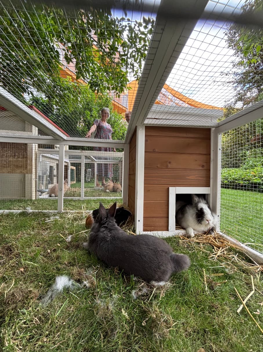 Naše zahrada ožila novým přírůstkem – samička terapeutického králíka nedávno porodila šest roztomilých mláďat. Abychom vám udělali ještě větší radost, připravili jsme pro ně nové venkovní výběhy tak, abyste je mohli pohodlně pozorovat, těšit se z jejich dovádění a užívat si uklidňující pohled na zvířecí život.