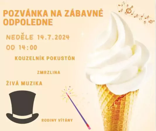 Pozvánka na zábavné odpoledne 14.7.2024 v neděli od 14 hodin....