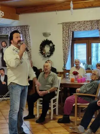 Našim oslavencům přišli zahrát na harmoniku a zazpívat naši oblíbení...