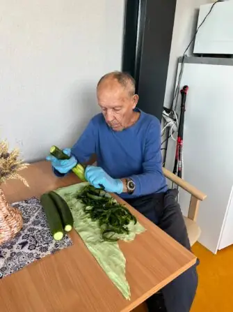 Klienti Senevida Minkovice se s nadšením zapojují do kuchyňských prací....