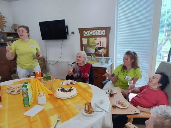 Květnové oslavenkyně se usadily ke společnému stolu a za doprovodu...
