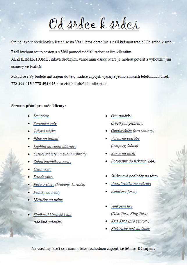 Vánoční tradice v Senevida Jihlava OD SRDCE K SRDCI. 💙