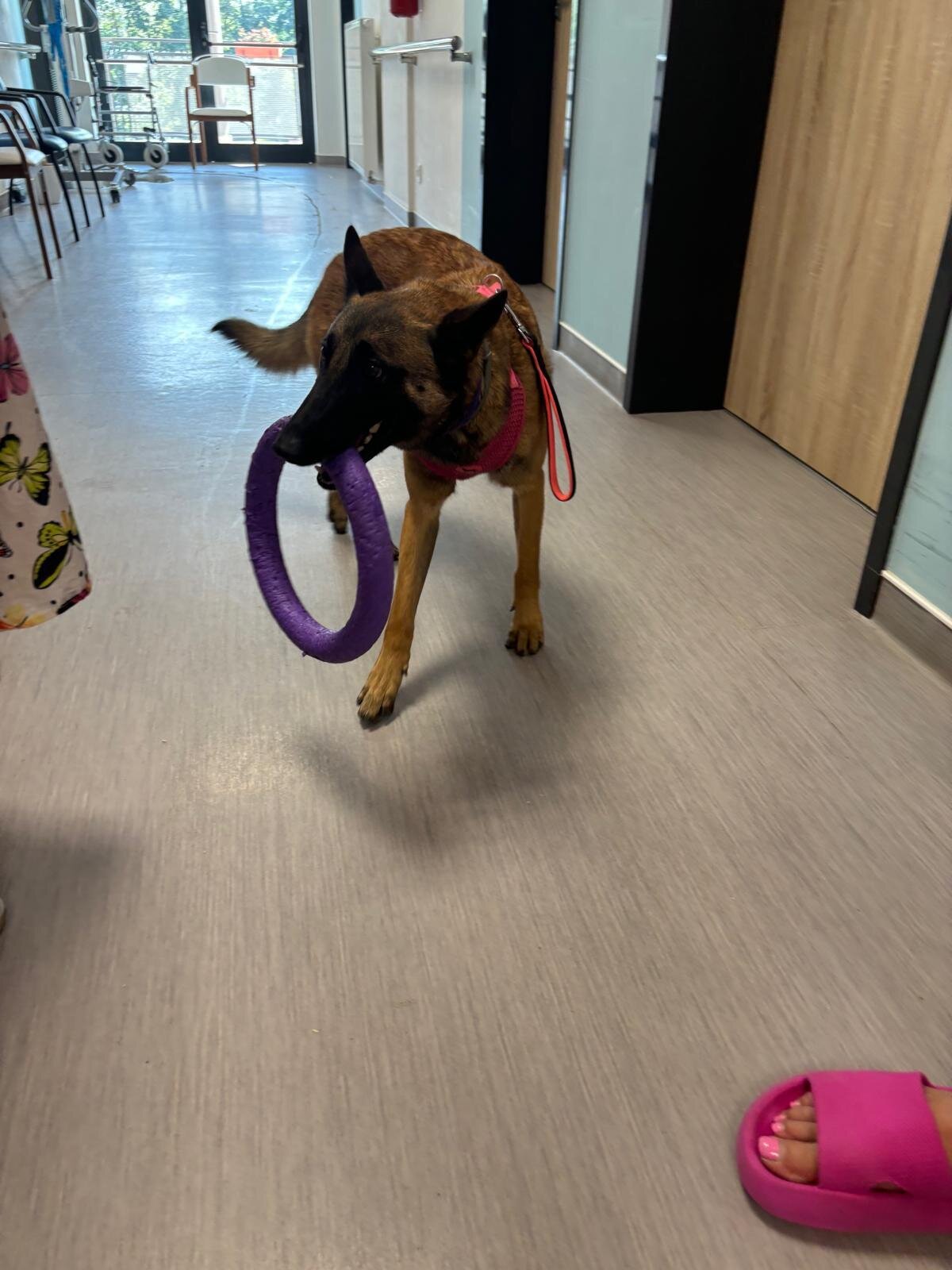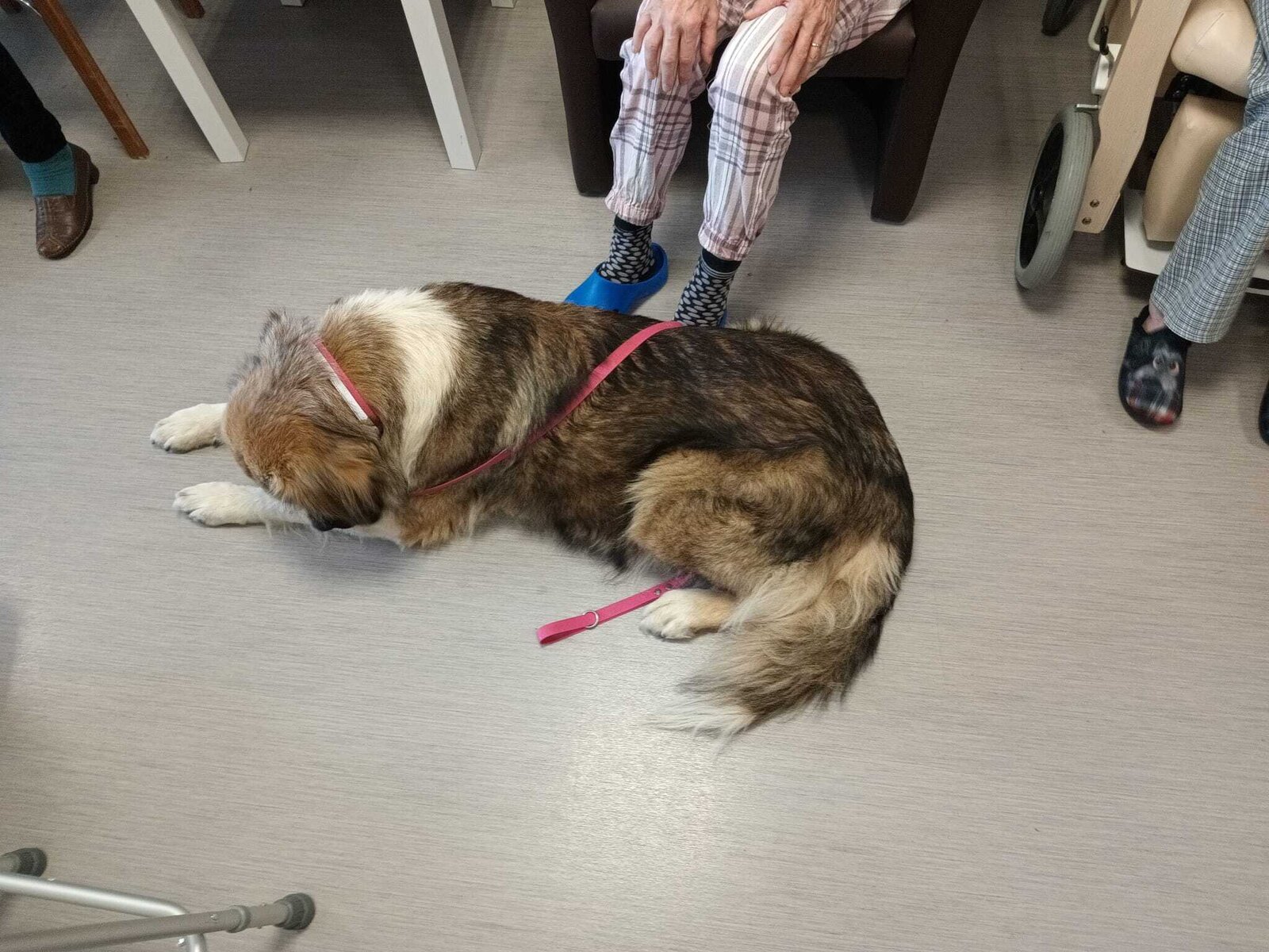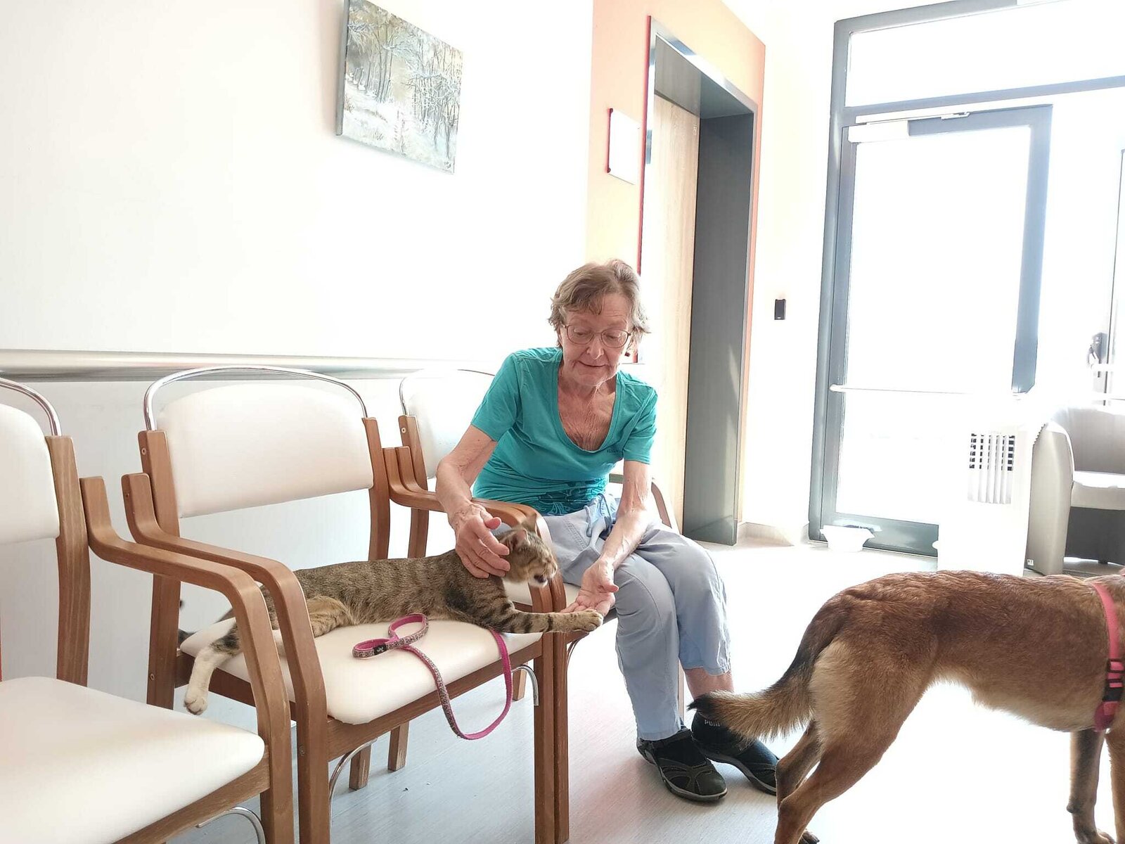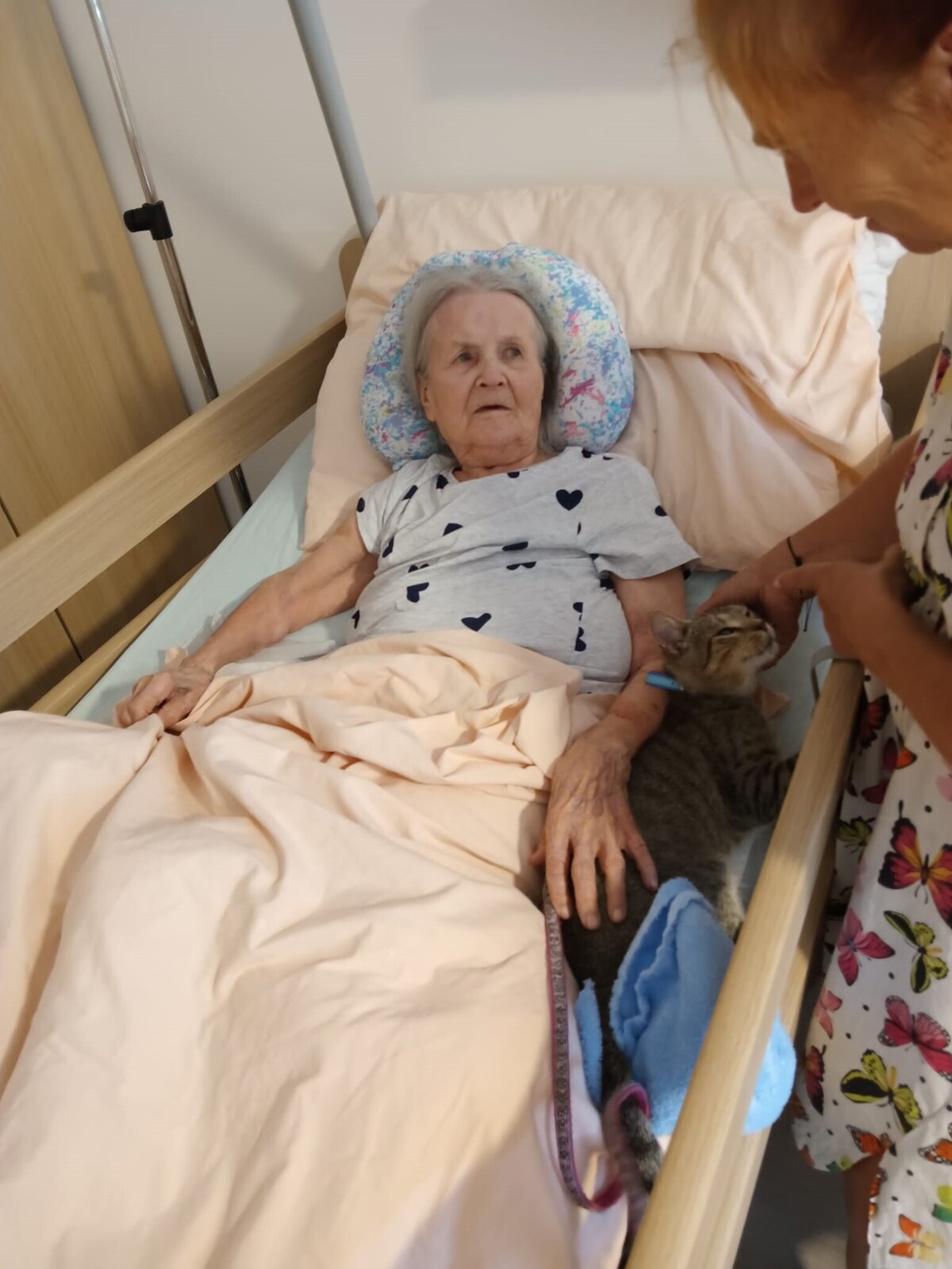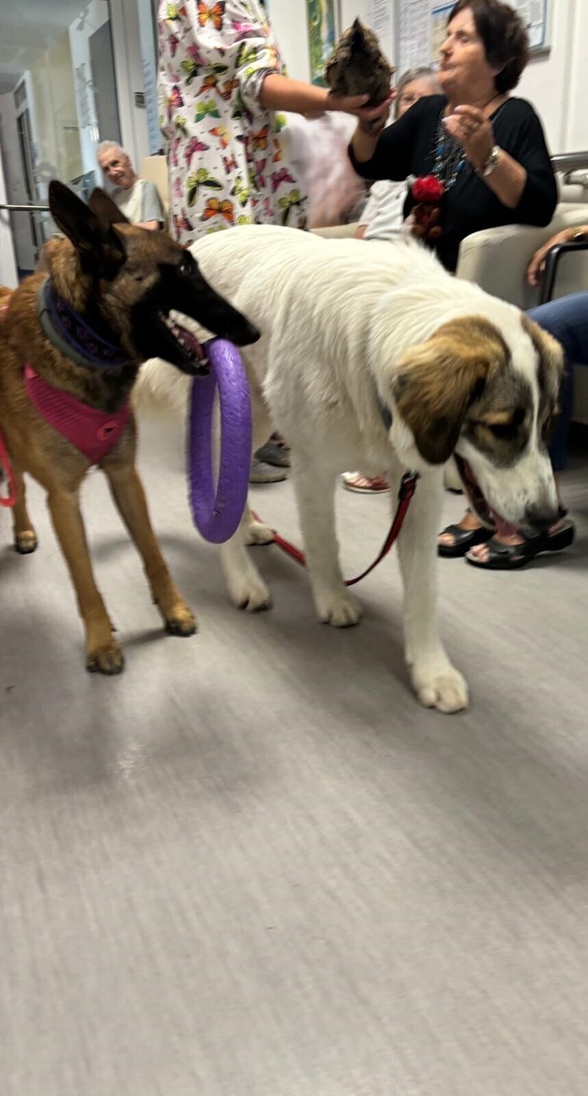 Ve čtvrtek odpoledne nás znovu navštívila zvířata z Boušic s majitelkou Evou. Kvůli vysokým teplotám jsme raději zvolili návštěvu klientů na pokojích. Náš zvířecí tým se skládal ze psů, slepic, kohouta, kocoura a králíka. O zábavu bylo opět postaráno. 😀🩵