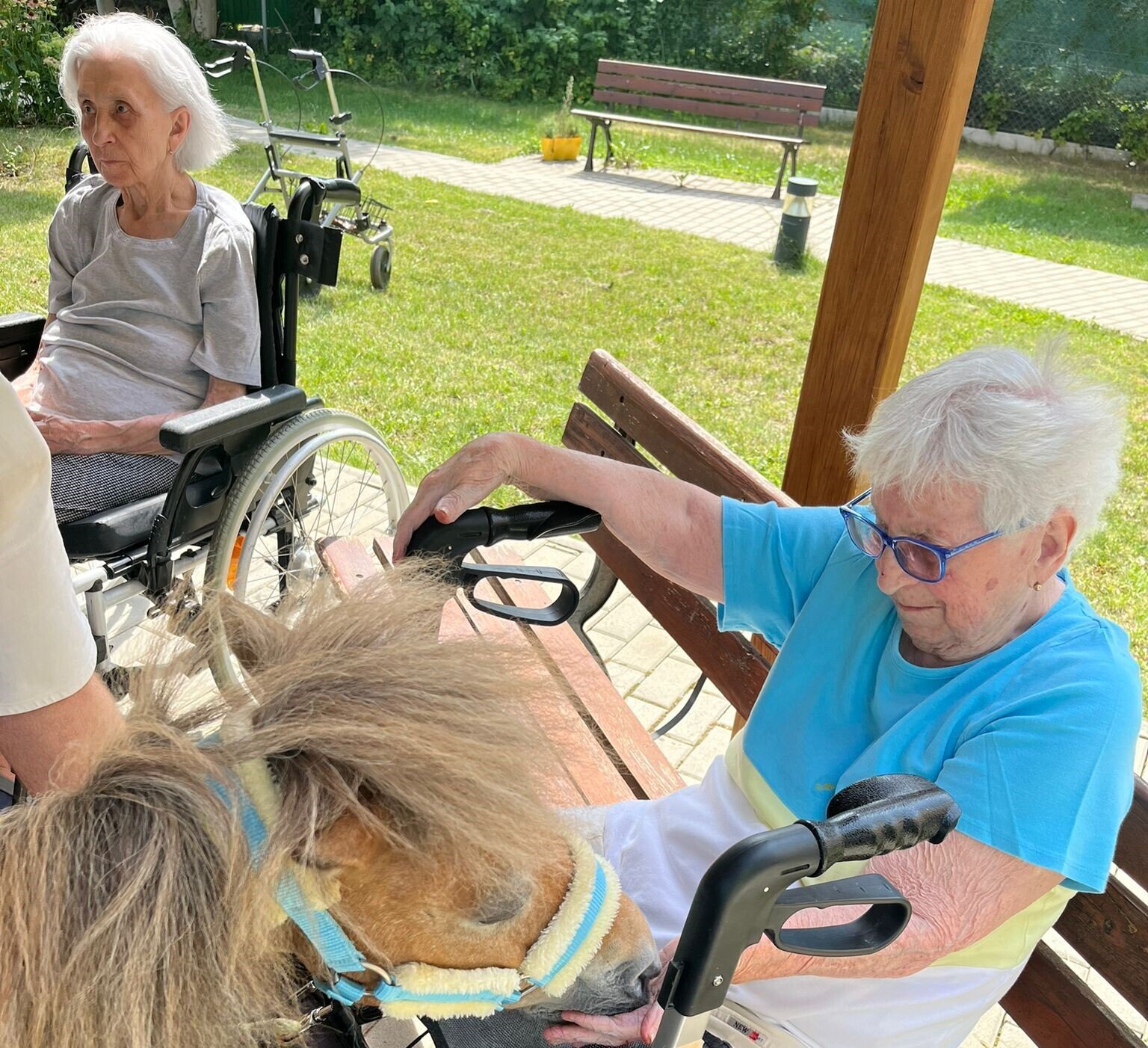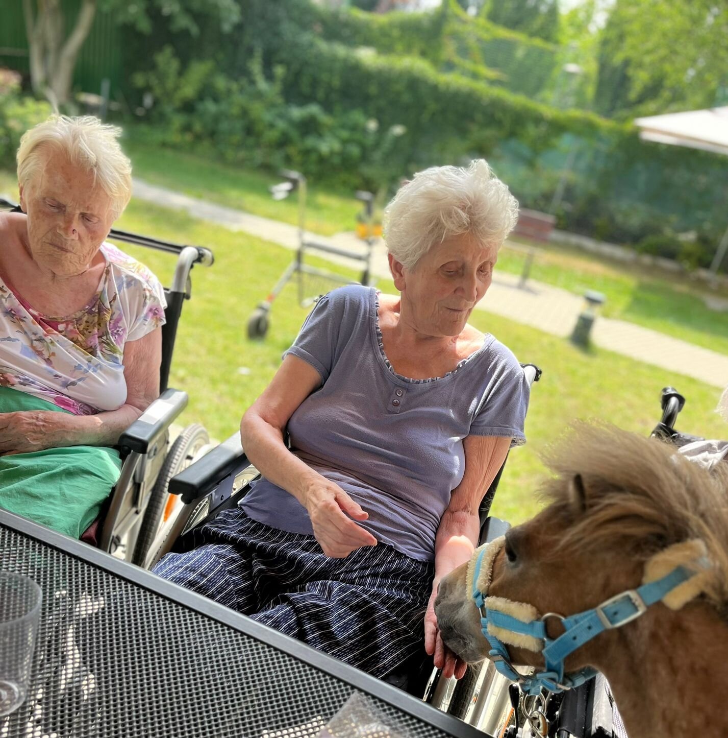 Krásné letní dny v Senevida Modřany trávíme nejčastěji na zahrádce. Společnost nám přijela dělat zvířata z Boušic s majitelkou Evou. O zábavu bylo opět postaráno, koník Frodo zaměstnal ne jednoho klienta a snědl, na co přišel, ale ani kozy Áňa a Máňa nezůstaly pozadu. Fena Kleopatra chvilkami vychutnávala odpolední pohodu na trávníku.