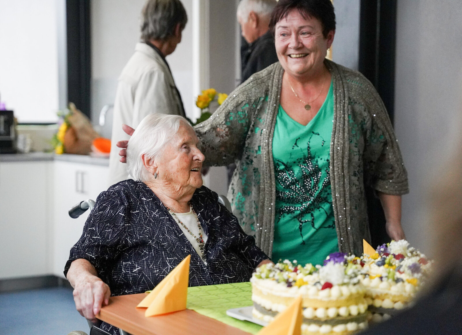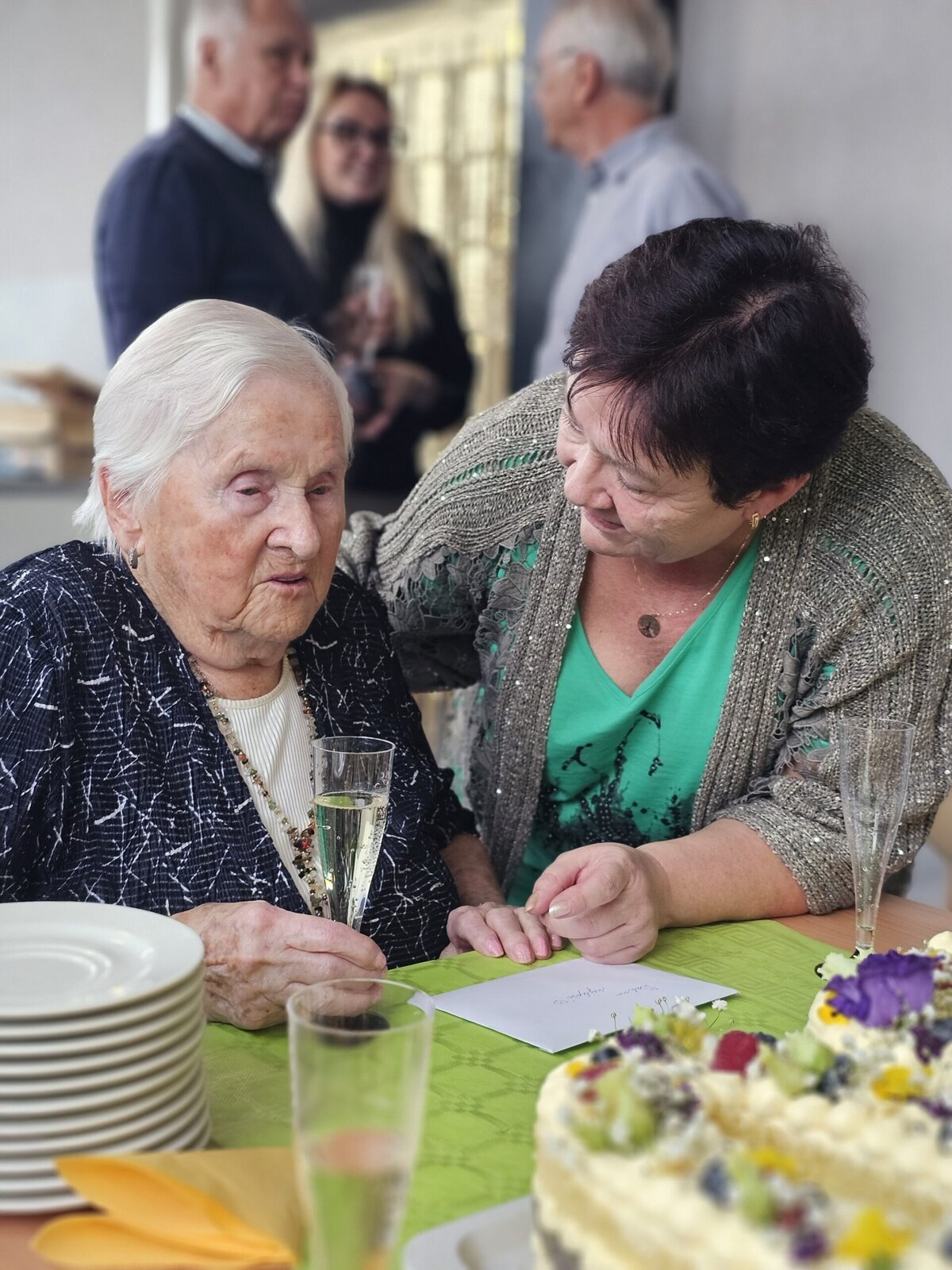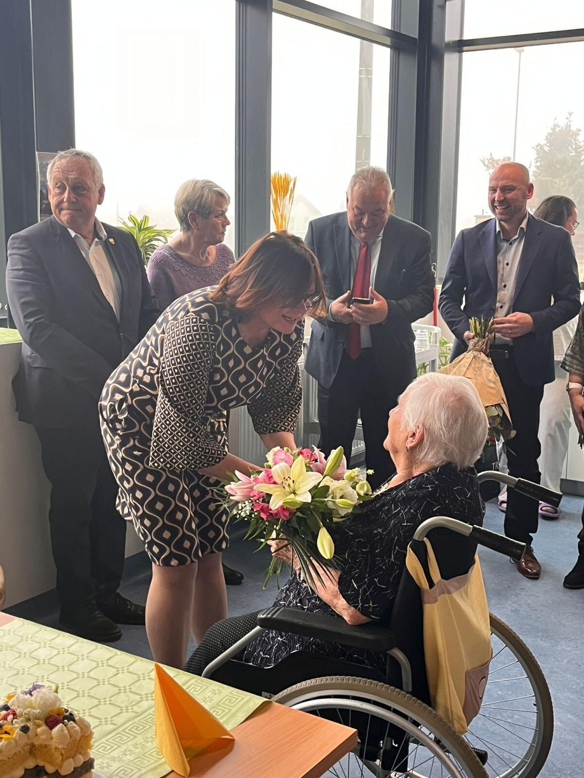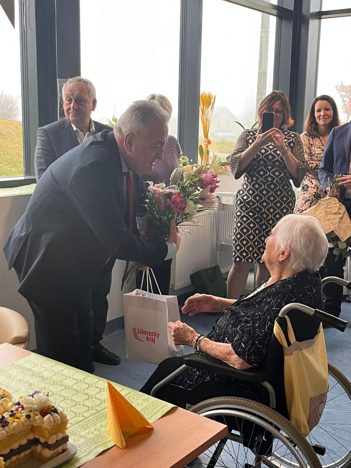 K významnému životnímu jubileu přišel paní Věře pogratulovat primátor Liberce pan Jaroslav Zámečník, náměstek hejtmana pro resort sociálních věcí pan Petr Tulpa a nechyběl ani ředitel divize Senevida pan Ivan Černovský. Nakonec vše dopadlo tak, jak jsme si všichni přáli a paní Věra byla z krásné výzdoby, dárečků, gratulantů a skvělé živé kapely, nadšená. Tímto ji znovu přejeme mnoho dalších spokojených let.