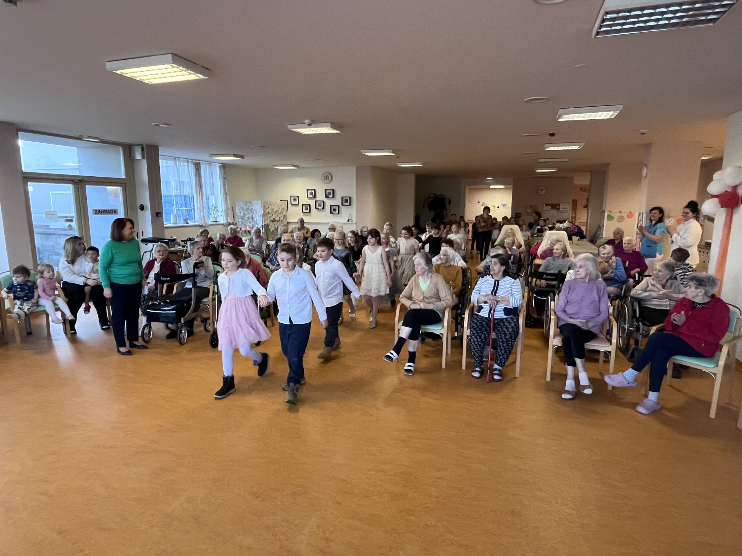 V pátek 6. března k nám zavítaly děti ze ZŠ Terezín, které našim klientkám zpříjemnily dopoledne svým hudebně-tanečním vystoupením. Jejich písničky rozzářily úsměvy na tvářích všech přítomných a vytvořily krásnou slavnostní atmosféru.
