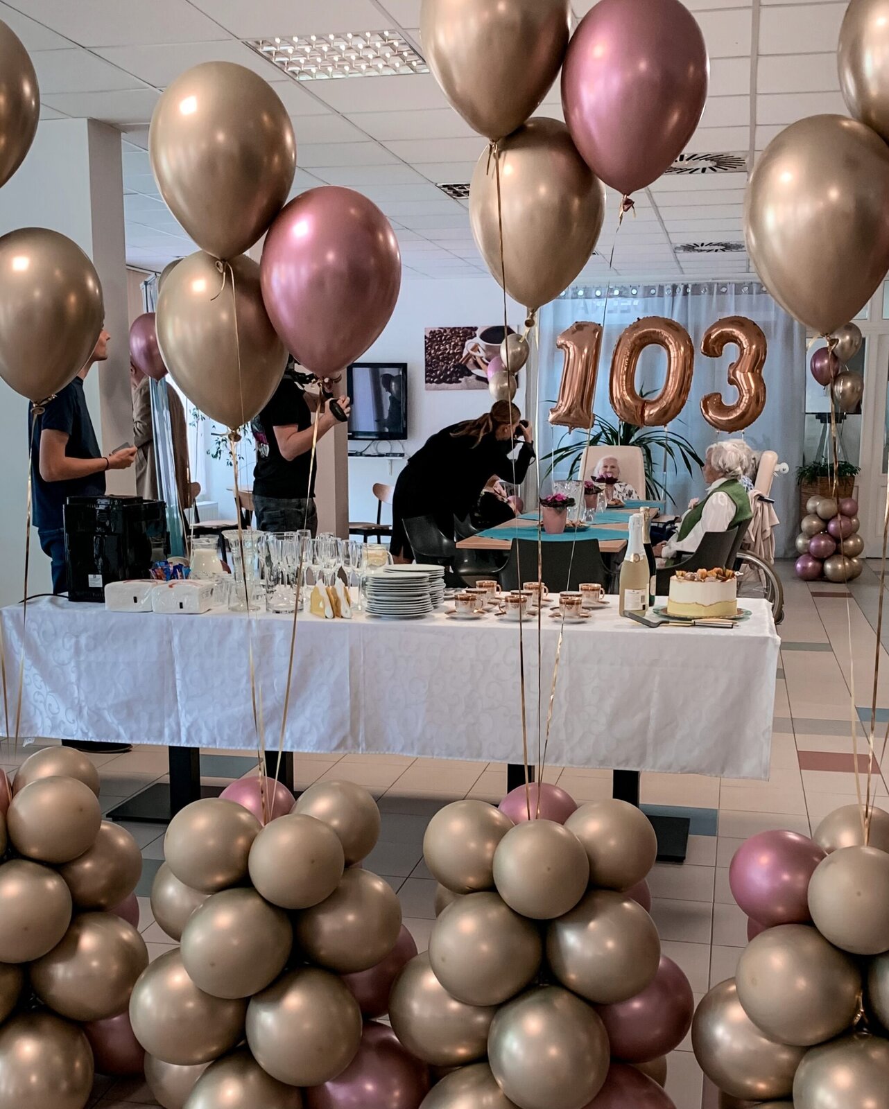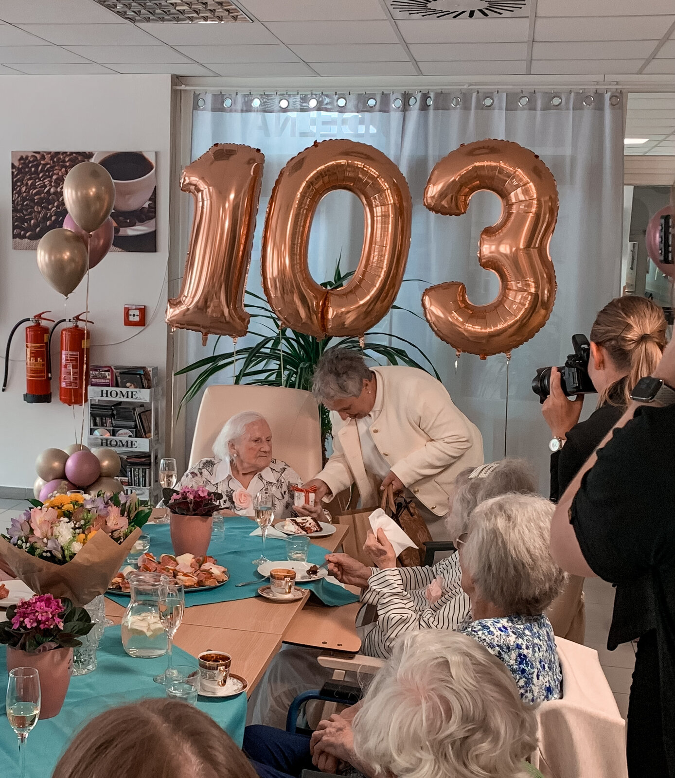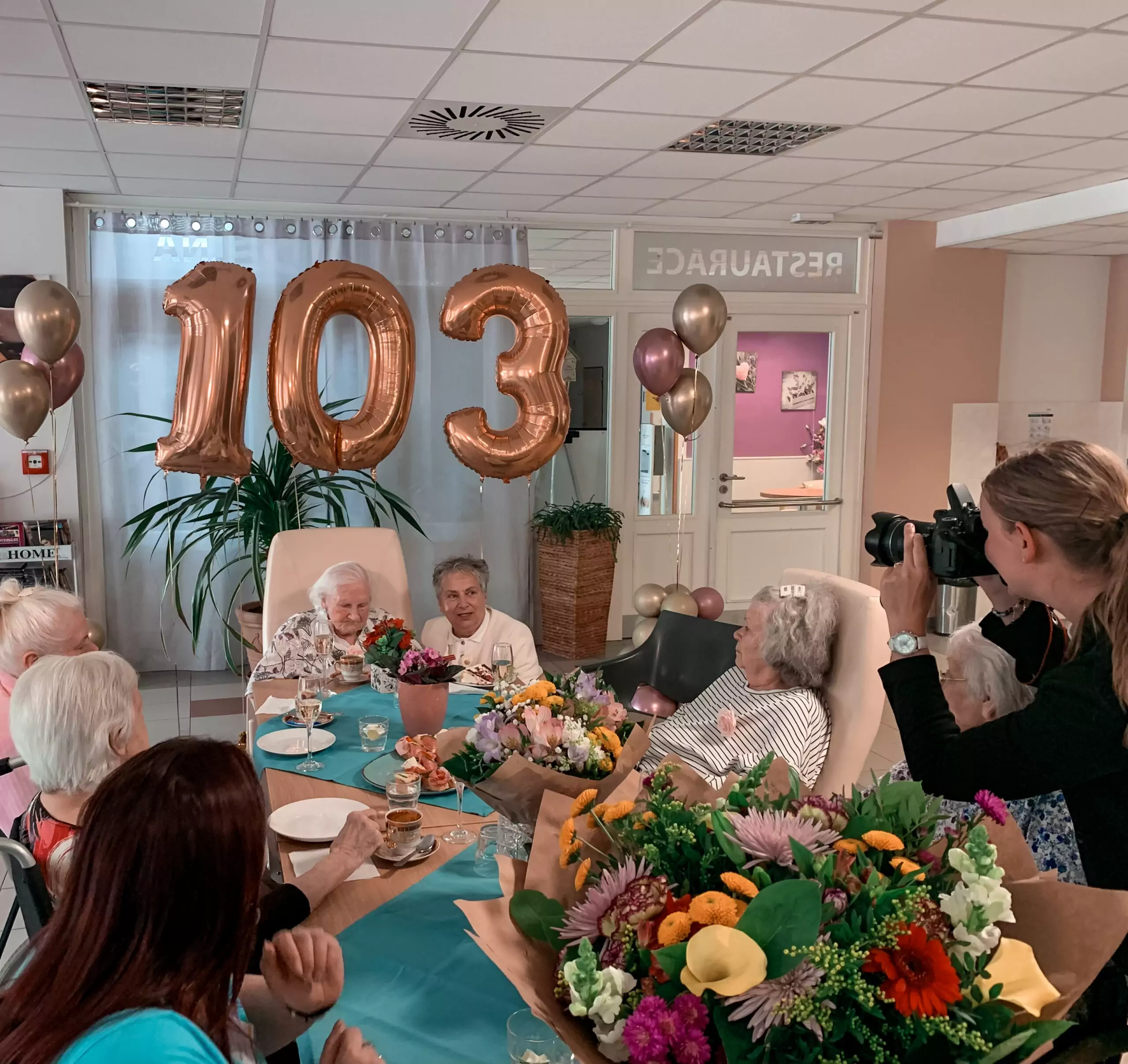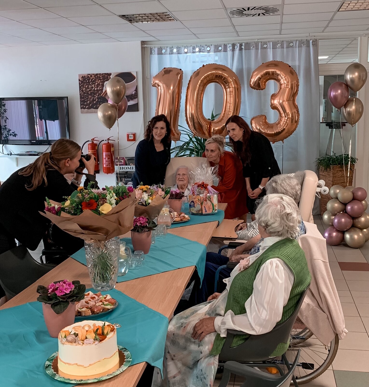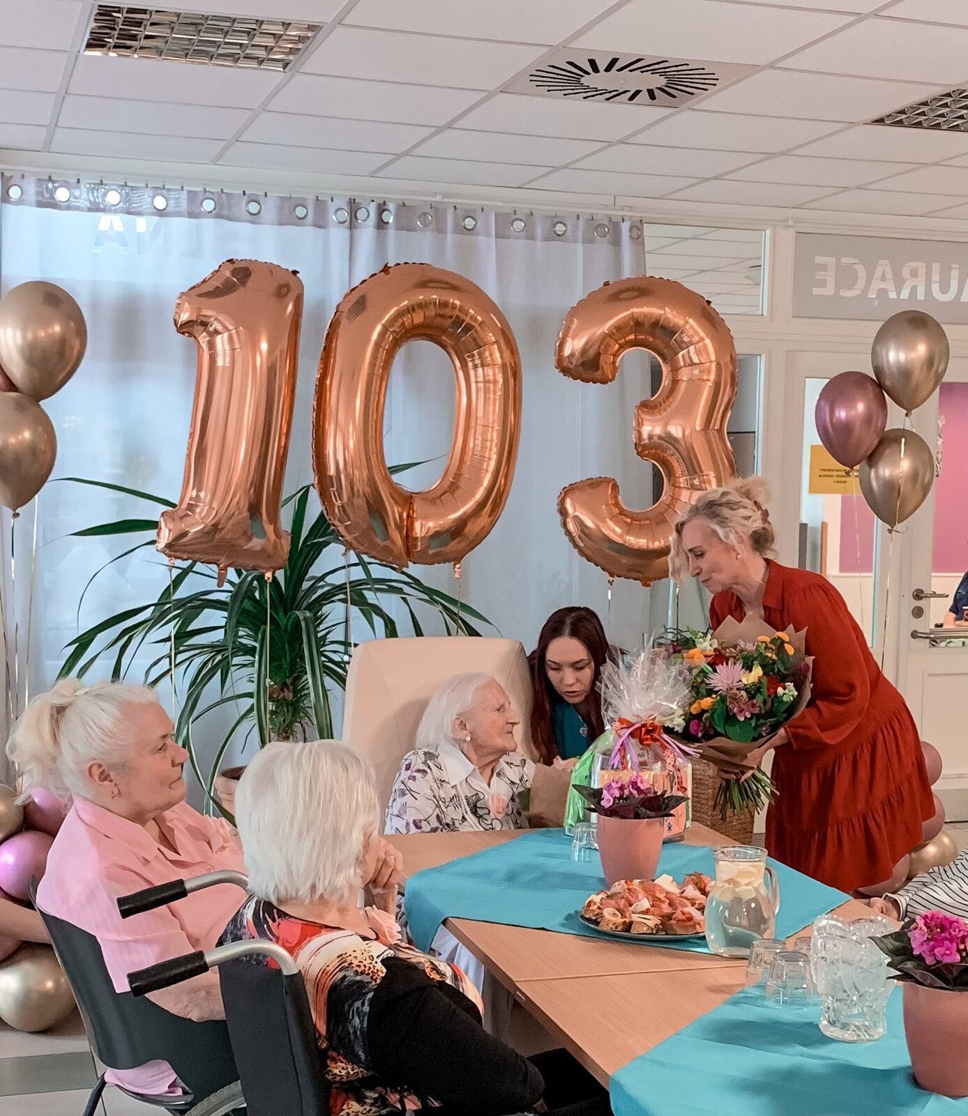 Už to jsou 3 roky, co se naší milé sousedce Věrušce počítají léta za pomoci 3 čísel. To jsme nemohli nechat bez oslavy. Část se konala za přítomnosti paní primátorky a televizního štábu. Po dostatečném vytančení jsme se přesunuli na patro, kde jsme si ještě pochutnávali na dobrotách z oslavy. A ve večerních novinách se pak někteří z nás zahlédli:https://tn.nova.cz/zpravodajstvi/clanek/554990-103leta-jubilantka-nikdy-nikomu-neublizila-gratulovala-ji-i-primatorka