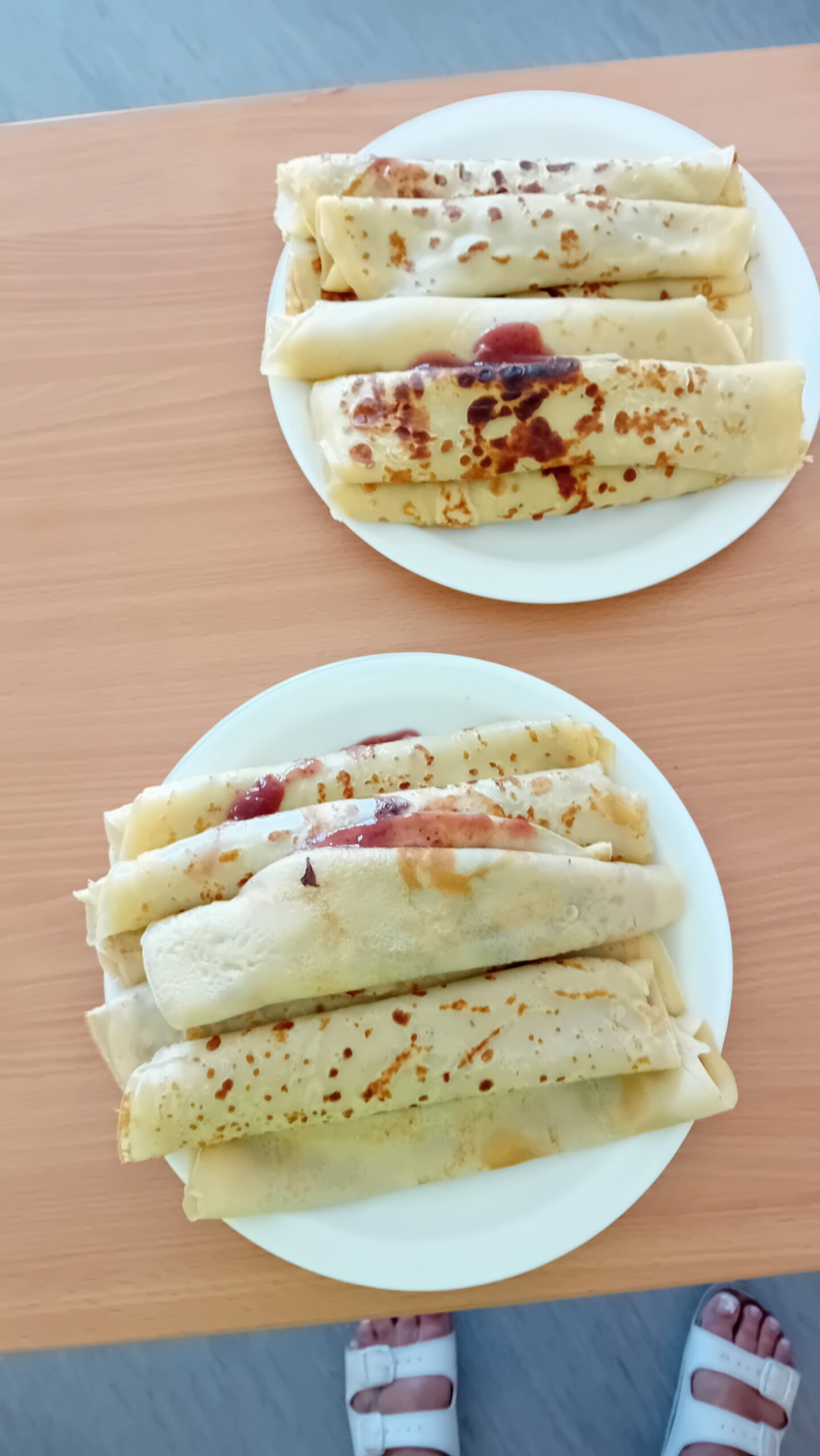 Ve většině slovanských jazyků se rovněž používá označení palačinka. My v Senevida Ve Slavkově u Brna jsme si za pomocí klientů udělali ty naše s marmeládou a posypané cukrem. Klientům u odpolední kávy moc chutnali.😊💙