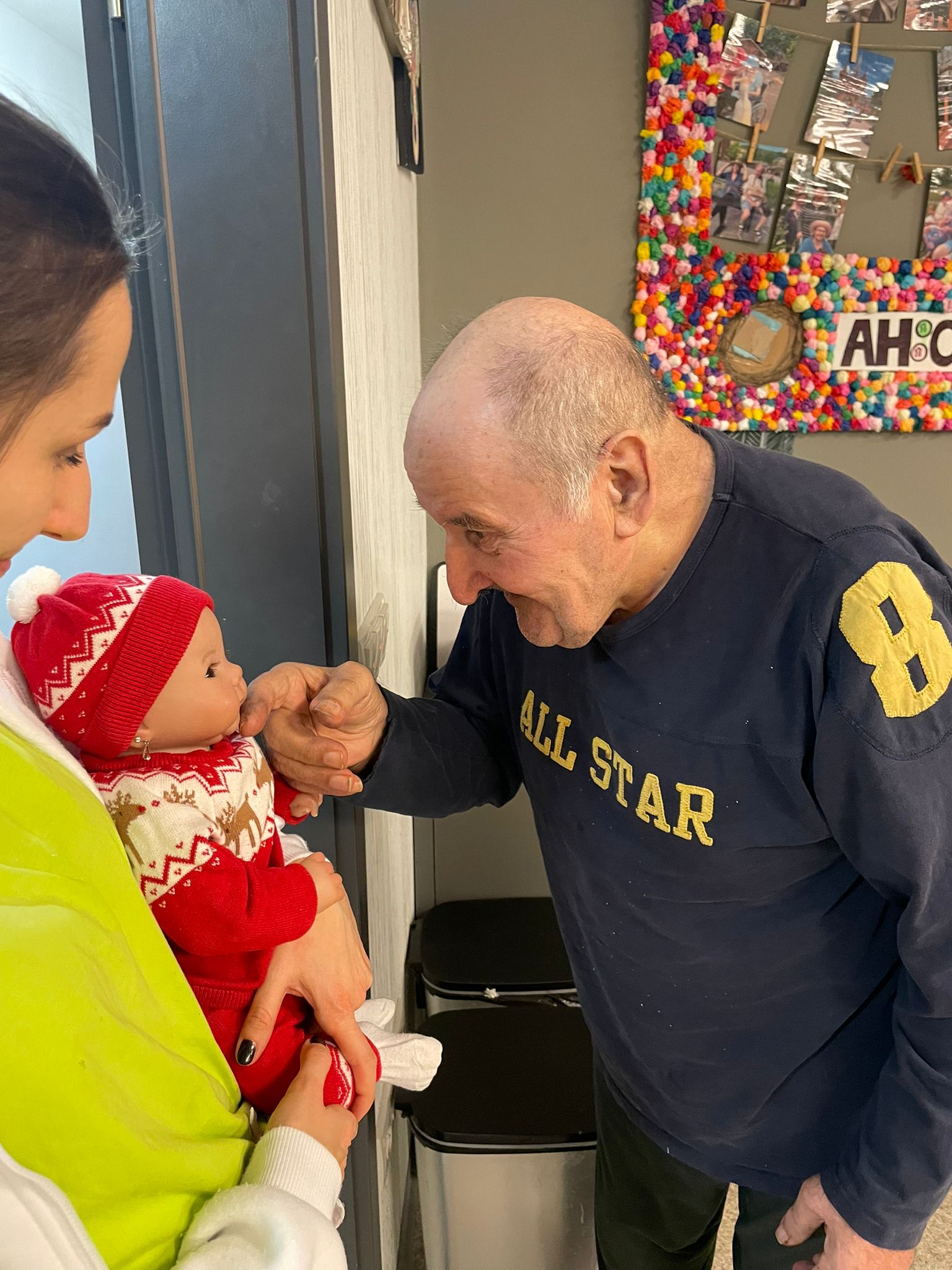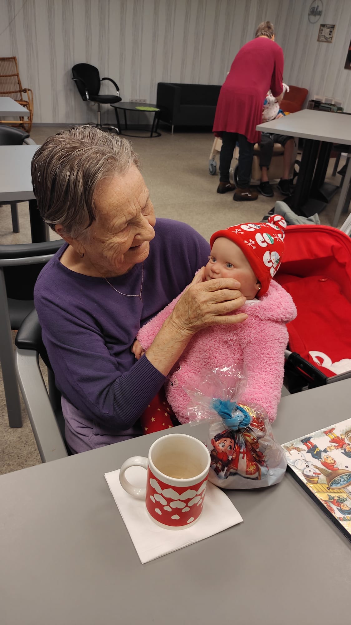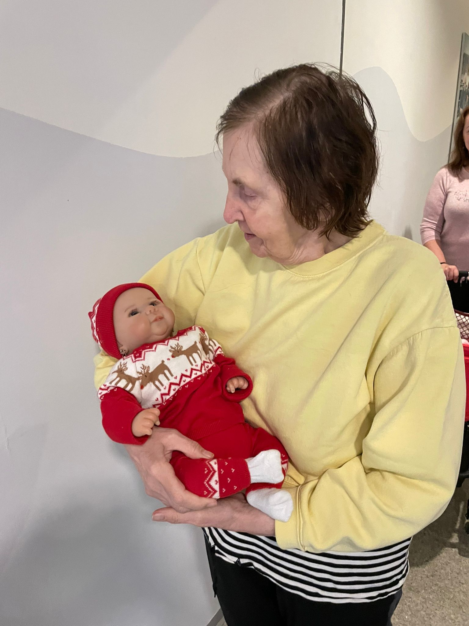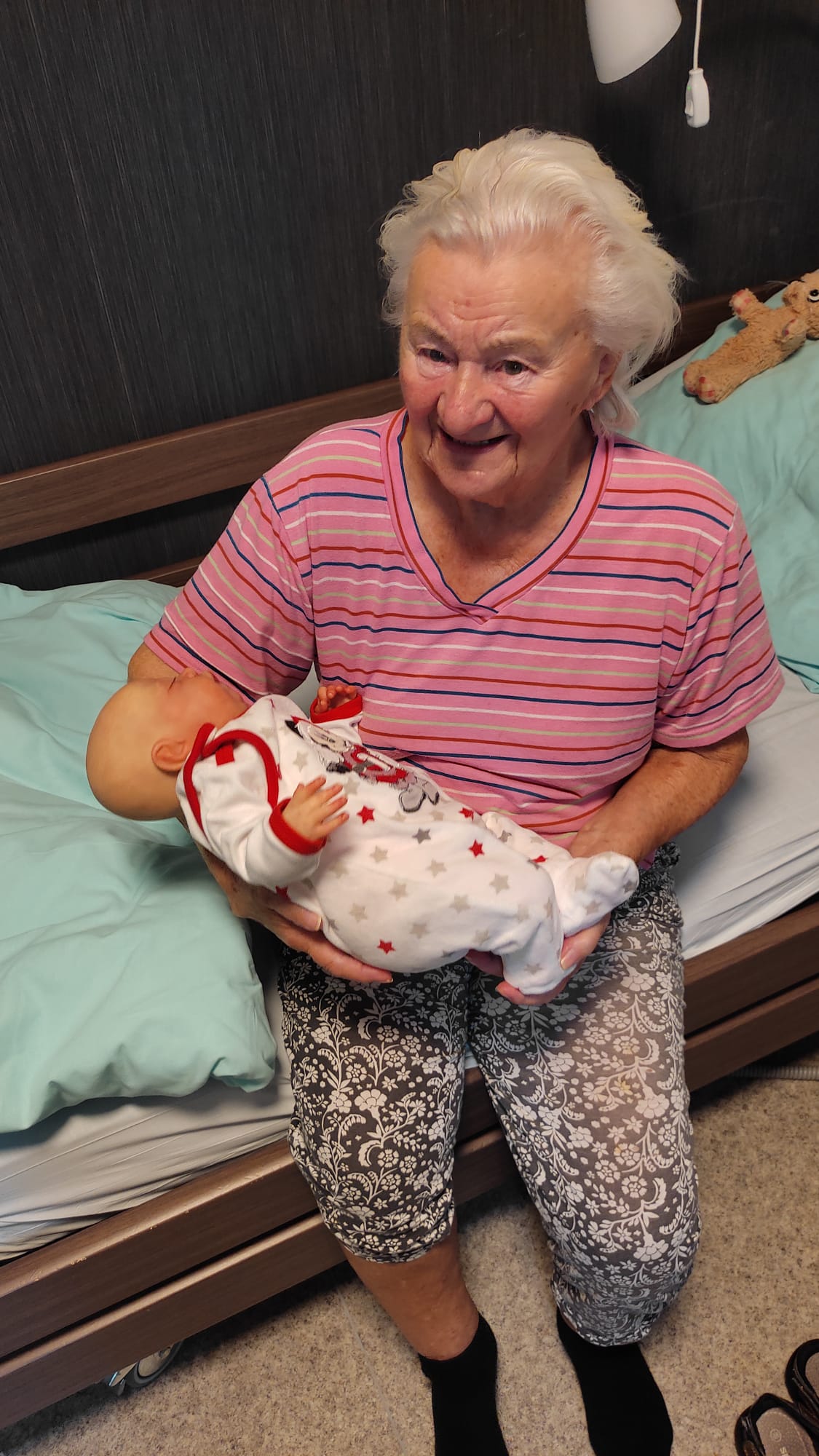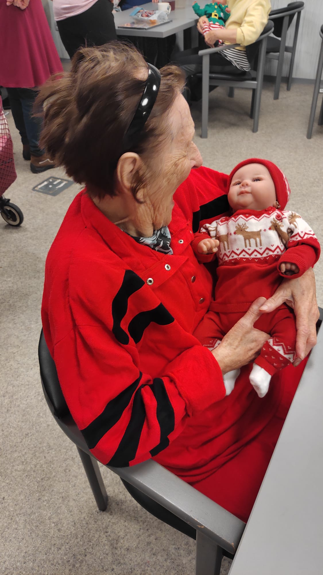 Terapeutické panenky se staly příjemnými společníky – někteří si je drželi v náručí, jiní si s nimi povídali nebo je jen jemně hladili.