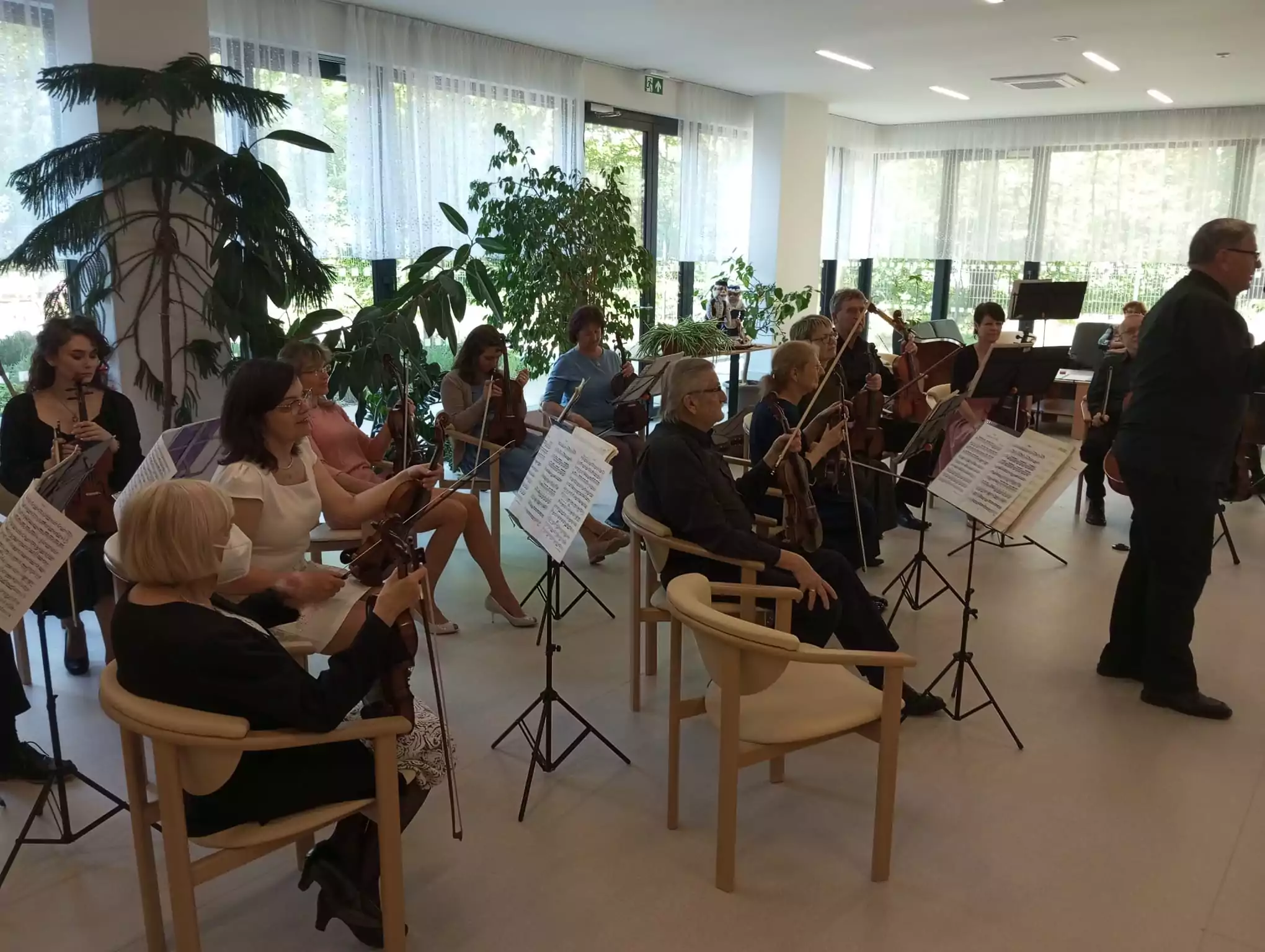 Pardubický komorní orchestr nás poctil svou návštěvou poslední dubnovou sobotu v Senevida Pardubice 🎻. Jídelna se proměnila v koncertní sál a my si mohli pohodlně vychutnat nastalou přenádhernou atmosféru. Potěšili jsme nejen klienty, ale i jejich rodiny a zaměstnance. Moc děkujeme, že jsme si mohli opět poslechnout tuto nádhernou hudbu 💙.