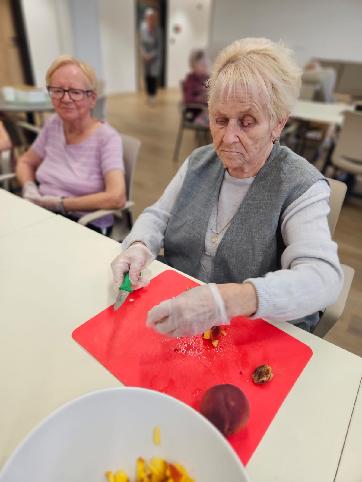 V Senevida Ostrava - Poruba jsme si společně upekli lahodný broskvový koláč. Během pečení se celým domovem linula krásná vůně, která nalákala všechny ke stolu. 🥧